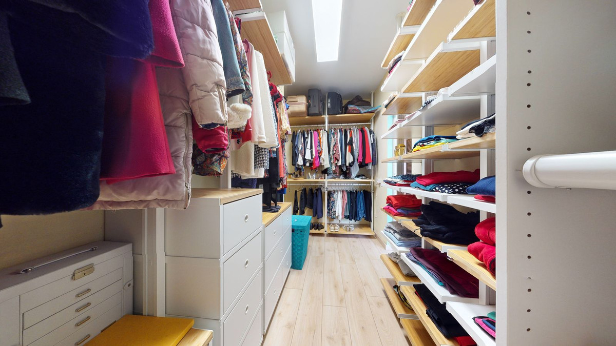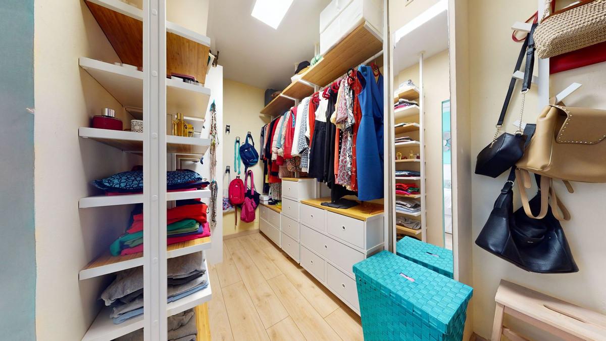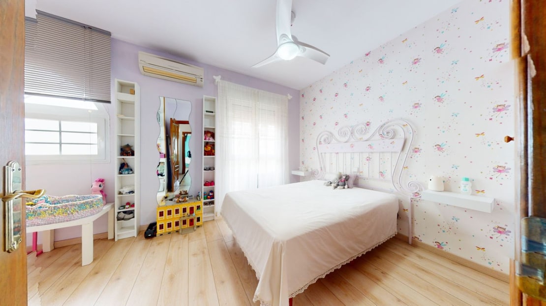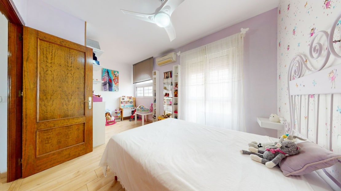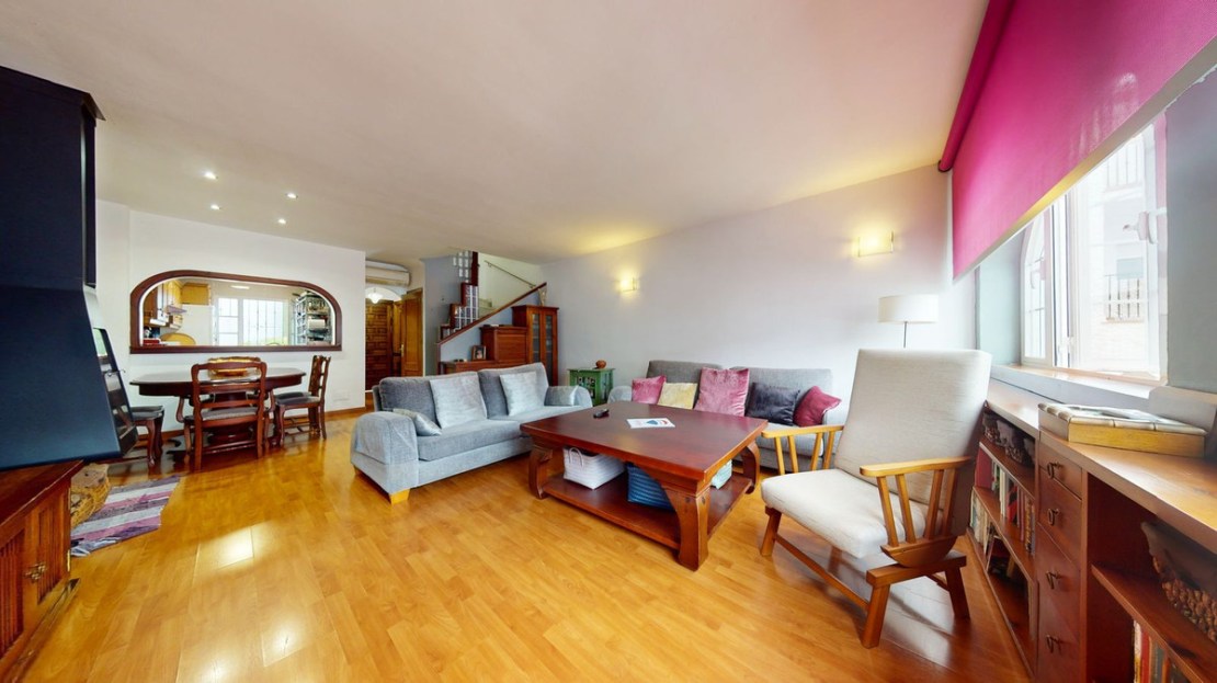 On the first floor, there are two bedrooms, with the main one featuring a walk-in closet and terrace. The secondary bedroom includes a built-in wardrobe. There is also a complete bathroom with double washbasin.<…(Ver más)