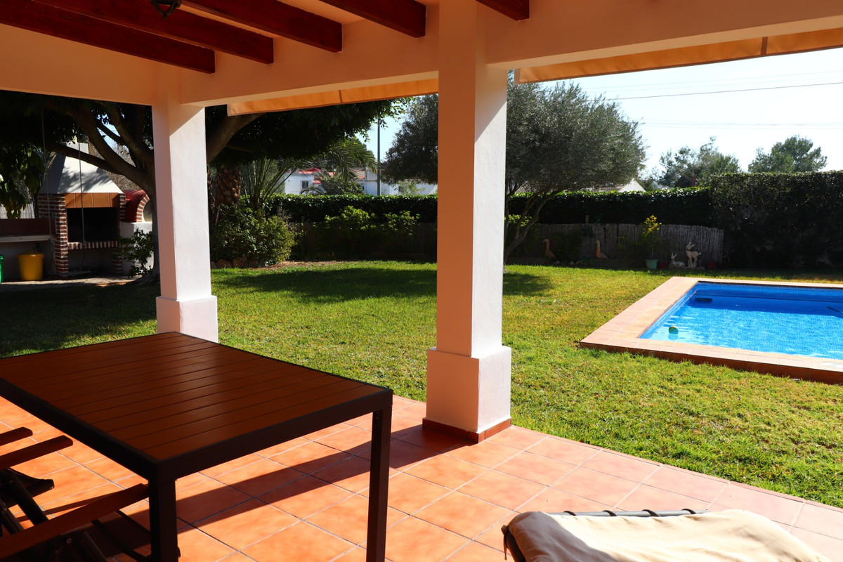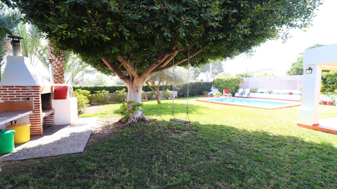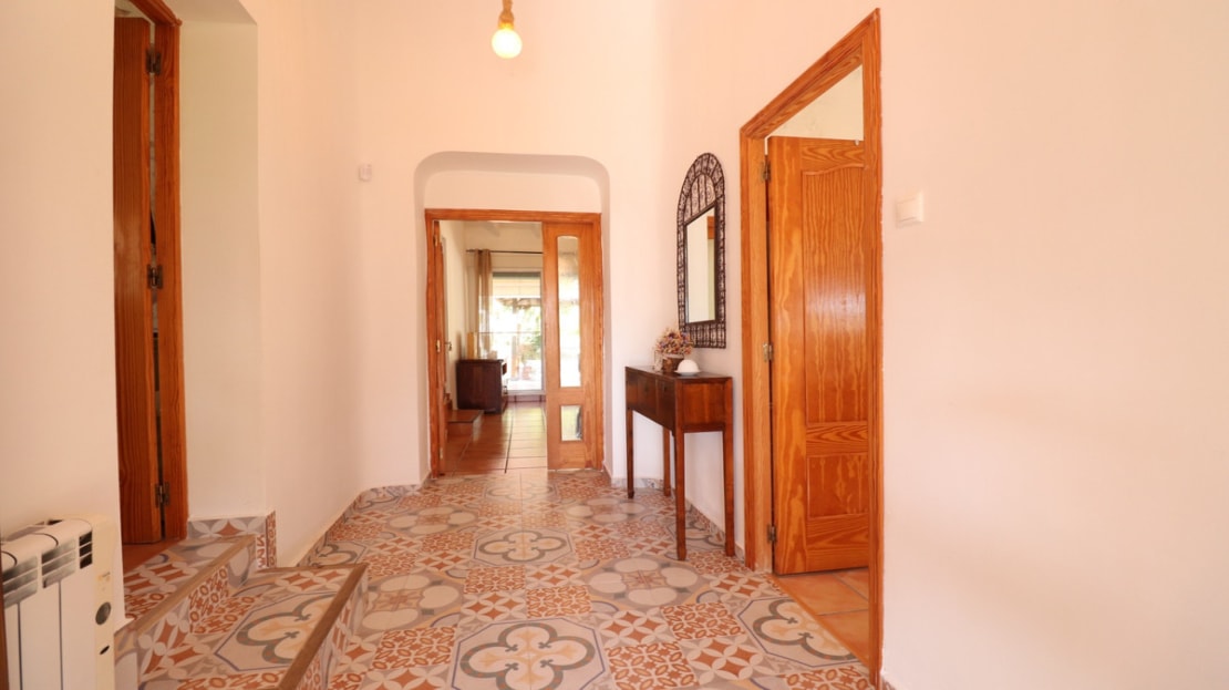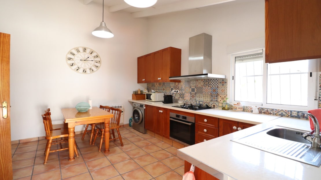This South Facing Detached Villa in Benijofar is nestled on the edge of the village, surrounded by picturesque countryside, offering peace and privacy while remaining close to all amenities. Reformed in 2016, this stunning property boasts vaulted ceilings throughout, adding a spacious and airy feel to the entire home. With a generous build size of 207m² and set on an impressive 2,369m² plot, the villa features three bedrooms, two modern shower rooms, and an additional outside shower room. The separate, fully fitted kitchen provides plenty of workspace, while the inviting living room includes a cozy fireplace, air conditioning, and radiators for year-round comfort. The main bedroom and one of the guest rooms also benefit from air conditioning. The beautifully maintained garden is a perfect blend of grassed, tiled, and graveled areas, creating an ideal space for outdoor living. The private pool is complemented by a BBQ area, perfect for entertaining. A front covered terrace off the living room offers a lovely spot for morning coffee or evening relaxation, while window grills provide added security. The property also includes off-street parking and a private garage. Enjoy stunning views overlooking the surrounding citrus groves and private gardens. Conveniently located, the villa is just a few minutes’ drive from local shops and supermarkets, a two-minute drive to nearby bars and restaurants, a 12-minute drive to the beautiful beaches of the Costa Blanca South, and only a 10-minute walk to the nearest bus stop. This exceptional villa offers the perfect combination of traditional charm, modern comforts, and a prime location, making it ideal for a permanent residence, holiday home, or investment opportunity.