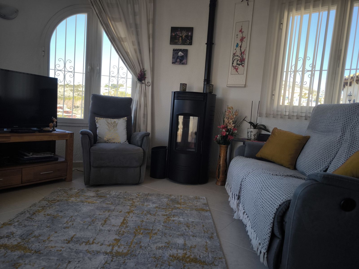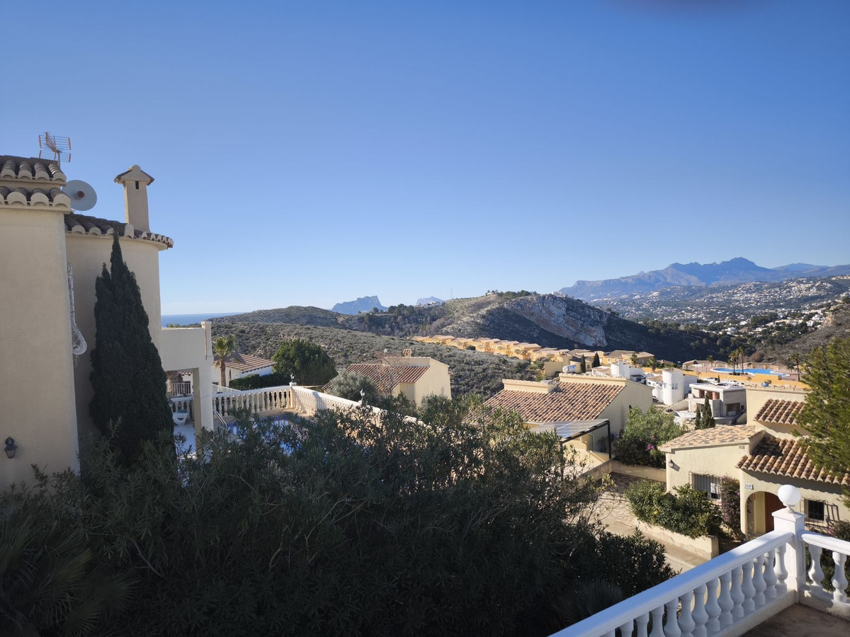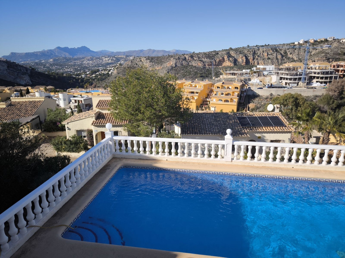 Detached villa with private heated pool, beautiful mountain views and located in the residential area of Palmeras in the urbanization Cumbre del Sol between Jávea and Moraira.