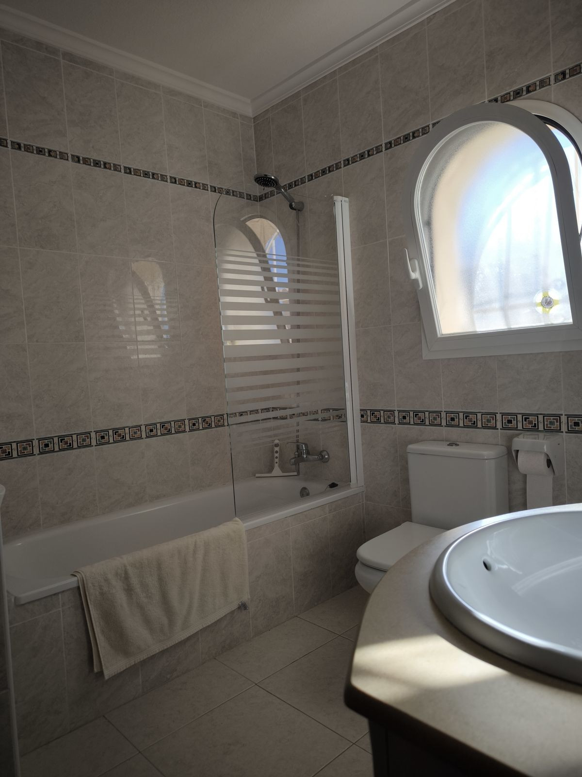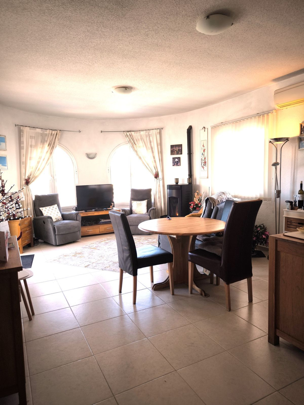 The ground floor consists of a very spacious double bedroom and a private bathroom, as well as storage rooms and access to the private pool. Solar panels on the roof!