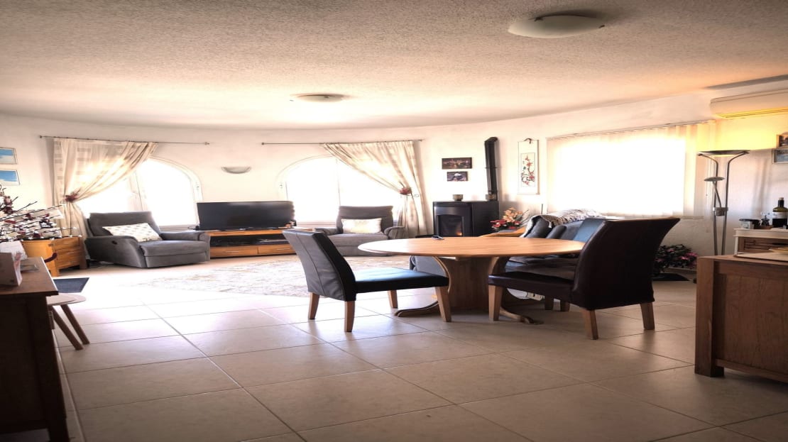 The villa consists of three double bedrooms, three bathrooms, living-dining room with pellet stove, fully equipped open kitchen, various storage rooms, several nice terraces and a parking space.