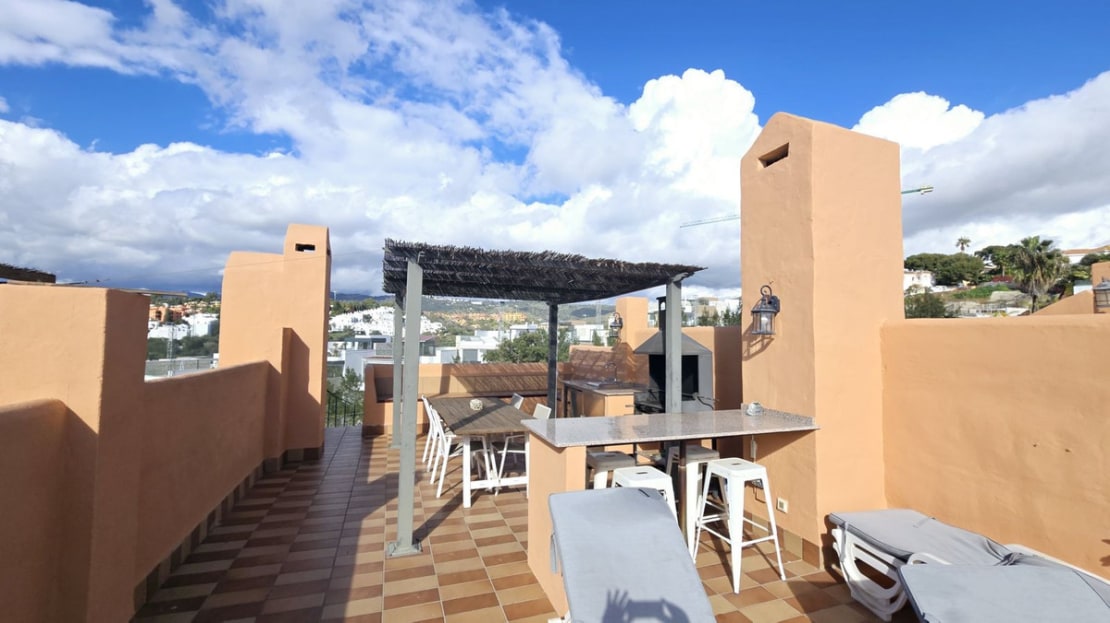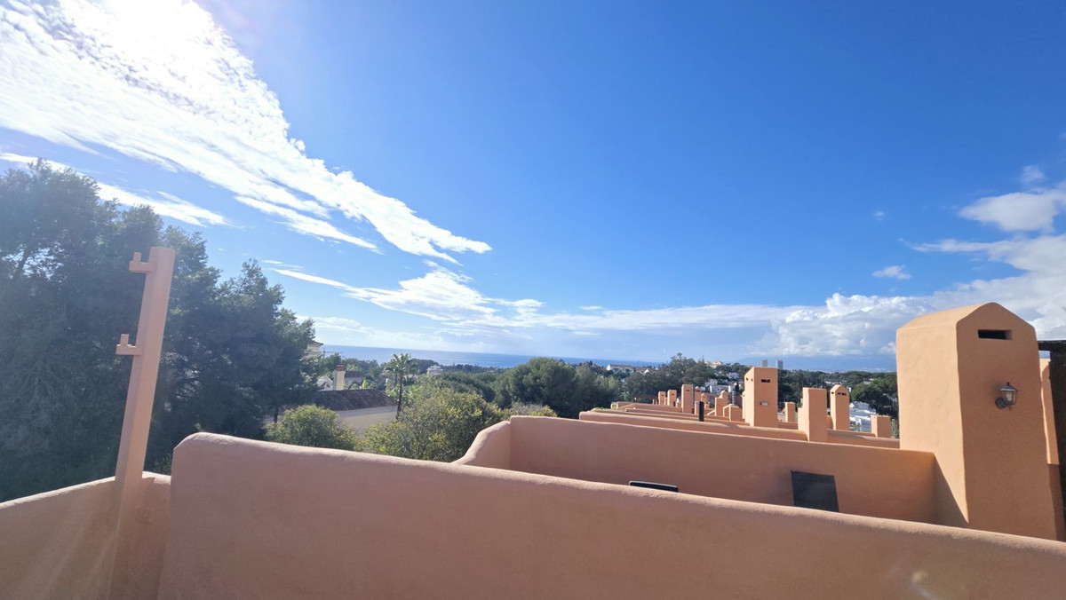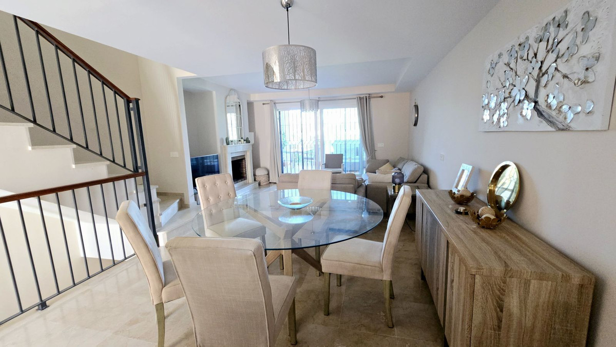 Located in the upmarket area of Cabopino, This 3 floor townhouse is spacious and bright. Consisting of 3 terraces facing south, giving views of the sea, mountains and front line golf.