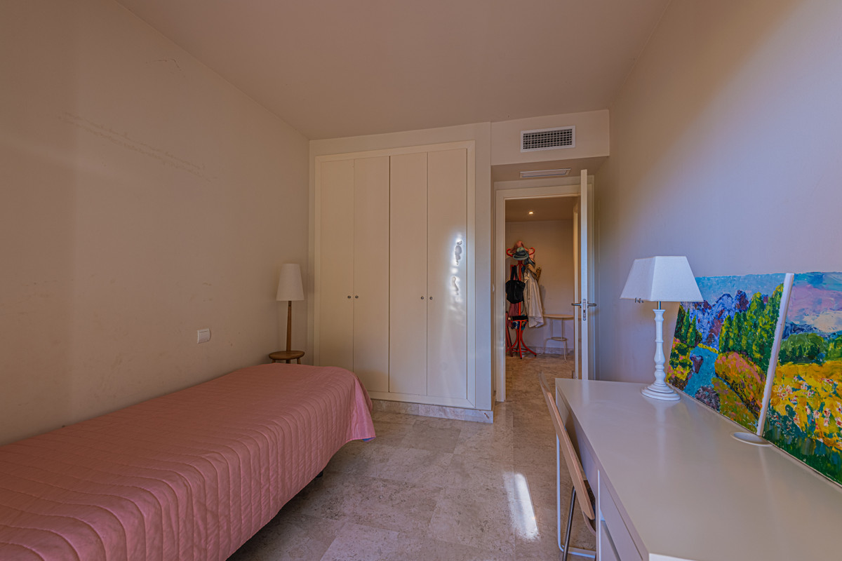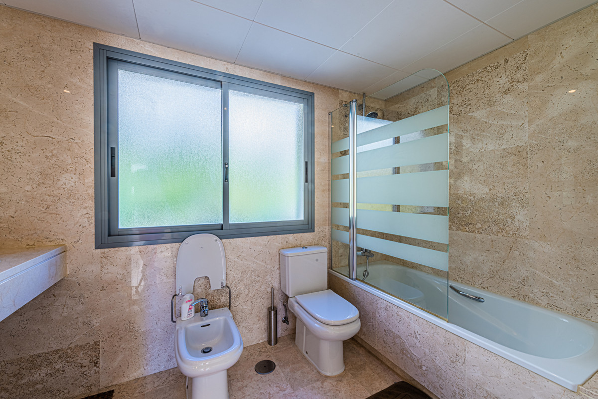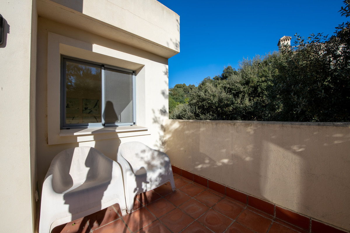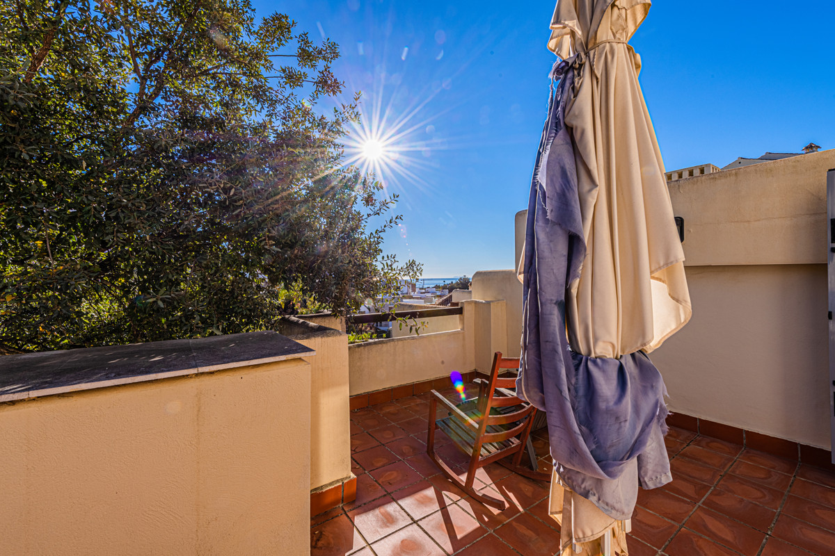 Cozy three-storey townhouse for sale with sea views in a fantastic urbanization with a swimming pool, on the famous Cabopino golf course. It consists on the ground floor of a living room with fireplace and access to a spacious terrace, a separate fully equipped kitchen, and a guest toilet. On the ground floor is the master bedroom with en suite bathroom, built-in wardrobe and a large terrace overlooking the sea. On the basement floor, with access to the garden, you will find two bedrooms with dressing rooms and one bathroom. It is located just 30 minutes from the International Airport of Malaga, 5 minutes from beaches and just a few minutes from all amenities: supermarkets, restaurants, sports centers, schools.