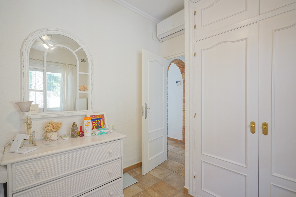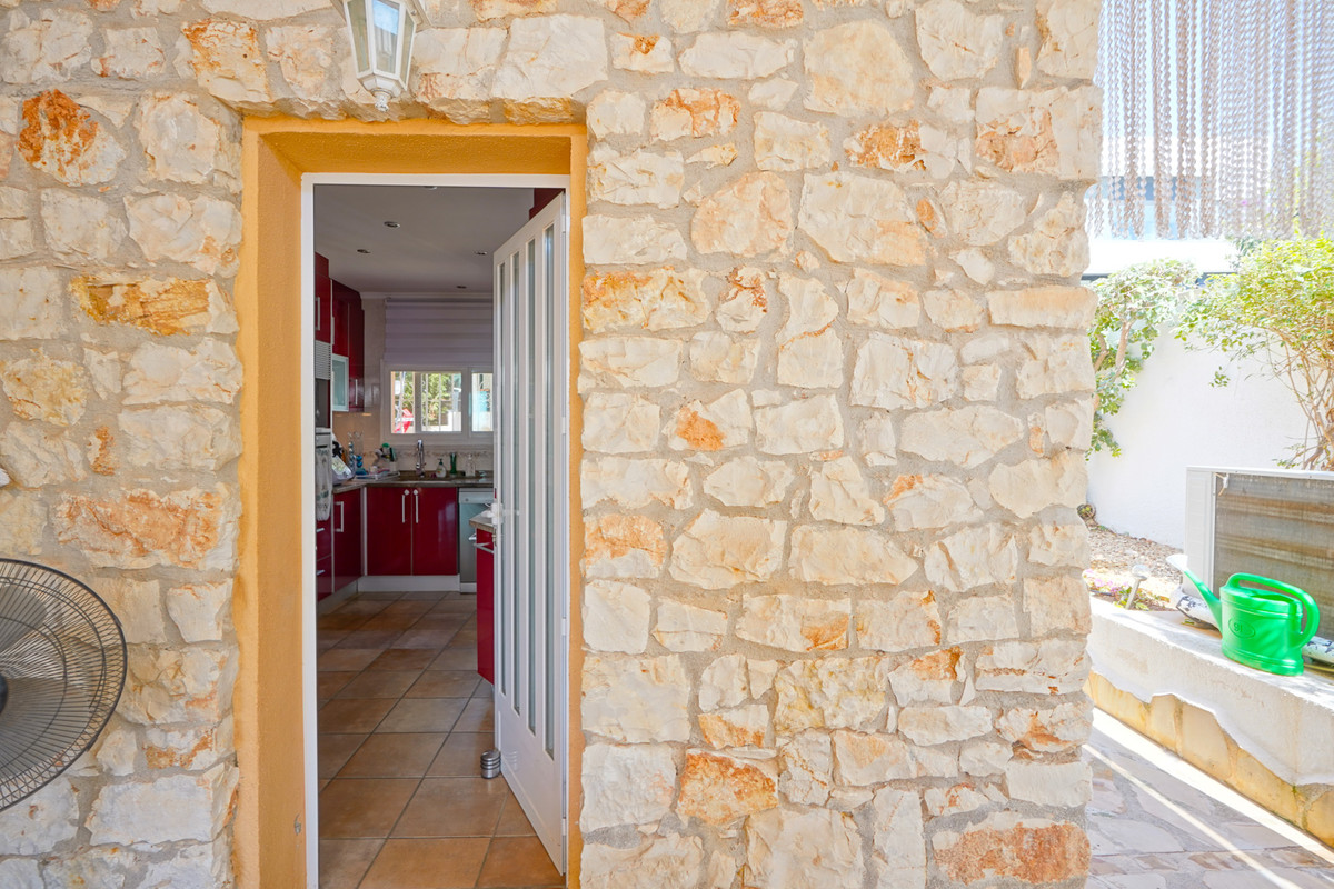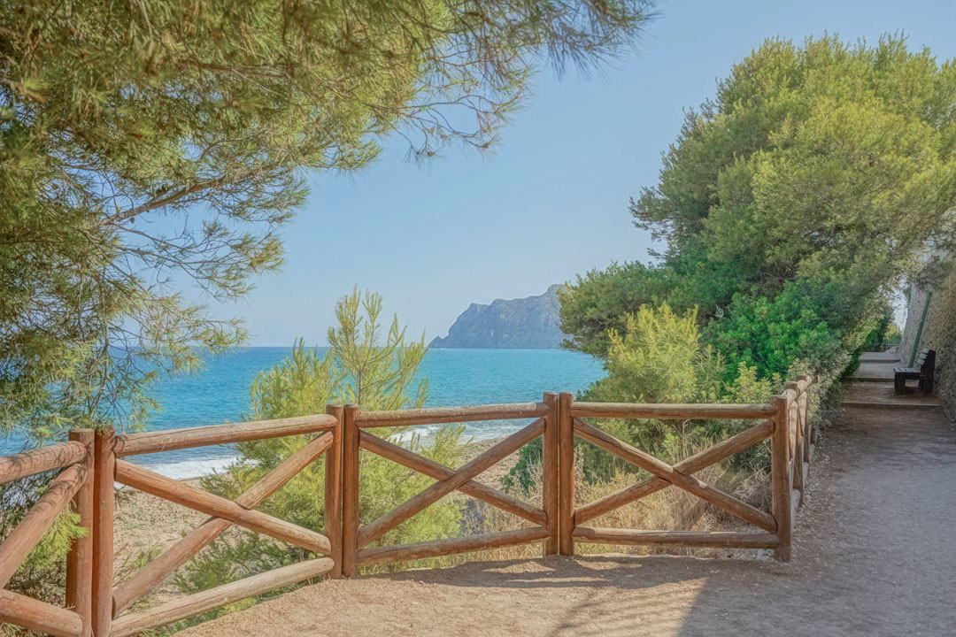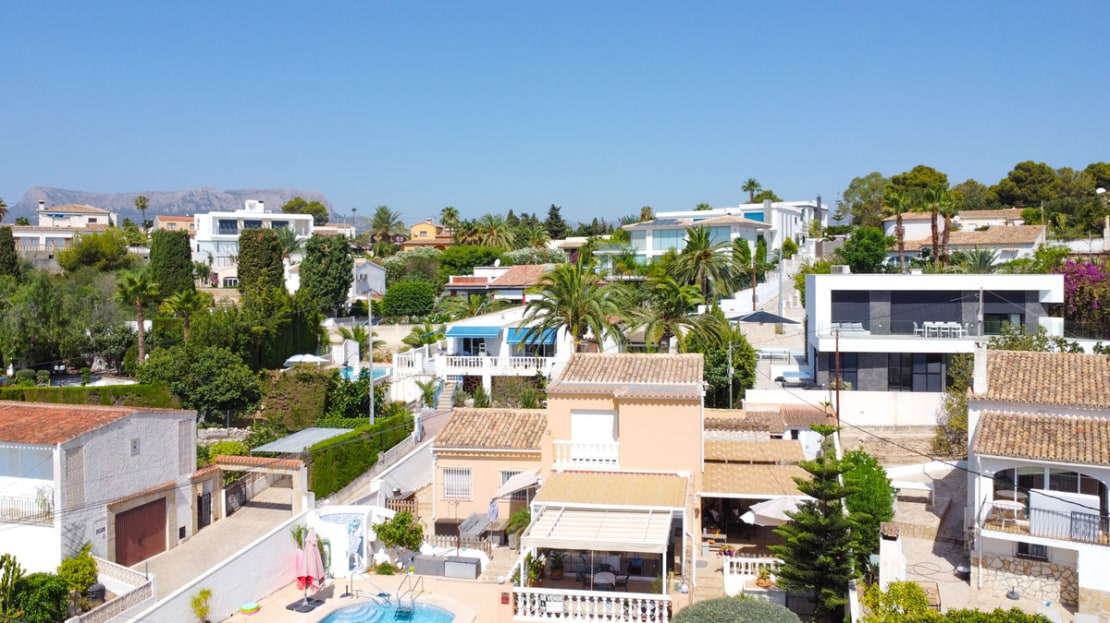 This traditional villa is located in a quiet urbanisation on the idyllic coast of Benissa, a stone's throw from lively Calpe. Thanks to its unique location, you will enjoy breathtaking views of the azure sea and the iconic Peñón de Ifach here. Spread over two floors and with an additional garage in the basement, this villa offers everything you need. The spacious ground floor comprises a bright living room, a modern kitchen, a stylish glazed-in naya, two comfortable bedrooms, two bathrooms, a dressing room and a multi-purpose storage room. The upper floor, accessed via an external staircase, features a quadruple bedroom with an en suite bathroom and a balcony, ideal for guests. Soak up the sun on the various terraces at different elevations, or take a refreshing dip in the large oval-shaped pool with hot outdoor shower. With underfloor heating on the ground floor and infrared heating upstairs, plus air conditioning on both floors, you will experience ultimate comfort all year round. Less than five minutes' walk will take you to the picturesque beach of Mallorquí, where a scenic coastal footpath starts and takes you in one direction to Calpe and in the other along the crystal-clear coves of Benissa to the popular sandy beach of La Fustera.