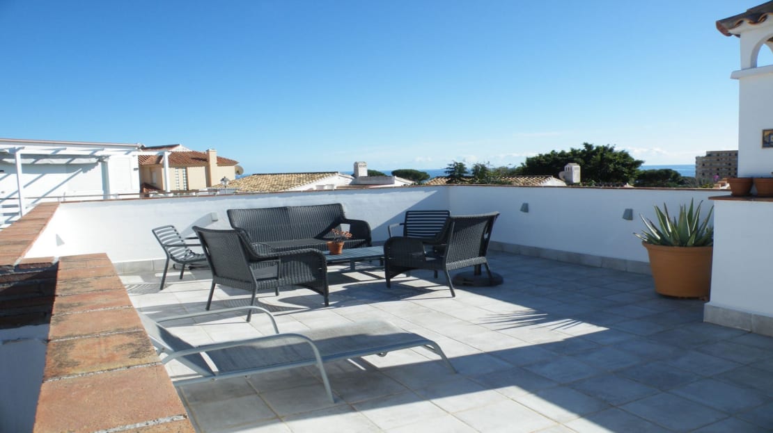 The villa comprises of three double bedrooms, one en suite, fully fitted kitchen with utility area and a good sized bright and airy lounge/diner leading onto a terrace and edged garden to the front and to the side of the property you will find the pool. To the rear of the property is a further spacious terrace incorporating a kitchen area with bbq, access to the utility room and stairs up to the good sized solarium affording views of the local area and the sea.