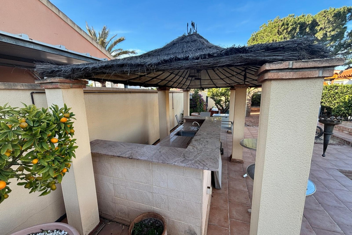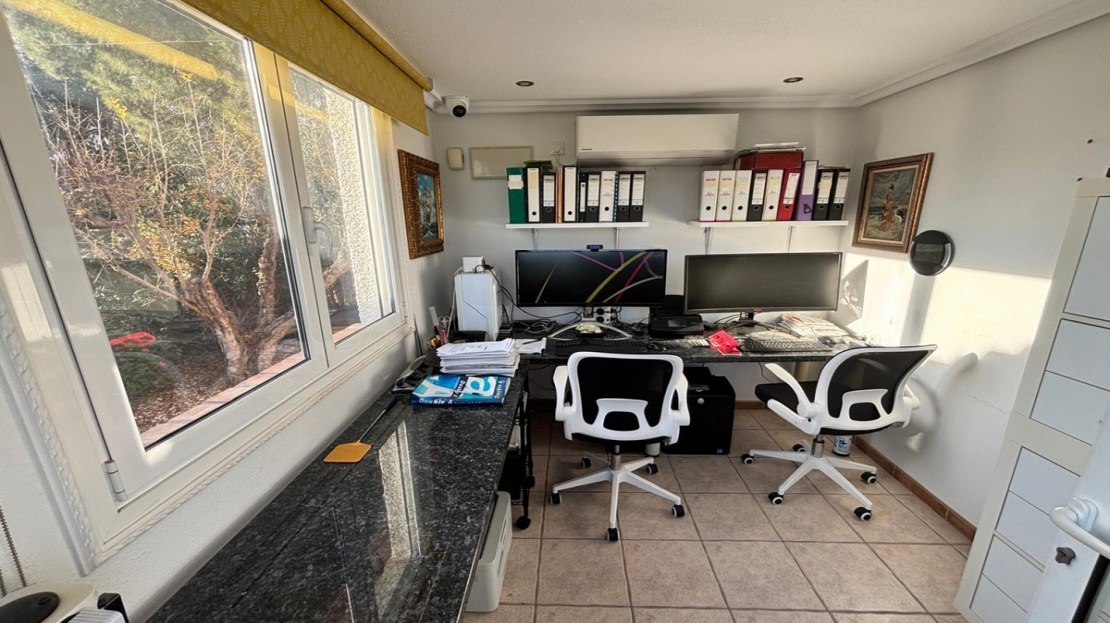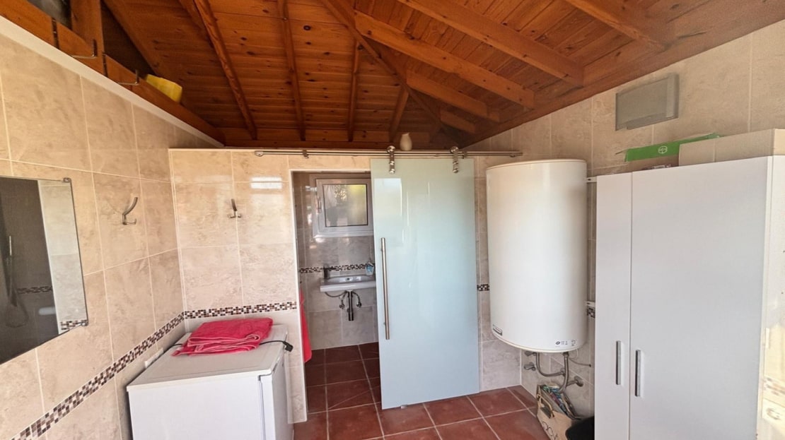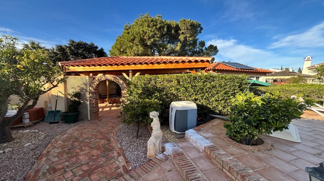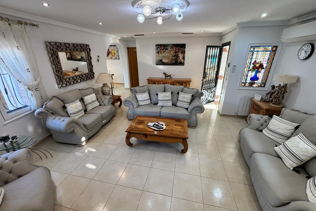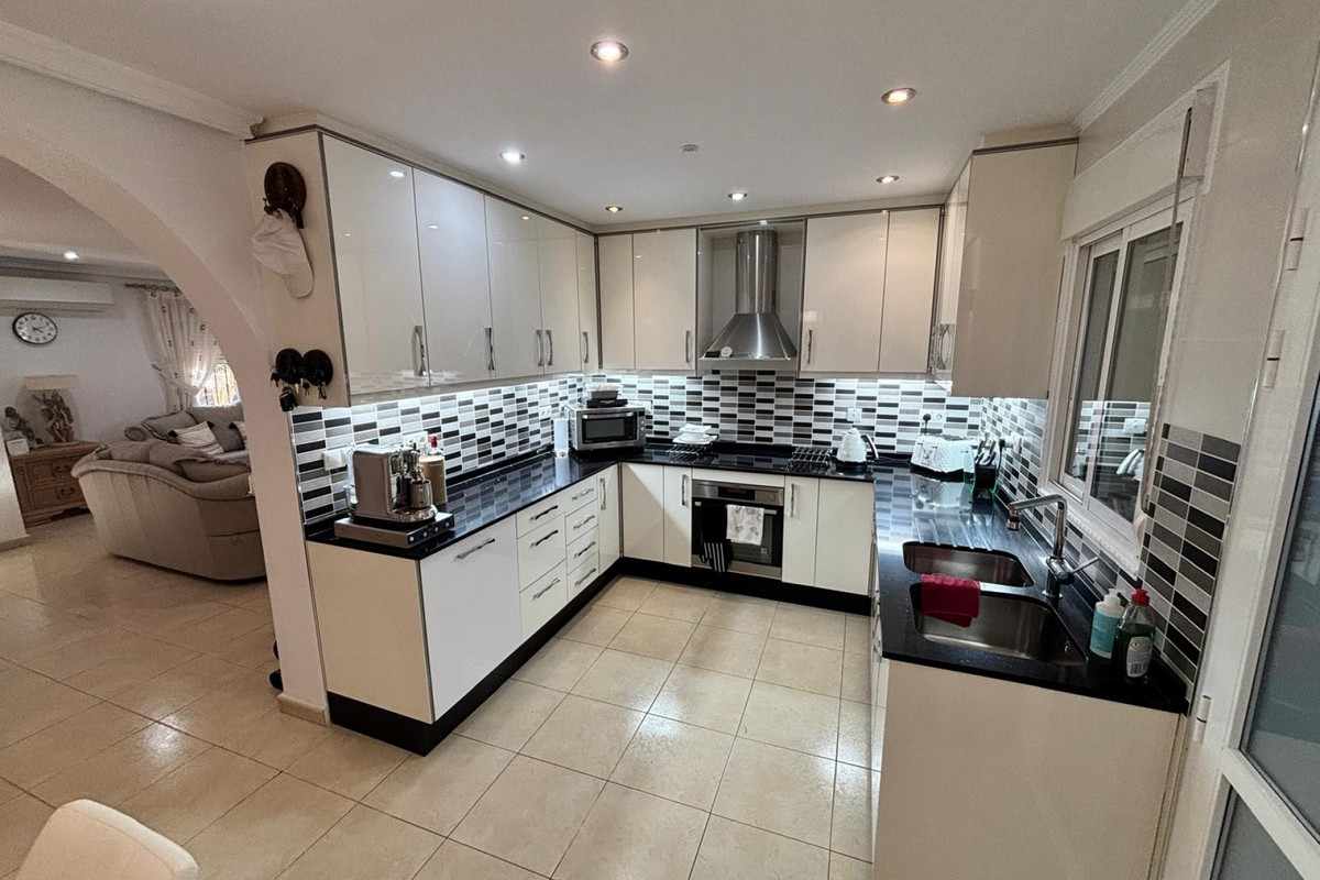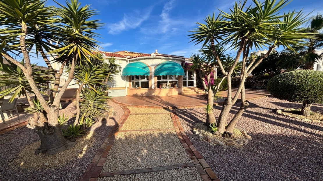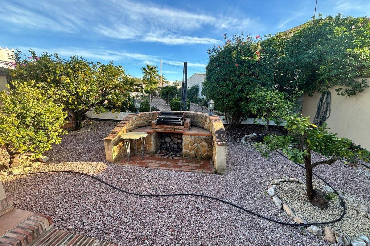 Here we have this stunning detached Villa in Central Quesada. The villa is set on a plot of around 1200m and has a large build area of around 190m. There are 3 bedrooms and 2 bathrooms in the main house with large lounge open plan kitchen and dining room and a separate large utility area all brand new and very modern. There is central heating and air-con through out and double glazed tilt and turn windows. There is a large glazed Naya which is alo a dining area stroke sitting room with views to the garden and pool. Outside the landscaped plot with large kidney shaped pool has an outside kitchen and bbq area shower for the pool and plenty of sitting areas. There is also a smaller building which houses an office and a further shower and and toilet with changing room. The property has 21 solar panels, large car port , 300 litre immersion heater, gas boiler, Alarm and cctv cameras. Overall and stunning fully furnished property just 3 minutes walk to town.