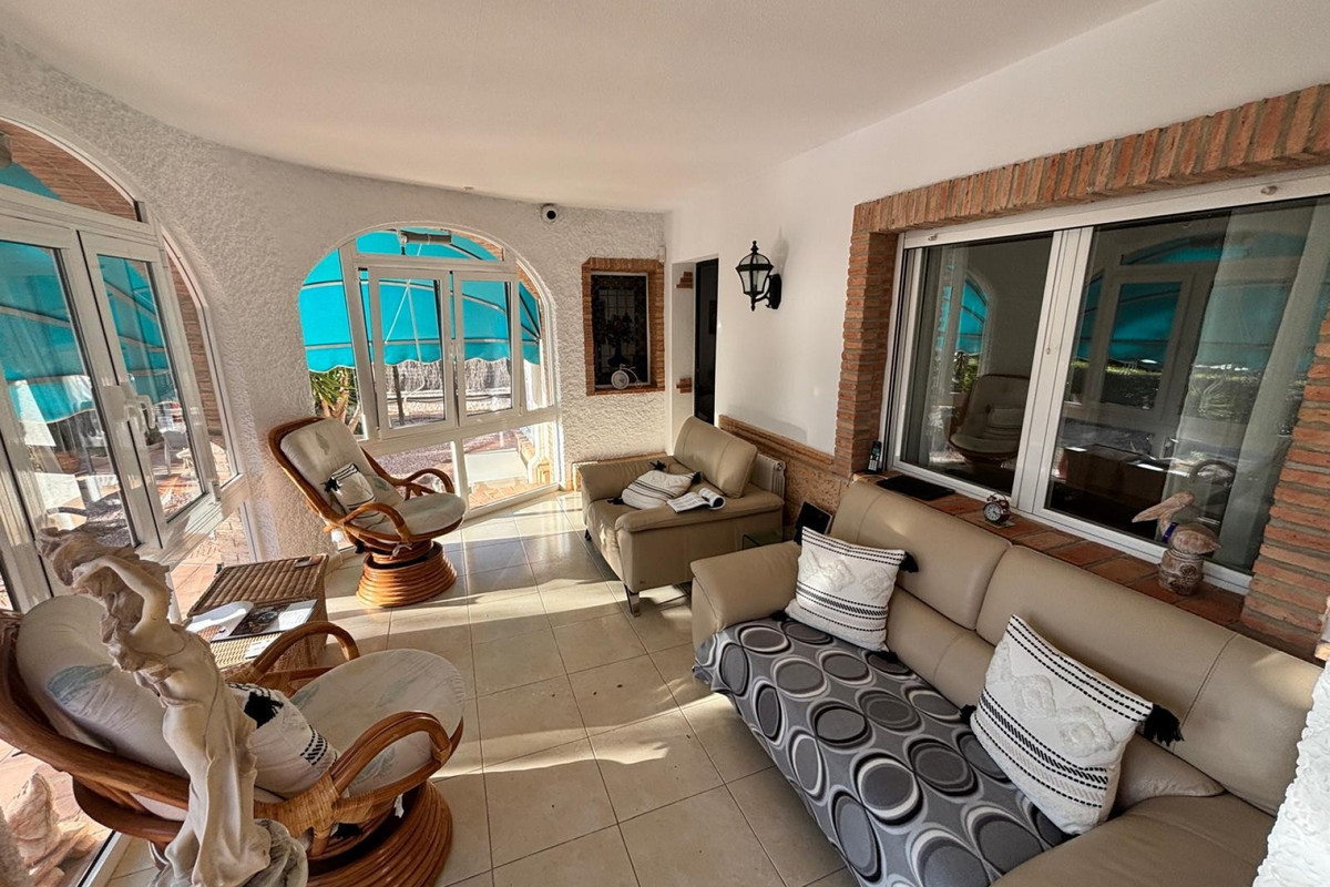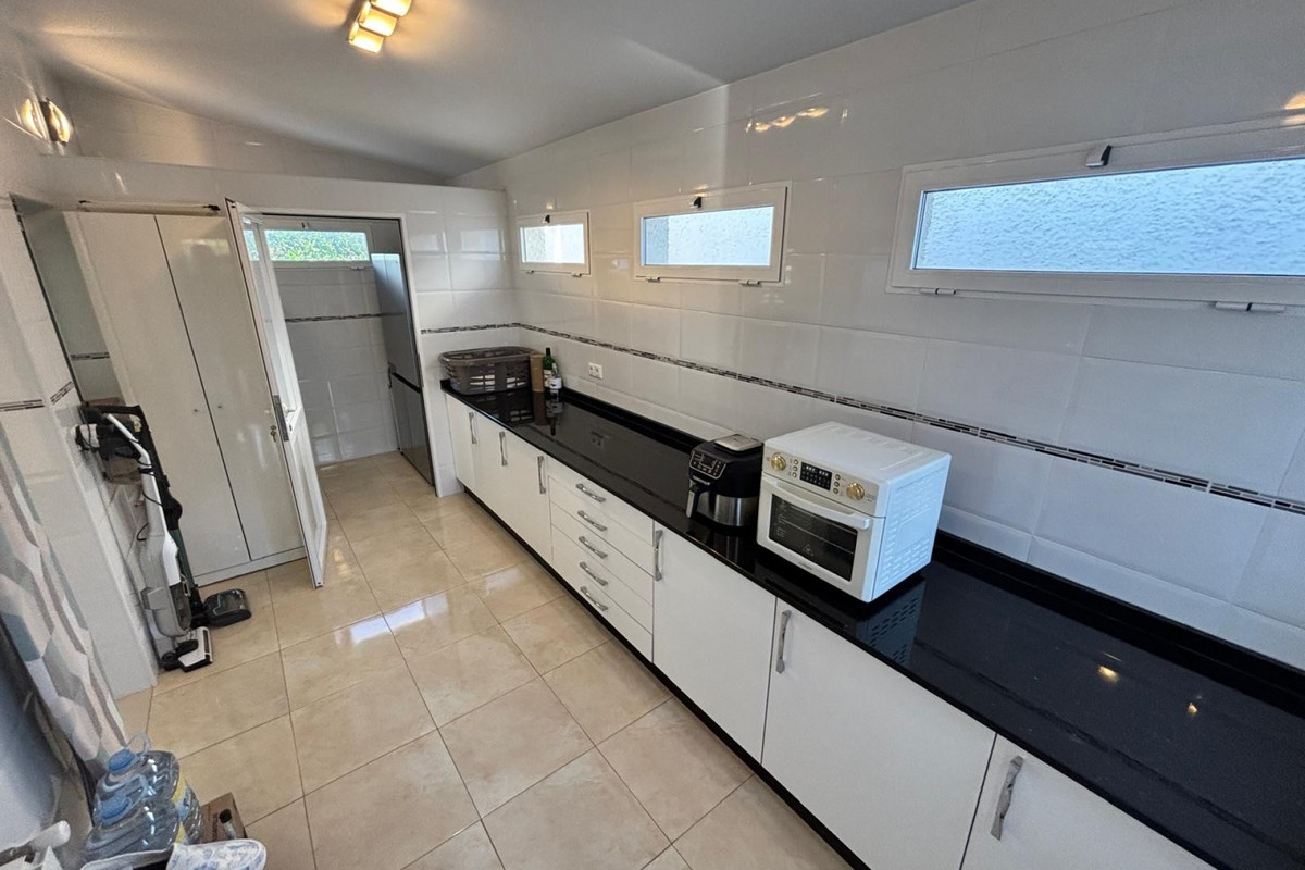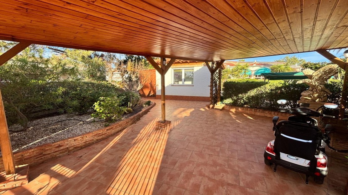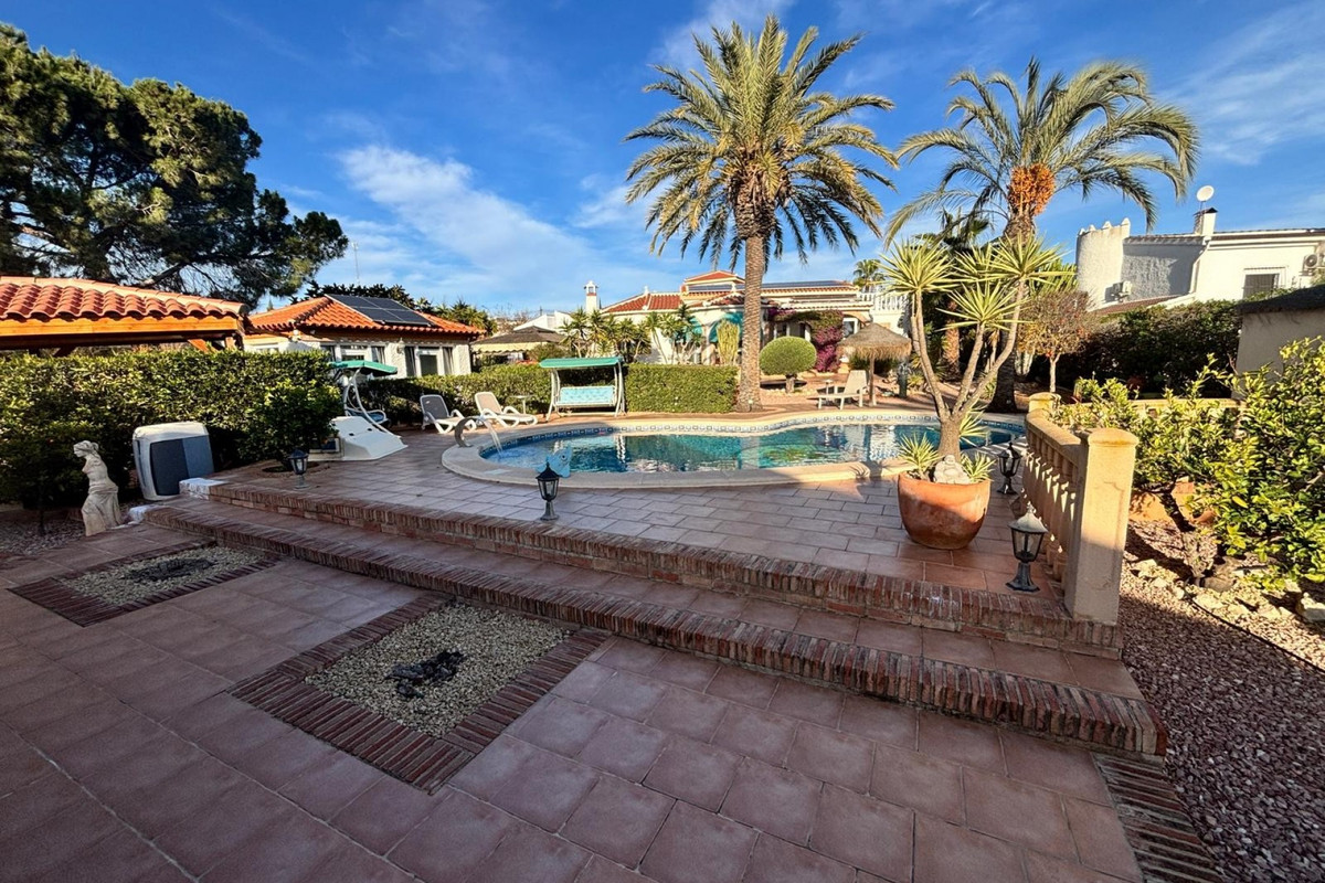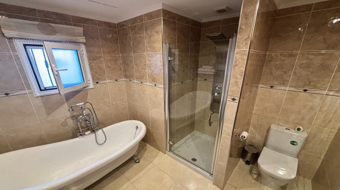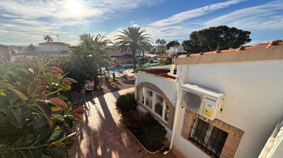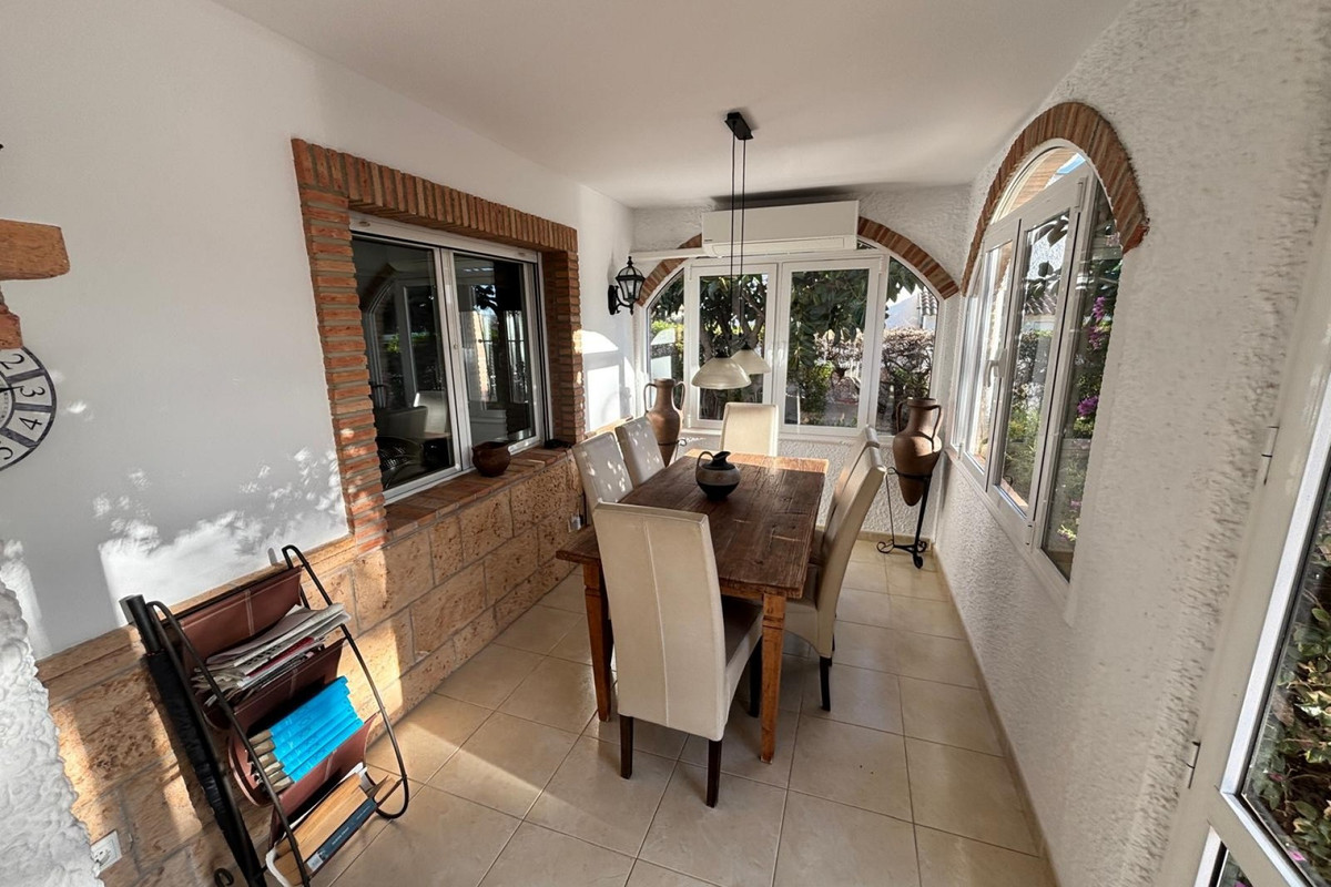 Here we have this stunning detached Villa in Central Quesada. The villa is set on a plot of around 1200m and has a large build area of around 190m. There are 3 bedrooms and 2 bathrooms in the main house with large lounge open plan kitchen and dining room and a separate large utility area all brand new and very modern. There is central heating and air-con through out and double glazed tilt and turn windows. There is a large glazed Naya which is alo a dining area stroke sitting room with views to the garden and pool. Outside the landscaped plot with large kidney shaped pool has an outside kitchen and bbq area shower for the pool and plenty of sitting areas. There is also a smaller building which houses an office and a further shower and and toilet with changing room. The property has 21 solar panels, large car port , 300 litre immersion heater, gas boiler, Alarm and cctv cameras. Overall and stunning fully furnished property just 3 minutes walk to town.
