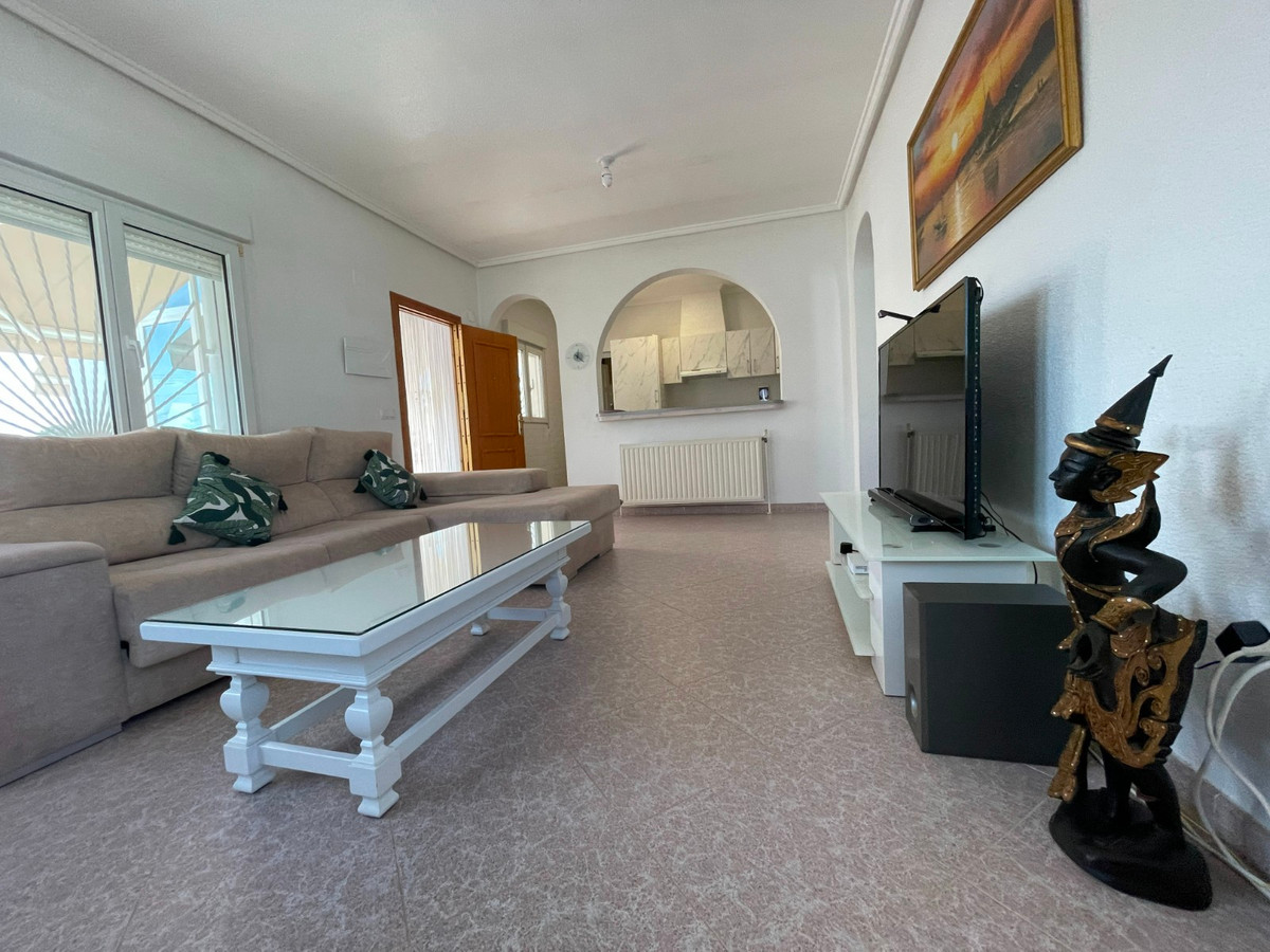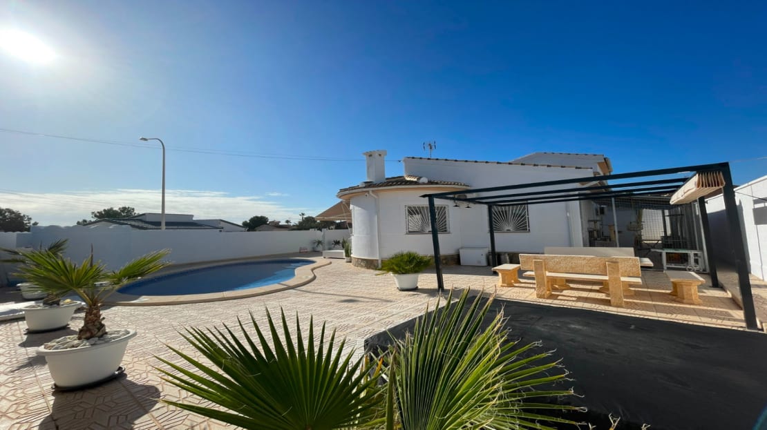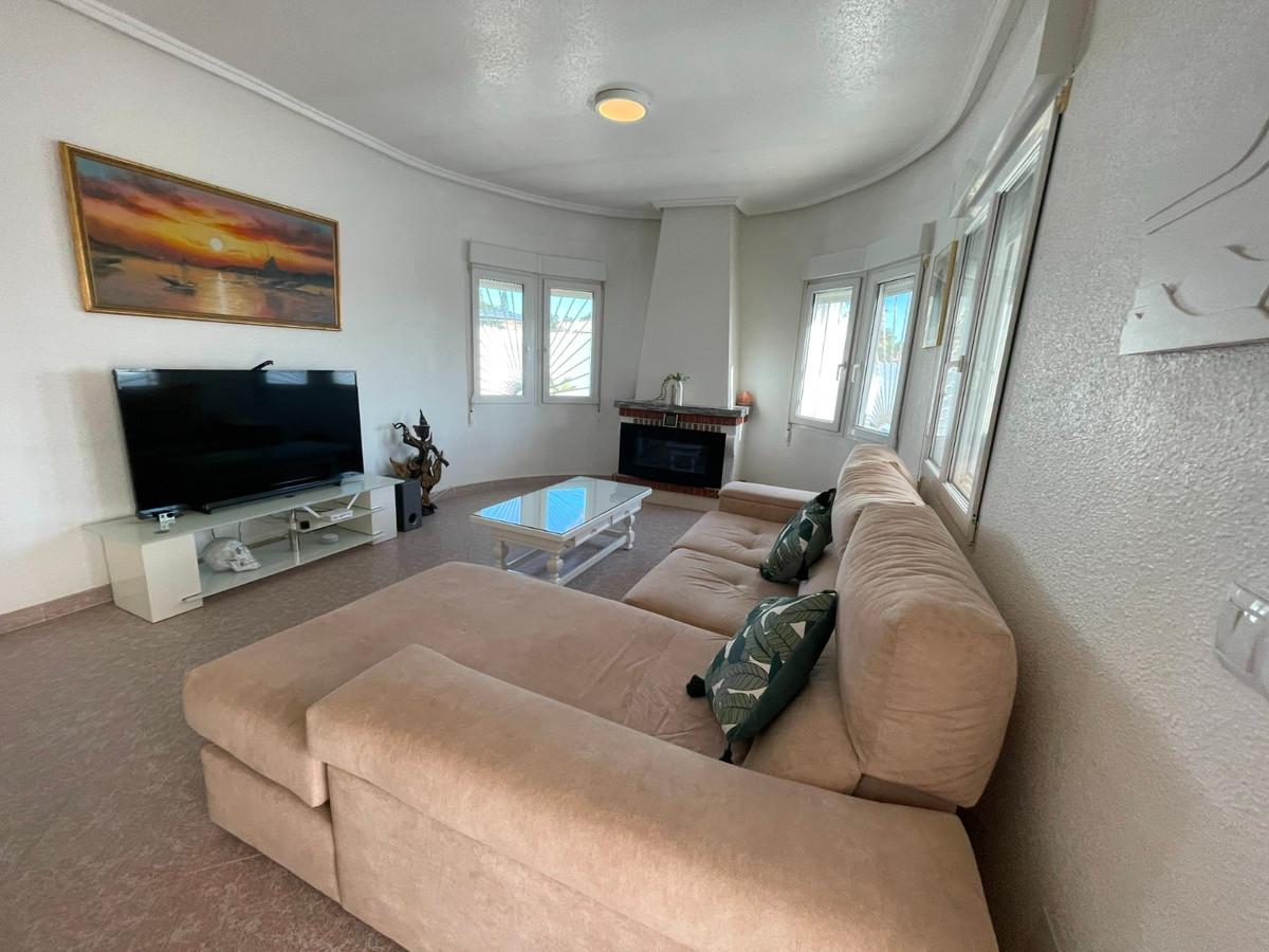 Detached Villa in Perfect Condition, Ready to Move In!Don't miss this opportunity! This villa is highly recommended both as a permanent residence and as a second home for dream holidays.This beautiful villa is located in one of the best areas of Ciudad Quesada (Rojales), just a short walk from all essential services, bars, restaurants, and leisure facilities. The property is in excellent condition, ready for you to move in and start living right away. It perfectly combines comfort, functionality, and elegance, making it ideal for year-round living or unforgettable holidays.Main Features Spacious glazed terrace, perfect for enjoying natural light year-round. 3 bedrooms, all with fitted wardrobes. One bedroom is currently used as a practical walk-in wardrobe. The house also offers the possibility to add an extra bedroom if needed. 2 bathrooms plus an additional outdoor bathroom for convenience. Cozy living-dining room with a fireplace, ideal for relaxing and spending time with family. Open-plan kitchen, fully equipped with a breakfast bar and a dishwasher. The kitchen provides access to a spacious pantry with plenty of storage space. A well-maintained closed garage connected to the pantry, currently used for additional storage with ample cabinets for practical organization. Additional Features: Climate-controlled, double-glazed windows with mosquito protection on all windows. Newly upgraded pool engine, ensuring efficient and reliable operation.Exterior and Additional Features: Private pool and relaxation area, perfect for enjoying the sunny climate of the region. Petrol Heating: Central heating with a petrol boiler and tank, updated annually to ensure maximum efficiency during the colder months. Air conditioning for optimal comfort during the hot summer months. Private pool and relaxation area, perfect for enjoying the sunny climate of the region. Petrol Heating: Central heating with a petrol boiler and tank, updated annually to ensure maximum efficiency during the colder months. Air conditioning for optimal comfort during the hot summer months. Covered parking on the plot, prepped and ready for solar panels, along with a spacious closed garage with direct access to the house. A well-maintained large plot, offering plenty of space for outdoor activities and ensuring peace and tranquility.This property not only stands out for its layout and features but also for its excellent location in Ciudad Quesada, a well-established and highly sought-after area, close to beaches and golf courses.