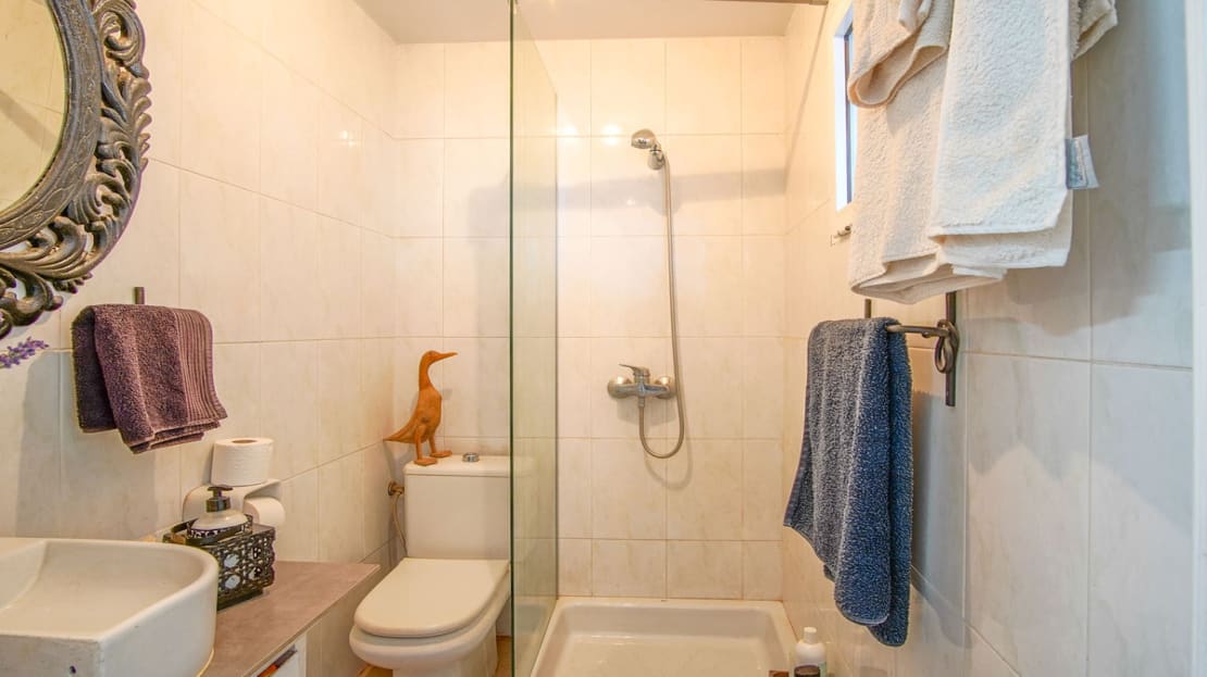 This charming house is distributed in three double bedrooms, three complete bathrooms, living room and kitchen with dining room. There is also an open plan room which can be used for whatever you need, currently used as a laundry room and dog run.