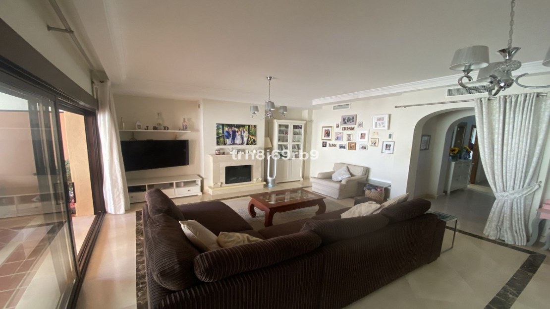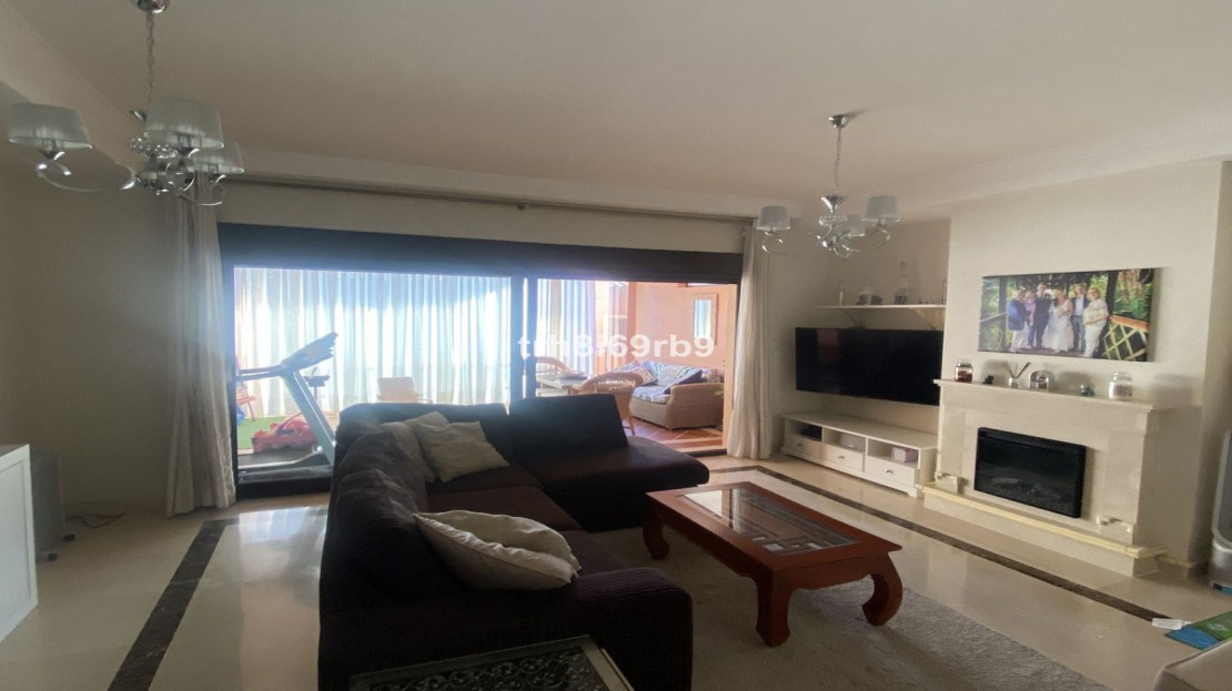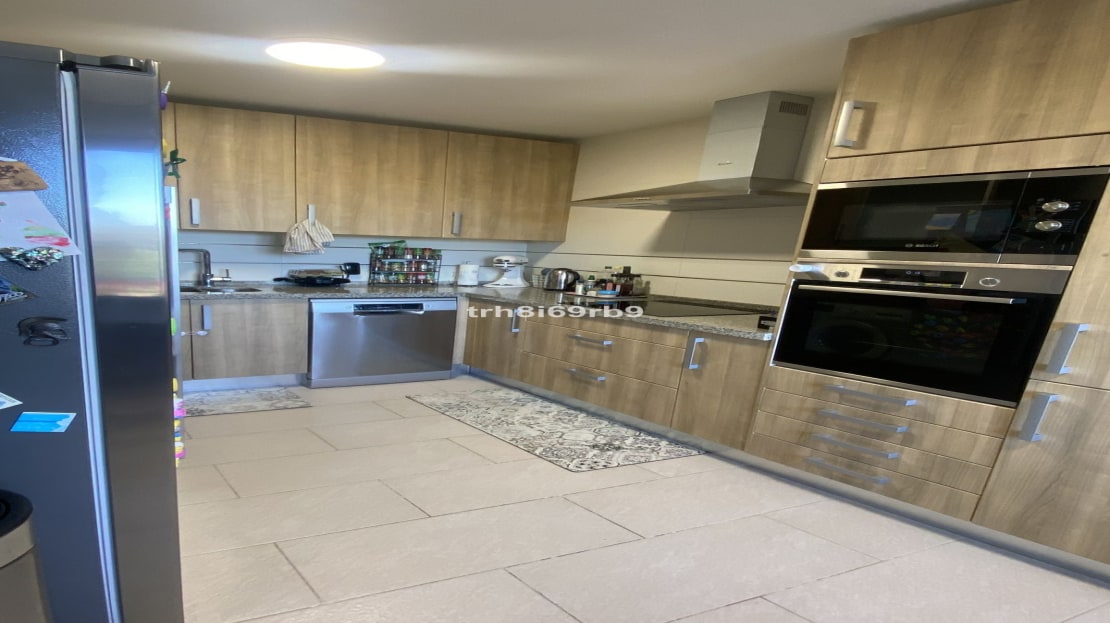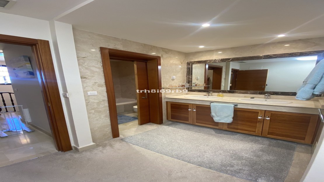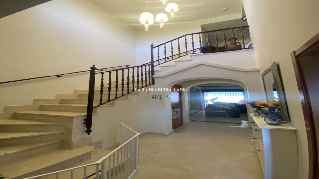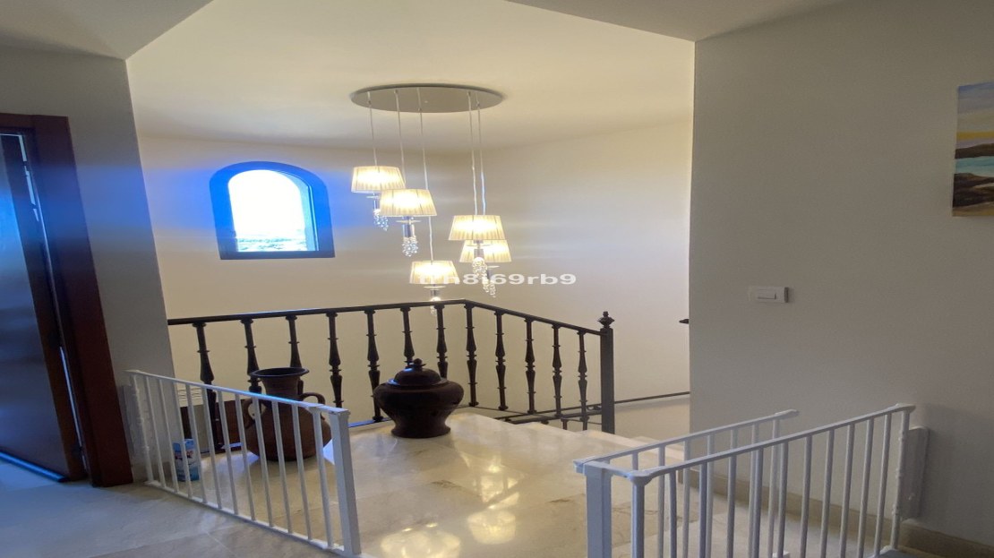 Upon entering the property, the first thing you notice is how light, modern and airy the property is. On the ground floor, as you enter the front door on the right hand side, there is a spacious fully fitted kitchen with Bosch appliances. The kitchen counters have been extended for more useful storage and have a built in breakfast bar with views to the mountains, sea and even Gibraltar on a clear day. Across the hallway is a guest WC and the hallway leads to a large lounge. This family area benefits from having an open fireplace which, in turn leads to a large terrace with a south-east orientation and benefits from having glass curtains, effectively extending the available living space. On the 1st floor there are 3 bedrooms all with fitted wardrobes, a spacious master bedroom with en-suite bathroom and jacuzzi bath and an extended terrace from which there are lovely views of the golf course and the Mediterranean Sea. There are 2 further double bedrooms which share a family bathroom with large shower. The whole property has marble floors throughout and new air conditioning/heating systems with pre installed ducting which is centralised on a home automation system which also controls all the electric shutter blinds with underfloor heating in all the bathrooms. The property boasts a huge private double garage and storage room with its own gate and driveway, which some other owners in the community have converted in to additional living space, or use as a gym, TV or games room. This space has internal access up to the property.