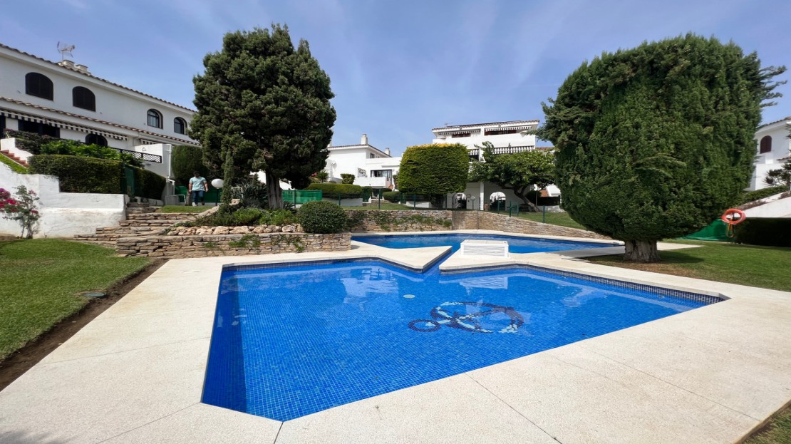 The property's outstanding features include a **private garage**, providing convenience and security for parking. In addition, the development boasts a **communal swimming pool**, surrounded by well-kept gardens, providing a perfect environment to enjoy the Mediterranean climate.