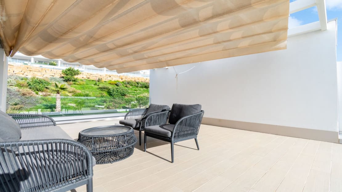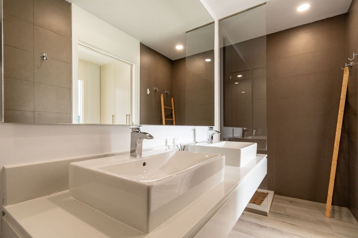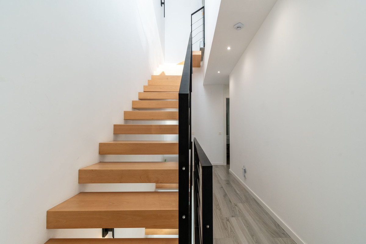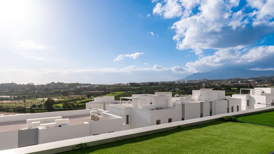 Stunning brand new and stylish three bedroom townhouse located within a super exclusive gated and secure resort in Cancelada, Estepona. The house comes fitted to a very high standard, equipped with plenty of storage and absolutely perfect for full-time living. This brand new townhouse offers a spacious and naturally bright living space, parking space, lift access and an impressive rooftop solarium! The townhouse offers views of the mountains from all of its terraces and is only a 20 minutes walk from a stunning sandy beach at Costalita which also ideal for short term rentals.