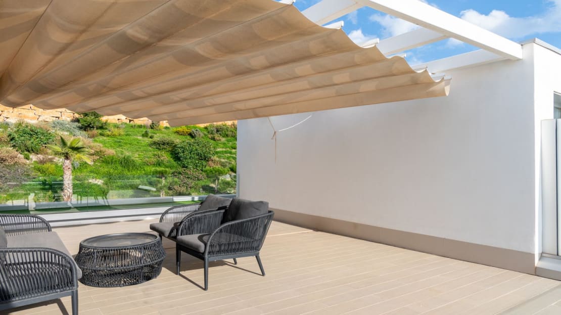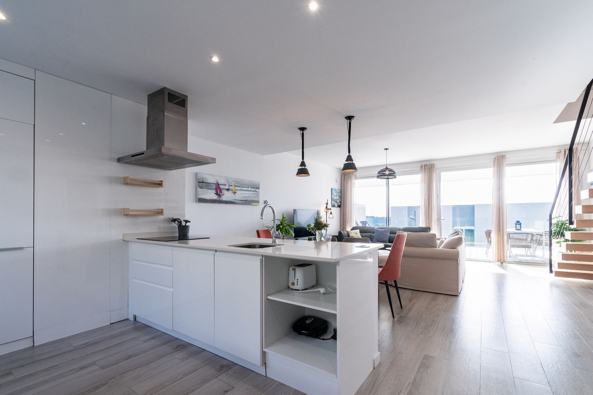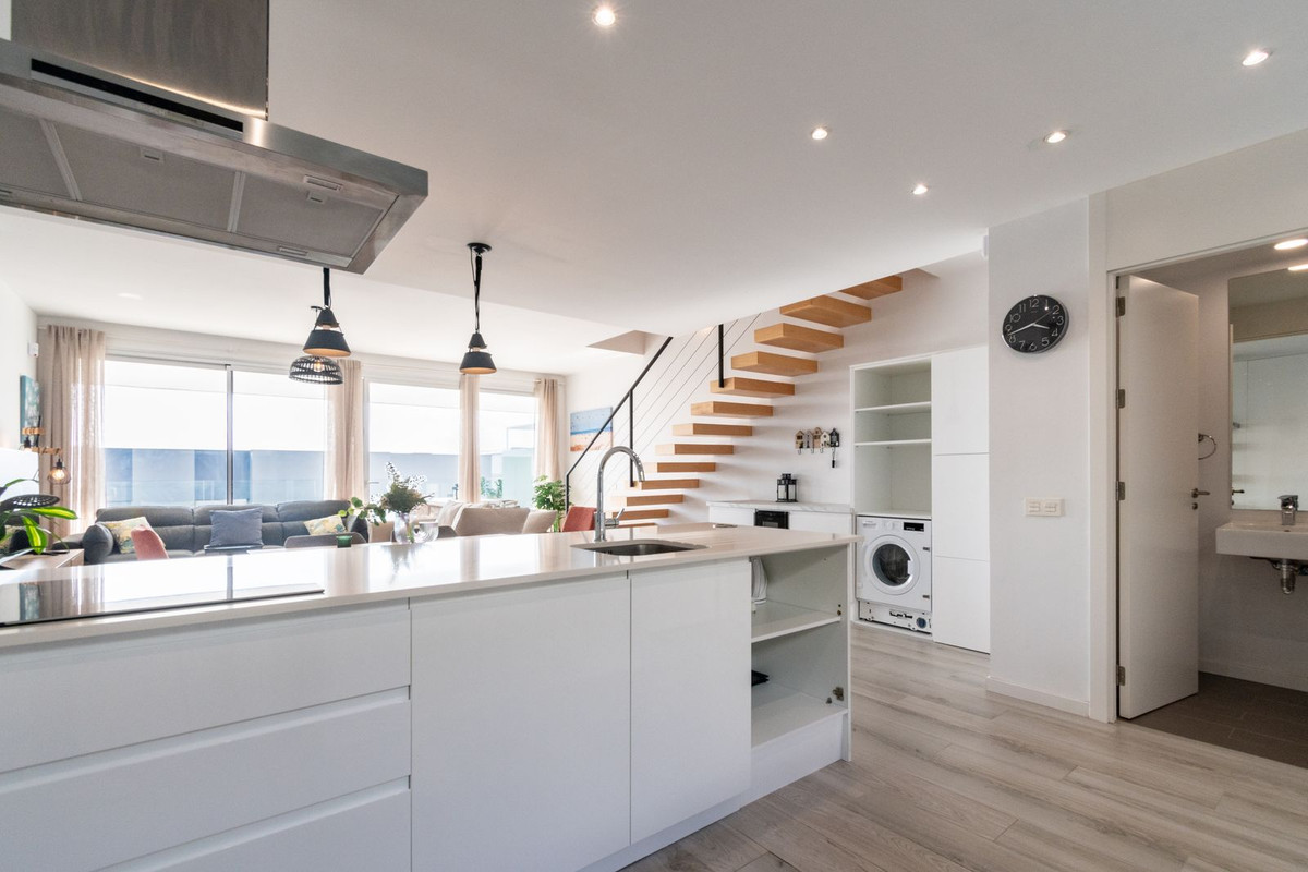 The house is split over two levels plus a roof top terrace, with a stylish open-plan design throughout. The living and elegant dining room are spacious and naturally bright, flowing directly into a fully fitted kitchen with Bosch appliances, opening onto a private terrace with beautiful open views. Upstairs, the exquisite master bedroom has an en-suite bathroom and a walk-in dressing room, perfect for modern living, enjoying fabulous sea views. This level also has two further bedrooms and a generous family bathroom. From this level you have access to a spectacular and extremely private roof terrace with some of the best views you will ever see! The high-quality design includes air-conditioning and porcelain floors in all areas, the property will also have access to a fabulous onsite private clubhouse, where you will find a heated indoor swimming pool, sauna, gymnasium, and a cafe/co-working cafe. A truly incredibly property, with many additional upgrades made by the present owner, which is located a short walk from all general amenities and the stunning sandy beaches of Costalita. An absolute must view!
