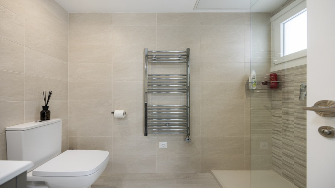 Spread over two levels, the home is bathed in natural light, thanks to its south-west orientation, ensuring bright, airy interiors throughout the day. The expansive solarium offers impressive sea views, perfect for relaxing or entertaining. The property includes a private garden facing southwest, ideal for enjoying the Mediterranean climate.