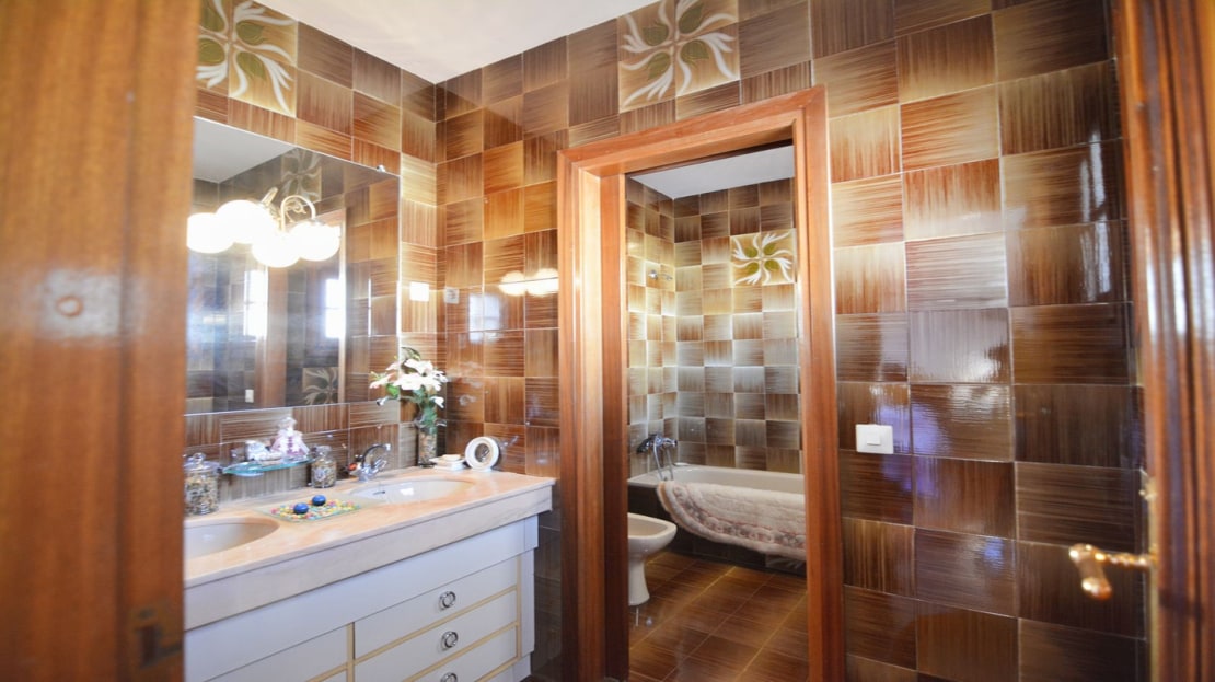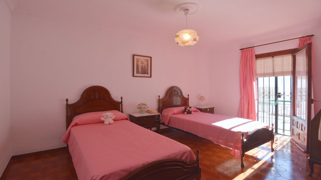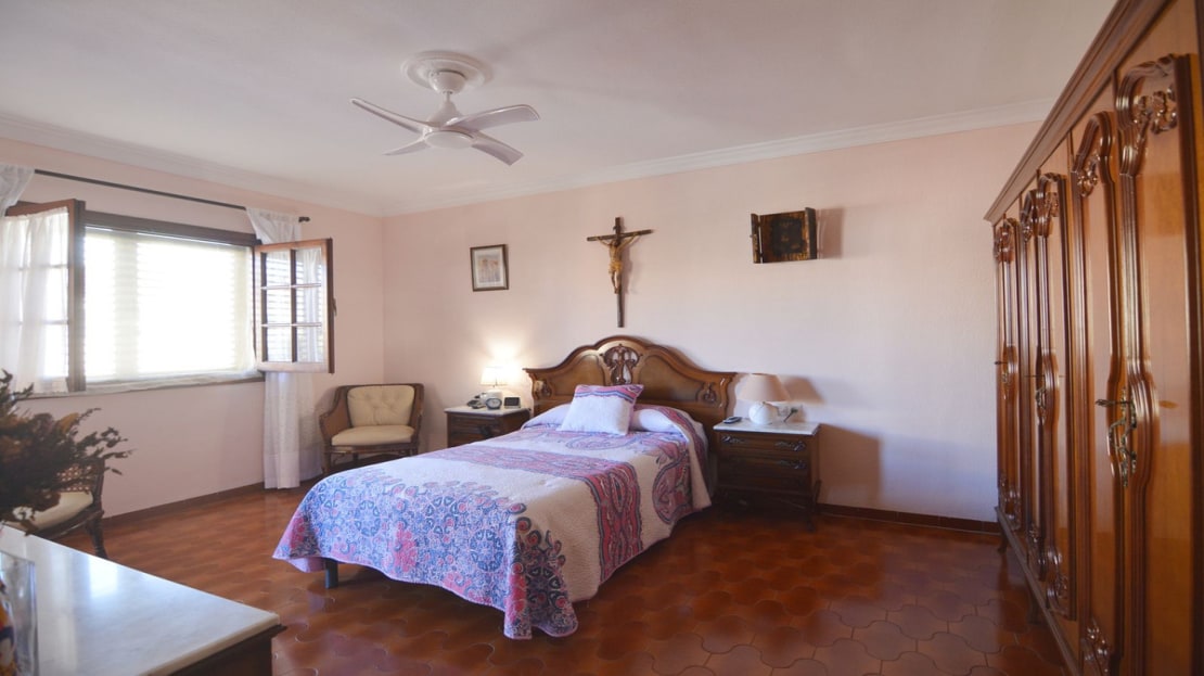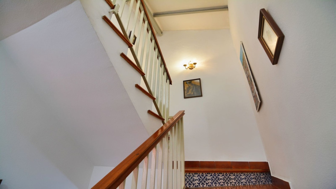 On the second floor, we find three comfortable bedrooms. The master bedroom stands out for its generous size, with a private terrace perfect for relaxing while enjoying the views. Additionally, it has an en-suite bathroom, ensuring complete privacy. This level also has another full bathroom, serving the other two bedrooms.