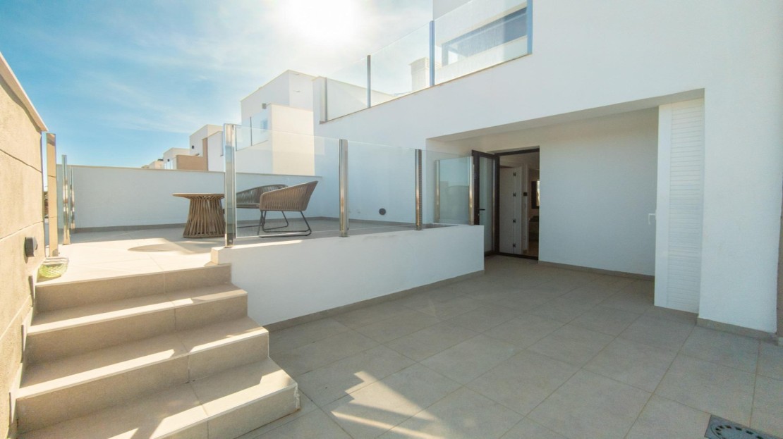 Stairs lead to the first floor and 2 further double bedrooms, each with fitted wardrobes and a family bathroom. From the landing you can also access a large two level terrace with water and electric supply, perfect for a jacuzzi maybe!