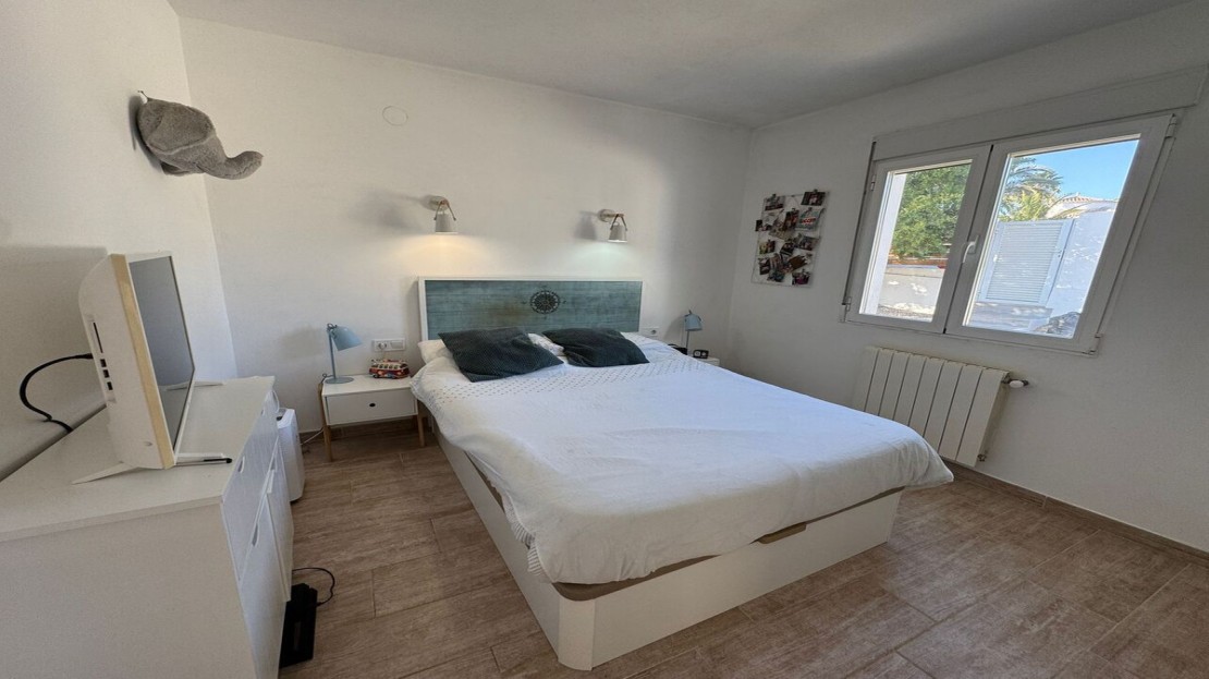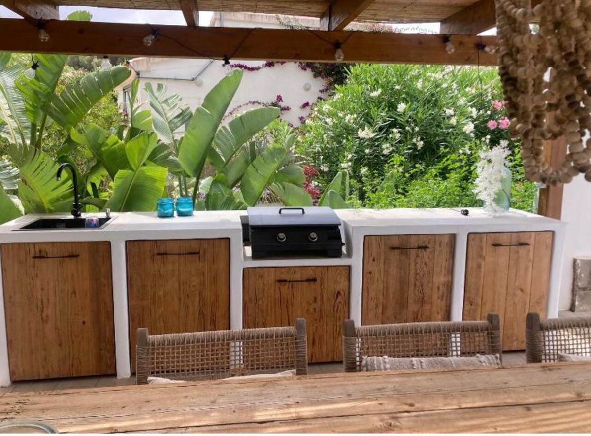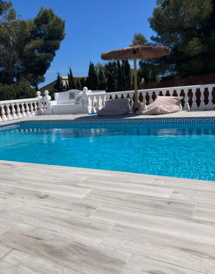 Nestled in the coveted Costa Nova area of Javea, this exquisitely renovated single-storey villa embodies the perfect blend of tranquility and Mediterranean allure. Set amidst a lush, green backdrop, the home offers a serene retreat just moments from some of the region’s most breathtaking beaches, including the golden sands of Arenal, the crystal-clear waters of Portitxol, and the pristine beauty of Granadella. With a coveted south-facing orientation, the villa basks in sunlight all year round, while sweeping views create an atmosphere that is both bright and welcoming.The villa has been lovingly restored with an eye for detail and comfort, featuring two spacious bedrooms and an office that could easily serve as a charming third bedroom. The master suite is a peaceful sanctuary, complete with an elegant ensuite shower room, while all bedrooms are fitted with built-in wardrobes to ensure ample, practical storage. The kitchen, a harmonious blend of modern and rustic elements, is a true heart of the home, with its sleek induction stove adding a touch of contemporary flair to its timeless charm.Step outside to discover a paradise of outdoor living. The villa’s 4x10m south-facing pool is a sparkling centerpiece, seamlessly flowing into the living room terrace, inviting effortless enjoyment of Javea’s idyllic climate. Surrounding the pool, the low-maintenance garden creates a tranquil haven, leading to a stunning Ibiza-style summer kitchen, where a wooden pergola provides a welcome shade – the perfect spot for savoring al fresco meals or simply unwinding in the embrace of nature.The property is as practical as it is beautiful, offering electric pedestrian and car gates, both easily controlled from within the home, ensuring the ultimate in convenience and security. A spacious driveway accommodates at least two cars. The villa is set in a quiet, peaceful neighborhood that offers the ideal balance of serene living with the vibrant amenities and picturesque coastline of Javea just a short drive away. This home is the epitome of Mediterranean charm, offering modern comforts, refined elegance, and an exceptional location.