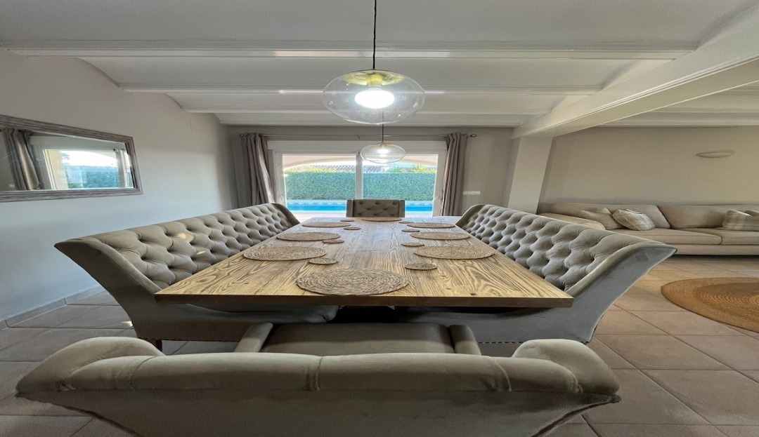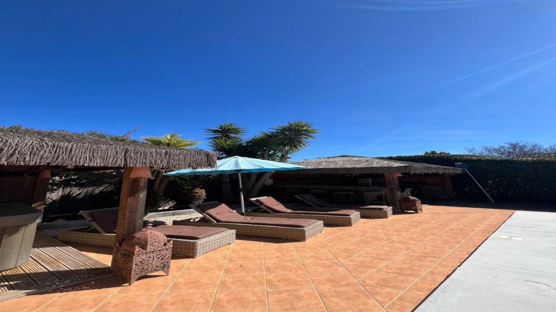 Situated on a south-facing plot, the villa enjoys sunshine all year and boasts open views that create a bright, inviting atmosphere. It features 3 spacious bedrooms, including a master suite with an ensuite shower room, and built-in wardrobes in all rooms, underfloor heating throughout. The modern-rustic kitchen, equipped with an induction stove, adds unique character to the home.