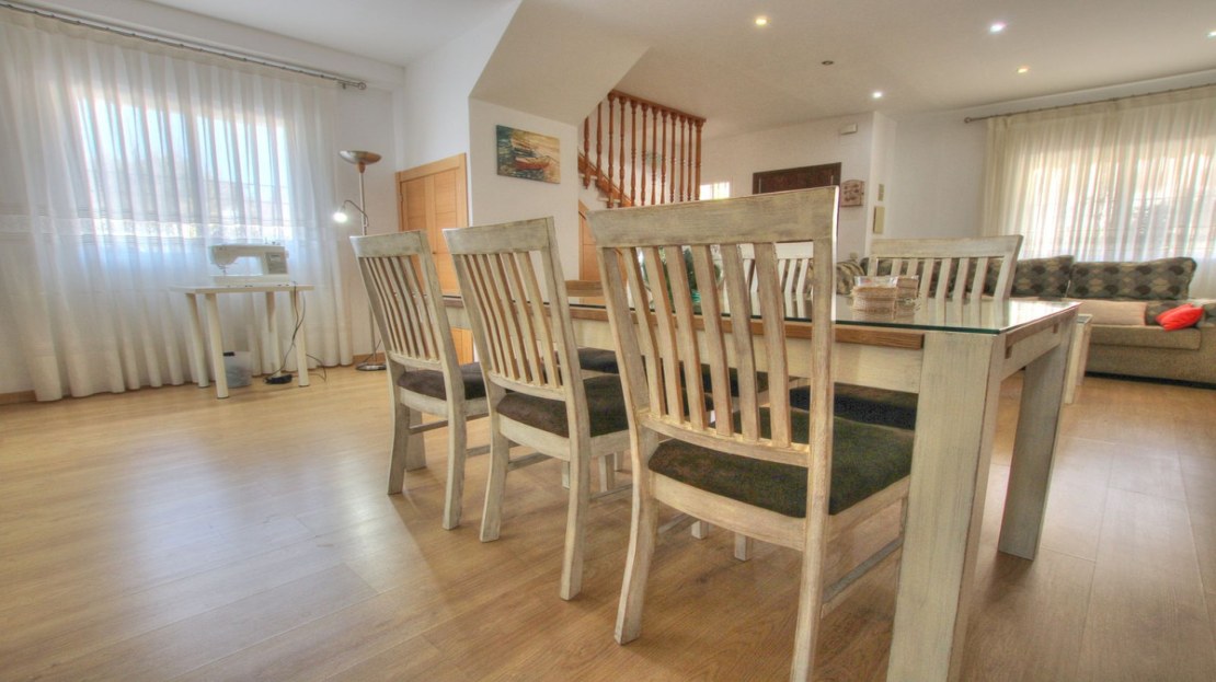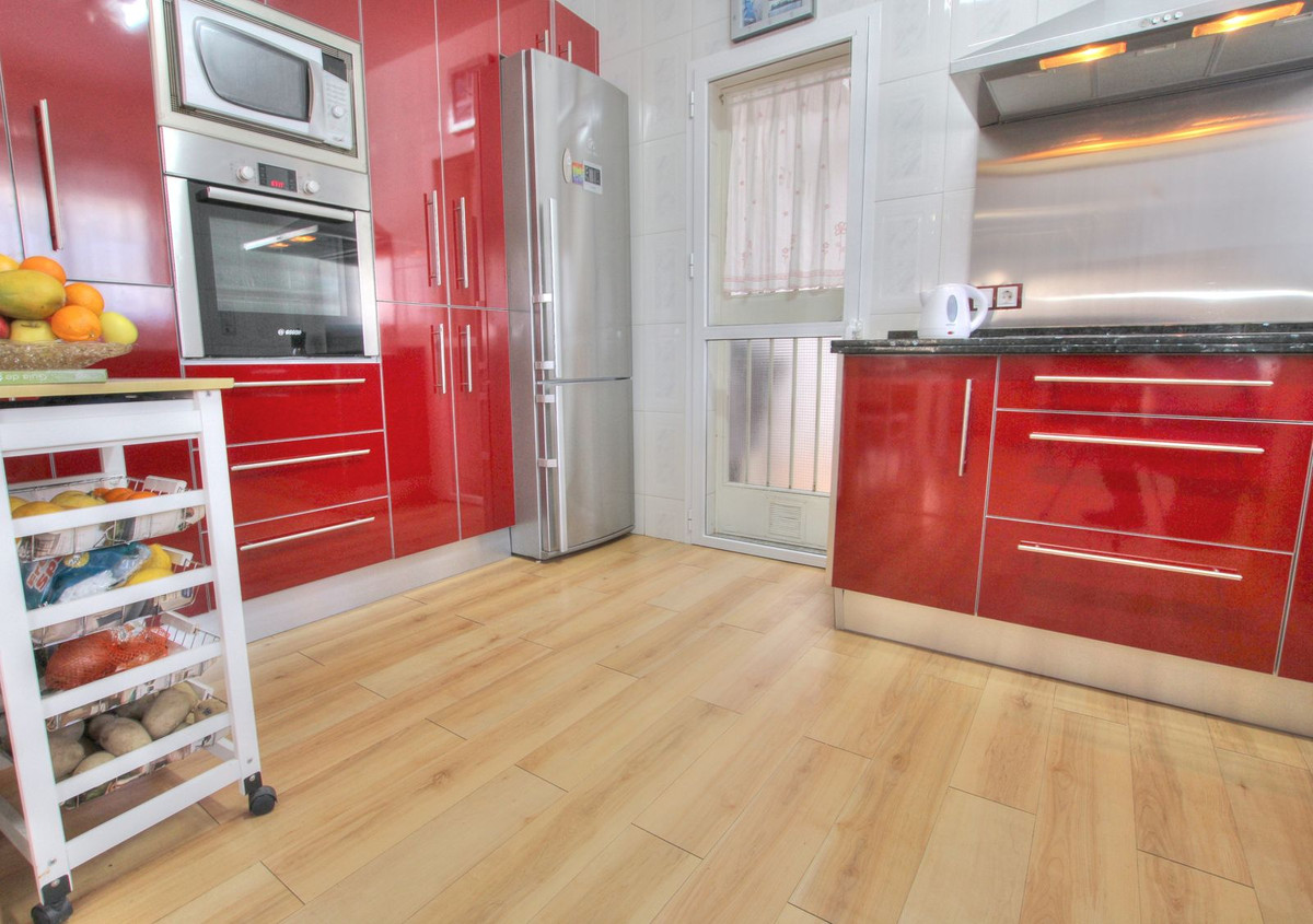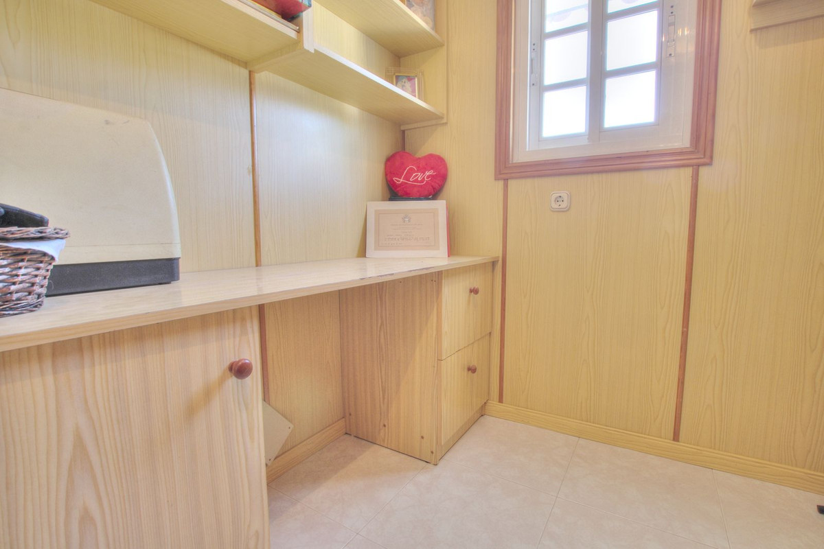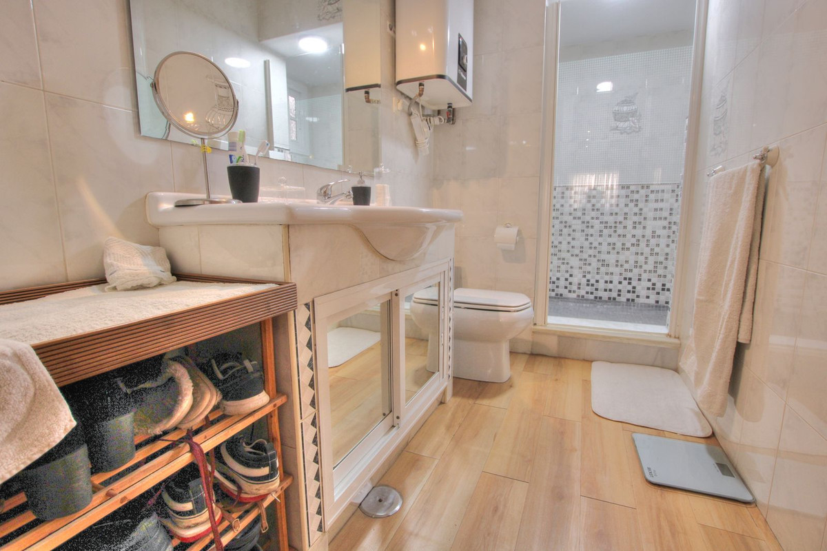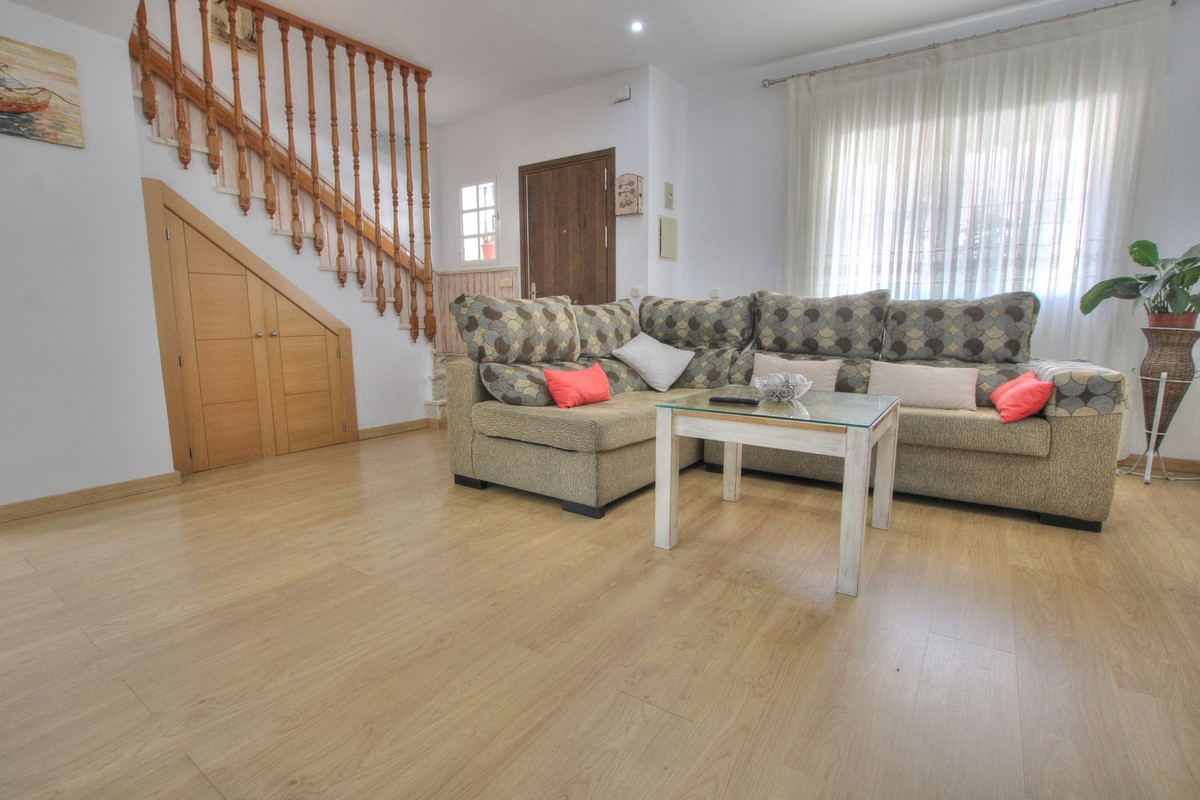 The property is situated very close to the centre of La Cala and all amenities and entertainment, bars, restaurants, etc. The sea is a 5 minute walk. Supermarkets are close to hand too and schools. The house is laid out on 3 levels. There is a gate which opens up to a front terrace and the lounge is open plan and spacious, opening up into a big kitchen. Beyond the kitchen is an enclosed area which can be put to multiple uses. Spacious enough to be converted into a garage or for use as a storage area, or an office for example. There is a bathroom on this level. The next level is approached up the staircase. There is a lounge with a juliet balcony, which can be easily converted into another bedroom. 2 bedrooms branch off from this down a corridor with a bathroom. One of the bedrooms has a nice terrace. On the second floor is the master bedroom with en suite bathroom, and another small adjoining room. The house has lots of possibilities to make it how you wish. Location and size making it a great choice.