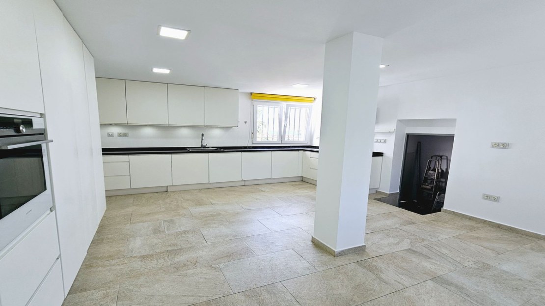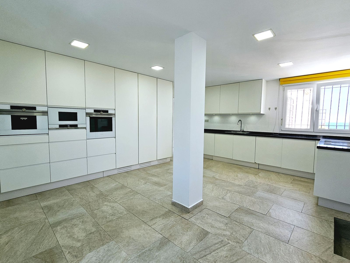 Spread over two floors this home is spacious and bright. On entering the house you are immediately greeted by the most amazing panoramic golf and sea views. The sitting room, with feature fireplace, is large with a fantastic terrace overlooking the golf course and has stairs taking you down to the pool and BBQ area. Upstairs, the modern kitchen is extremely large and was totally refurbished a few years ago. There is enough space for a large table in the kitchen, plenty of workspace and cupboards and, again, beautiful sea views.