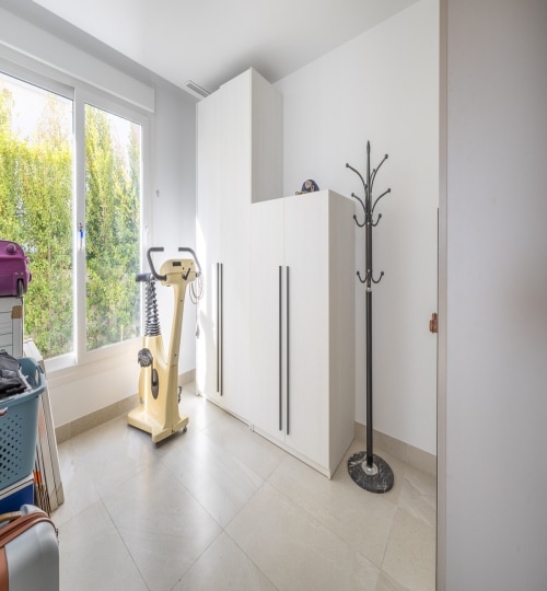 Going into the property the first thing you will notice is how flooded with light it is. The lounge diner is very spacious with an open, luxury kitchen with all appliances. The vaulted, beamed ceiling is a very nice feature adding a rustic touch to the modern internal space. The large patio doors lead to a terrace which is perfect for alfresco dining and entertaining. The garden to the back of the property is large and has a gate giving direct access to the beautiful communal pool. Whilst there is room for a private pool, the close proximity of the communal pool and its direct access from the garden is why the current owners chose not to have a private pool.