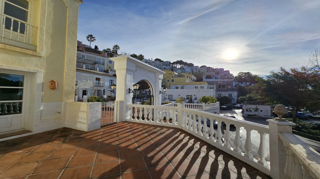 Step outside onto the terrace, where panoramic vistas of La Heredia and the Benahavís countryside unfold before you. This outdoor haven is perfect for al fresco dining, entertaining friends, or simply relaxing with a book while savoring the Mediterranean climate.