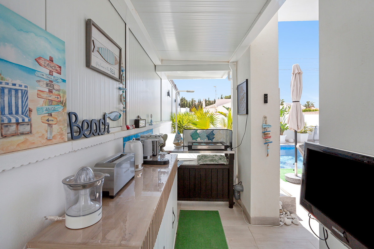 Covered outdoor kitchen.
