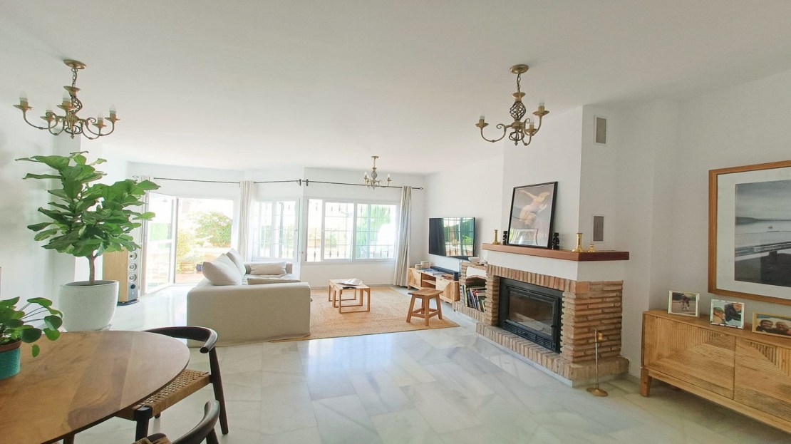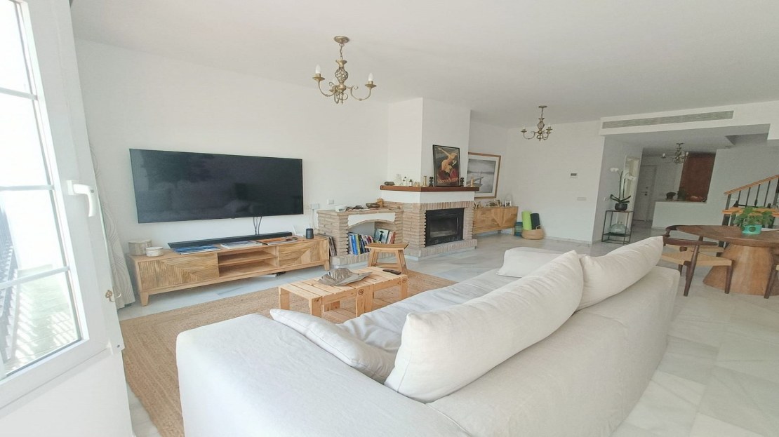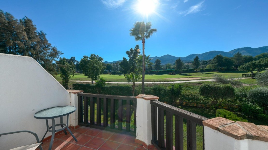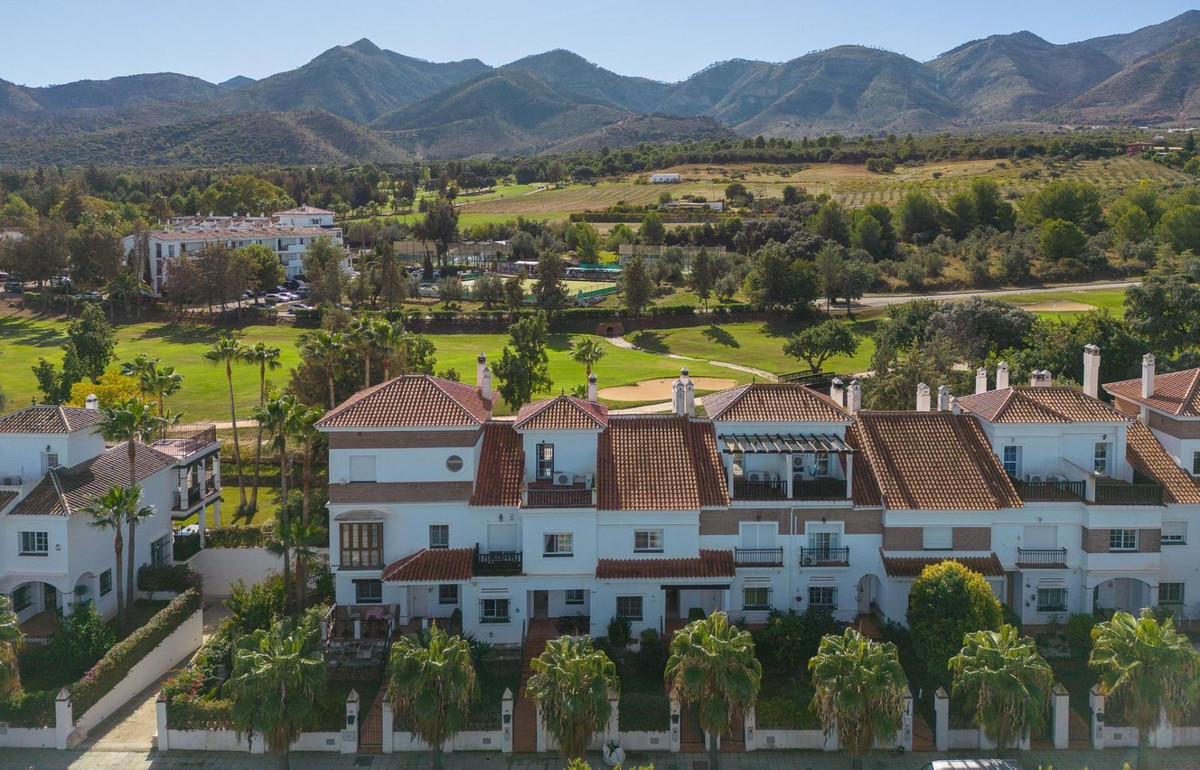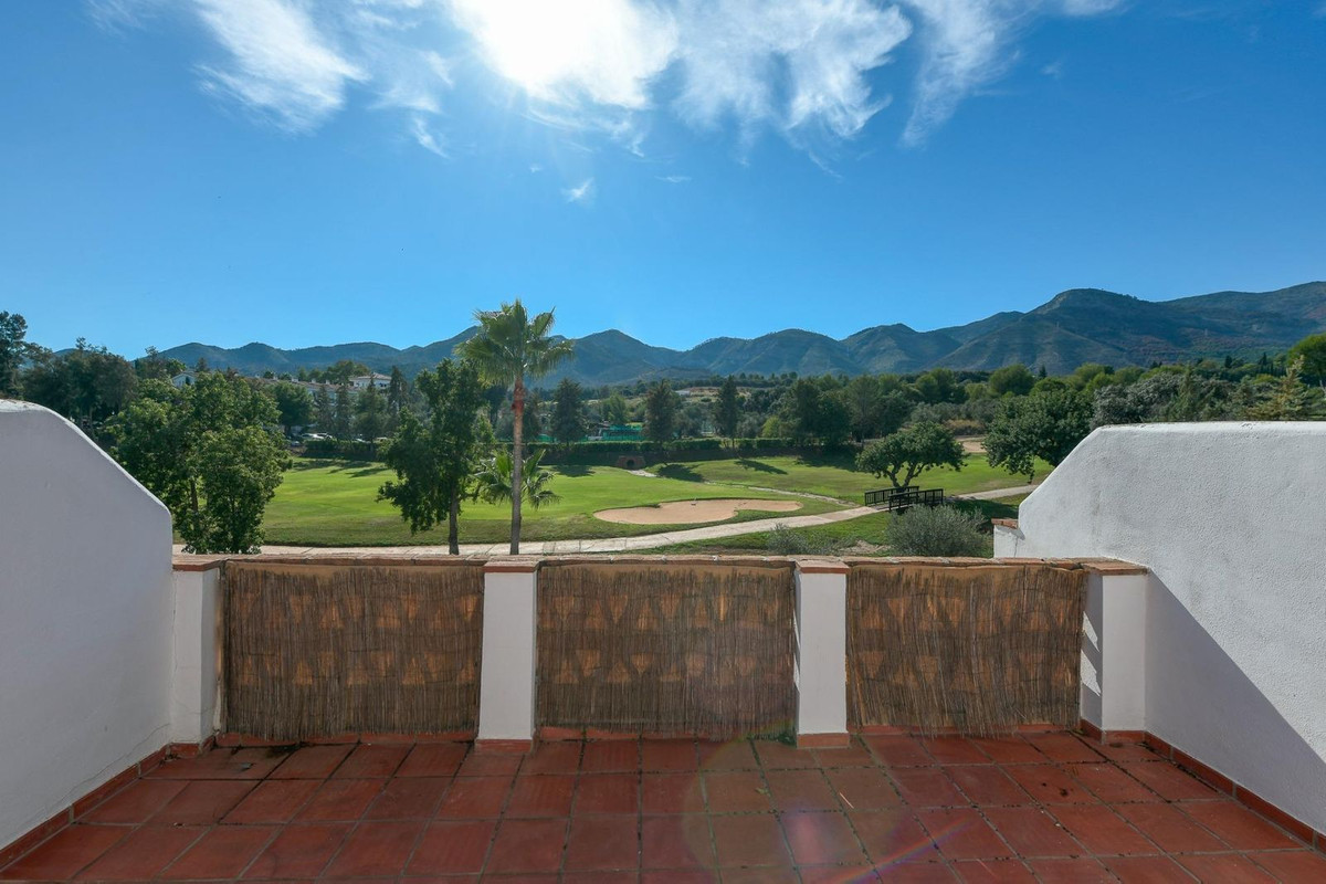 Magnificent townhouse located on a popular golf course on the outskirts of Alhaurin el Grande and only 20 minutes from the airport and the coast. The house is ready to move into and is distributed over three floors in addition to the basement with garage and storage room and with direct access to the house. On the main floor we find a spacious and bright fully equipped kitchen, a toilet, and a spacious living room with a fireplace and direct access to the rear terrace and garden area from where you can enjoy peace and quiet. tranquility of living on a golf course. On the upper floor two bedroomss with fitted wardrobes and two bathroons one with shower and the other with a bath. Air conditioning and heating system throughout the house and fiber optic internet. On the upper floor we find a third bedroom open to a private terrace with unbeatable views to the Mijas mountais and the golf course. An idyllic urbanization, with communal gardens and pool, tennis court, bowling alley and a magnificent restaurant where you can taste the Mediterranean diet. Ideal as a family home or for investment.