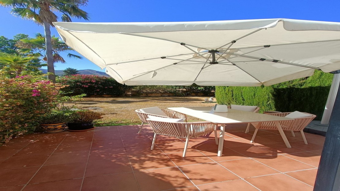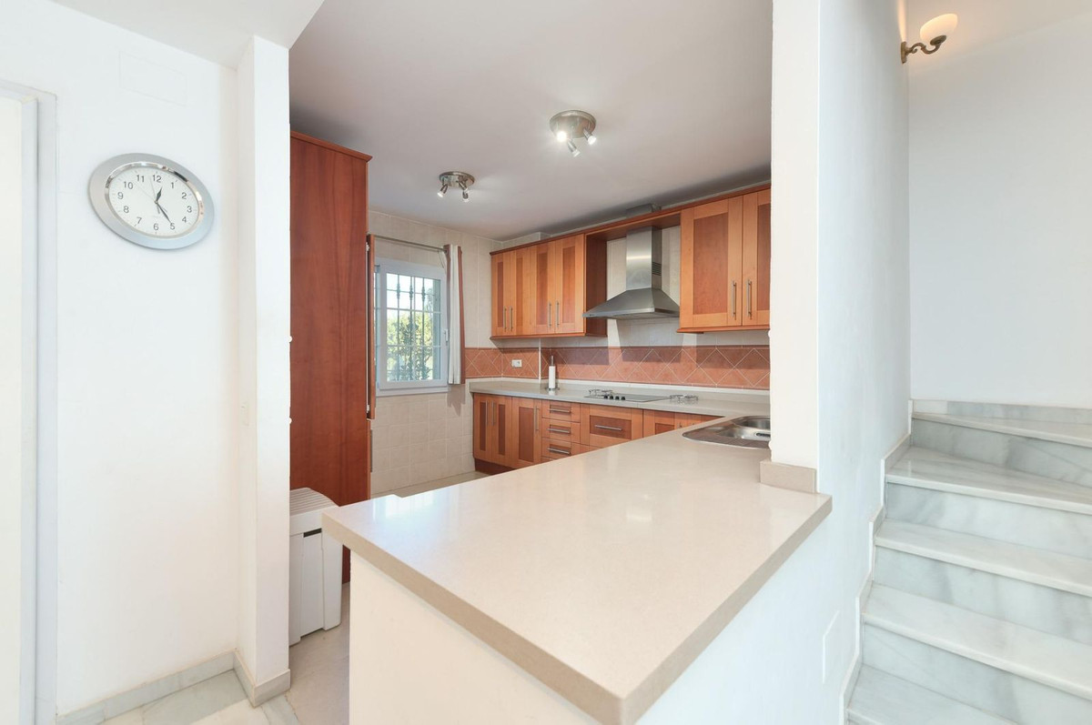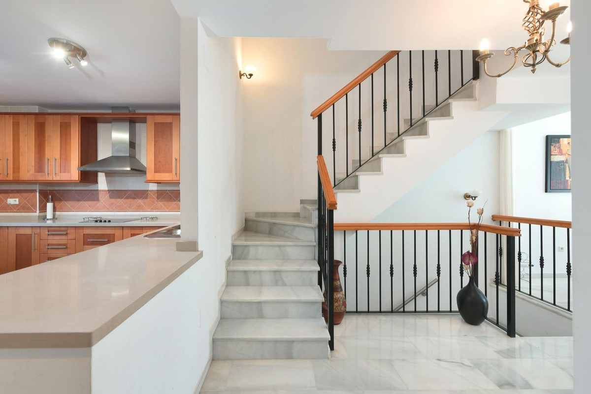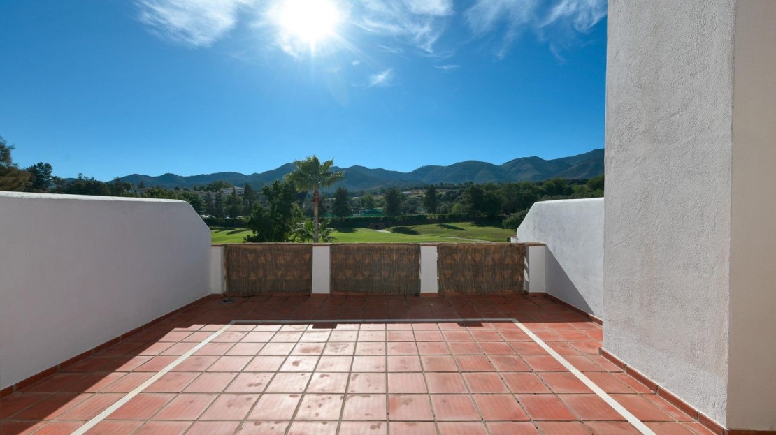 Magnificent townhouse located on a popular golf course on the outskirts of Alhaurin el Grande and only 20 minutes from the airport and the coast. The house is ready to move into and is distributed over three floors in addition to the basement with garage and storage room and with direct access to the house. On the main floor we find a spacious and bright fully equipped kitchen, a toilet, and a spacious living room with a fireplace and direct access to the rear terrace and garden area from where you can enjoy peace and quiet. tranquility of living on a golf course. On the upper floor two bedroomss with fitted wardrobes and two bathroons one with shower and the other with a bath. Air conditioning and heating system throughout the house and fiber optic internet. On the upper floor we find a third bedroom open to a private terrace with unbeatable views to the Mijas mountais and the golf course. An idyllic urbanization, with communal gardens and pool, tennis court, bowling alley and a magnificent restaurant where you can taste the Mediterranean diet. Ideal as a family home or for investment.