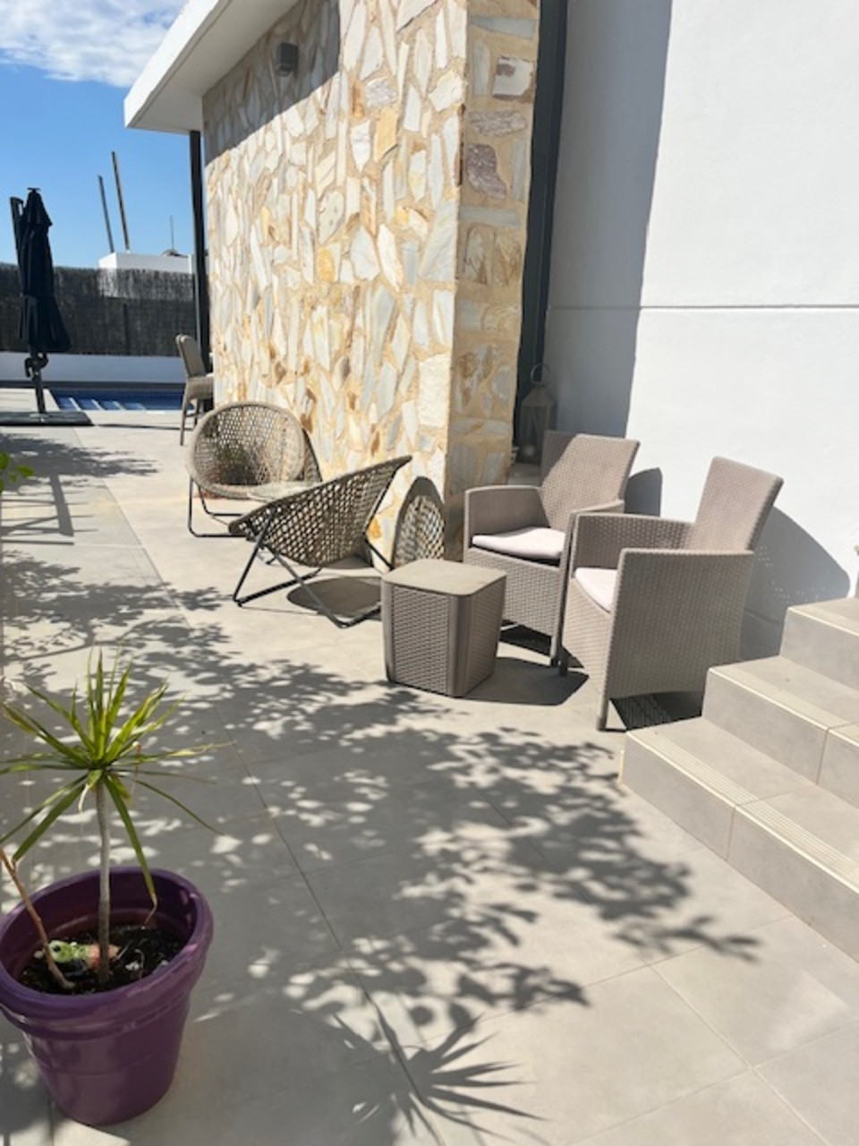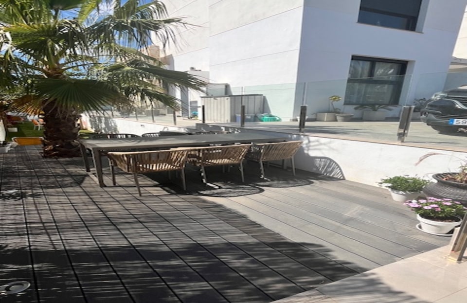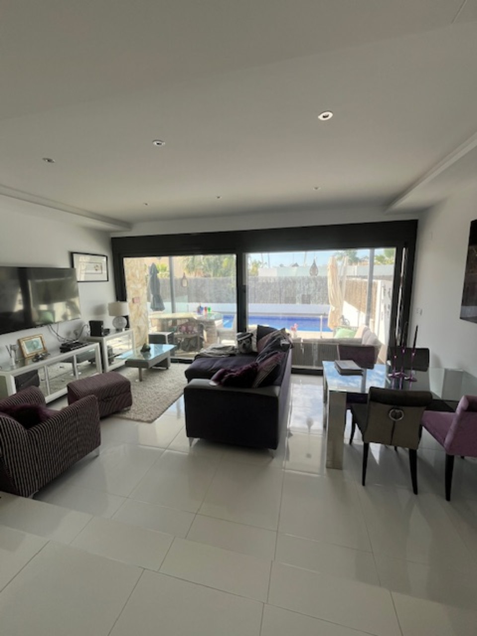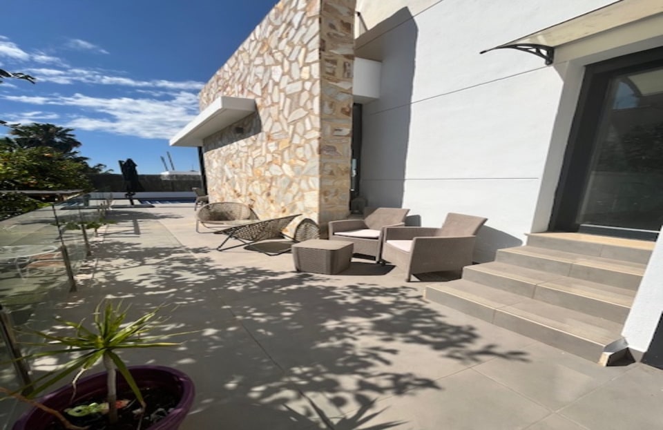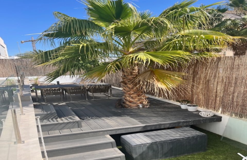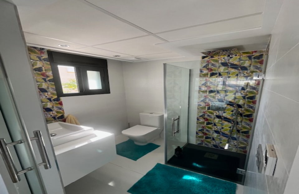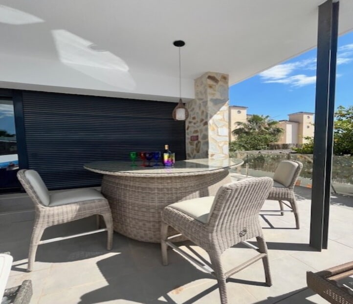 **Stunning 3-Bedroom Detached Villa in Lomas De Cabo Roig – Your Dream Home Awaits!**Welcome to this exquisite 3-bedroom, 3-bathroom detached villa nestled in the sought-after area of Lomas De Cabo Roig. This beautifully presented property is a perfect blend of modern elegance and comfortable living, situated within walking distance to all amenities. As you step inside, you'll be greeted by an inviting entrance hall that leads to a stylish cloakroom featuring underfloor heating. The ground floor boasts a spacious third bedroom complete with built-in wardrobes and its own en-suite shower room, also equipped with underfloor heating for added comfort.The heart of the home is undoubtedly the open-plan kitchen that seamlessly flows into the living and dining areas. Large sliding doors bathe the space in natural light and provide direct access to your sunny south facing patio area. Here, you’ll find your very own private heated pool and jacuzzi, perfect for unwinding after a long day or entertaining friends during those warm summer nights.Venture upstairs to discover two additional bedrooms. The second bedroom features ample built-in wardrobes, while the master suite offers an en-suite bathroom and dressing area that exudes luxury. Sliding doors lead you out onto a generous balcony where you can savor morning coffee or sunset views. A staircase from here takes you up to an expansive solarium boasting breathtaking far-reaching views—an idyllic spot for sunbathing or stargazing.Set on a well-maintained plot adorned with various seating areas and flourishing fruit trees, this villa provides an oasis of tranquility amidst vibrant surroundings. Security is paramount with communal electric gates as well as your own private electric gate leading to parking for one vehicle.This remarkable property comes part-furnished and includes essential white goods in the kitchen along with modern electric blinds throughout—ready for you to move in without delay!Don’t miss out on this incredible opportunity! Schedule your viewing today and experience firsthand what makes this villa so special. Whether you're seeking a permanent residence or a holiday retreat, this stunning home has it all!Your dream home awaits at Lomas De Cabo Roig!
