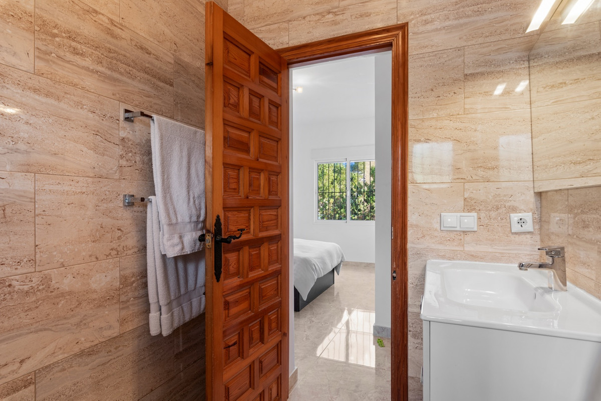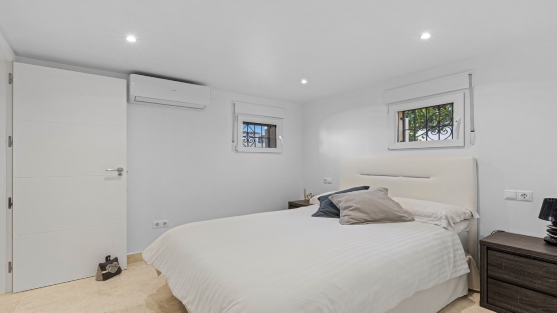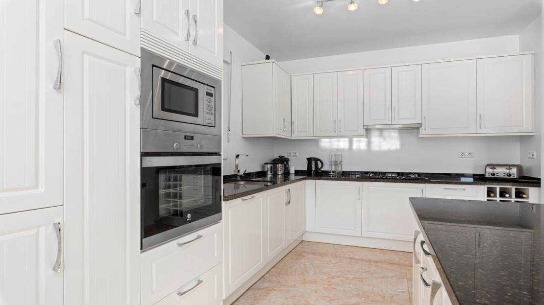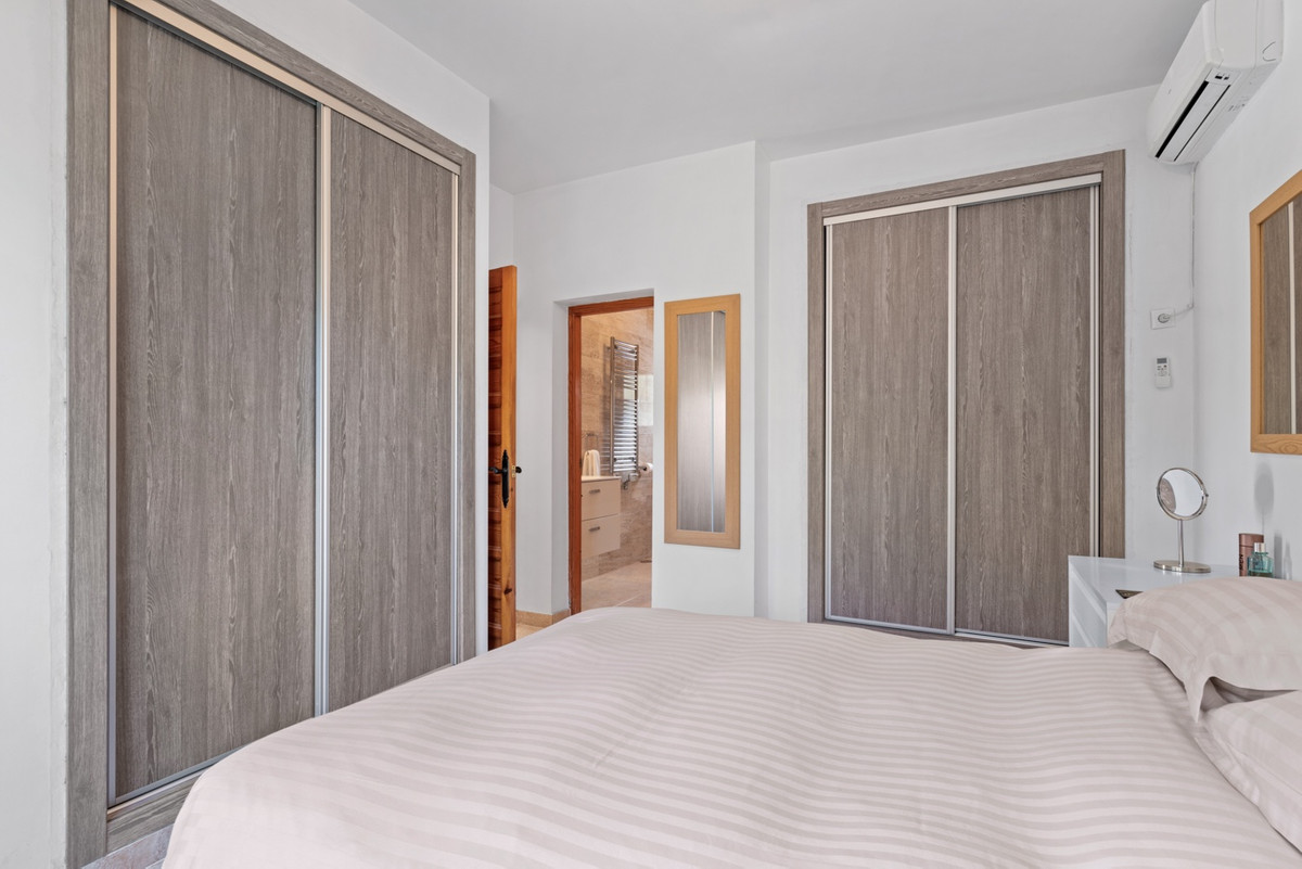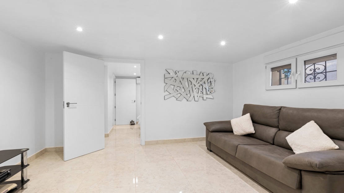 The property features a well-thought-out layout, which includes a guest apartment on the lower level, making it ideal for those seeking independent accommodation for family or friends. On the lower level, we find a guest apartment, perfect for visitors, with a large entrance space currently used as storage, but with great potential to be converted into a living/dining room. To the left of the entrance is a fully equipped kitchen, while to the right is a room currently used as a lounge, with the option to be transformed into an additional bedroom. At the back of this level is the master bedroom with an en-suite shower.