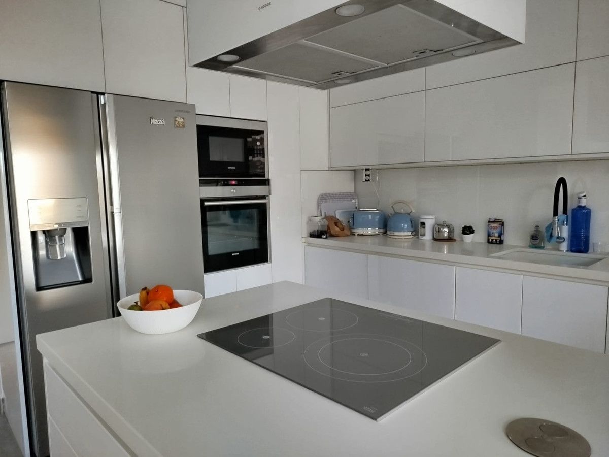 The spacious open-plan living area features contemporary finishes, creating a bright and inviting atmosphere. The fully equipped kitchen is designed for both functionality and aesthetics, making it perfect for home-cooking and entertaining.