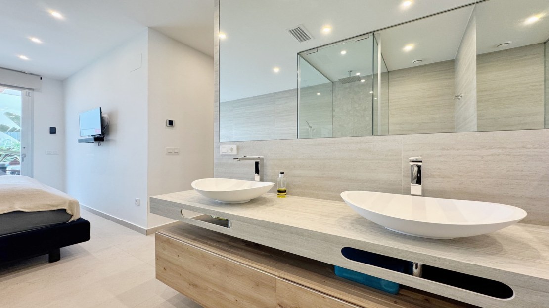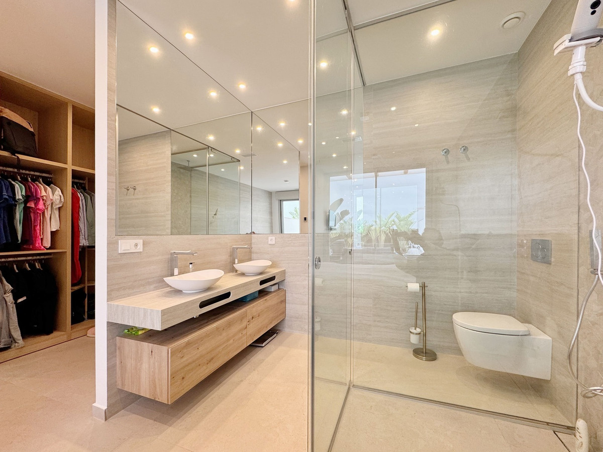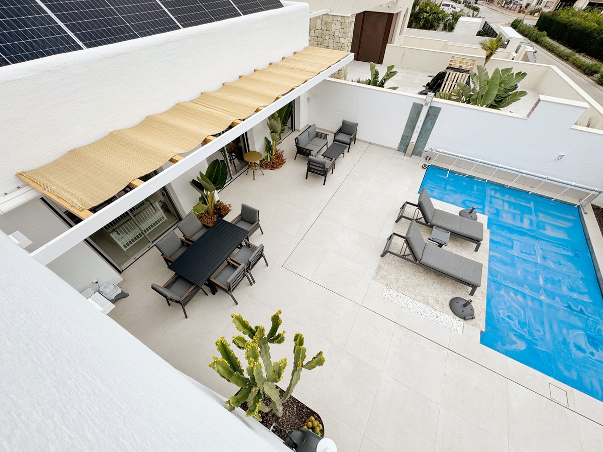 The house boasts a heated private pool, ideal for swimming year-round and making the most of the Mediterranean climate in total privacy. Additionally, it includes a 47 m² solarium, perfect for sunbathing and enjoying panoramic views of the area. The villa is fully furnished, with a fully equipped kitchen and high-quality finishes throughout.