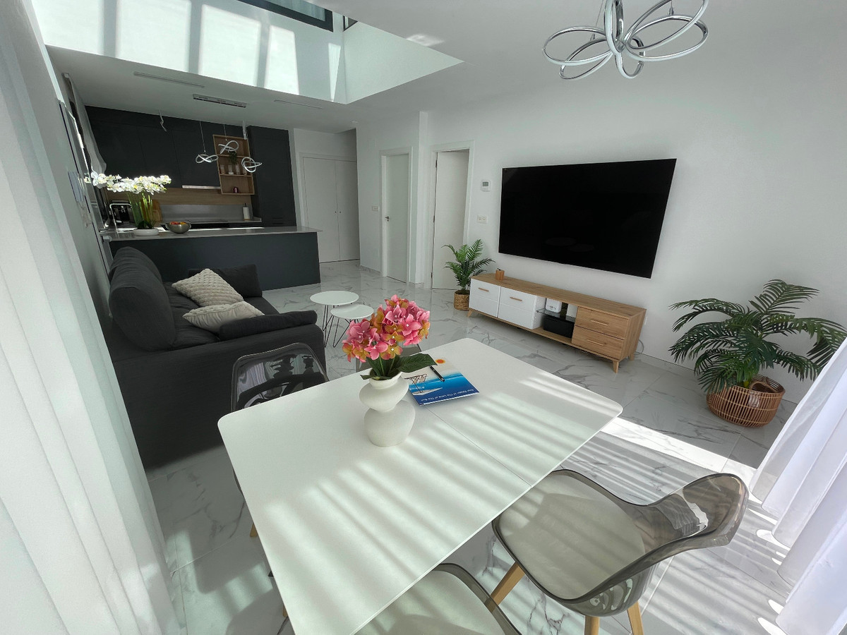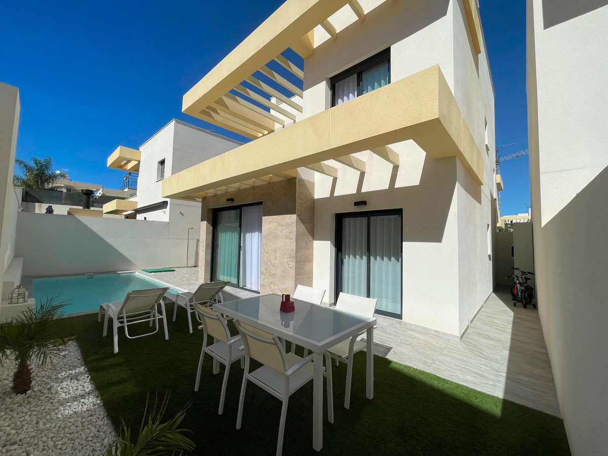 This is a modern, nearly-new home in excellent condition, built in 2023. It features 3 bedrooms, 2 bathrooms, a spacious living room, and a fully equipped kitchen. The property includes a private swimming pool, terrace, two air conditioning units, aerothermal heating system, underfloor heating in the bathrooms, a storage room, and parking on the plot. It is conveniently located near all services and is ready to move in.