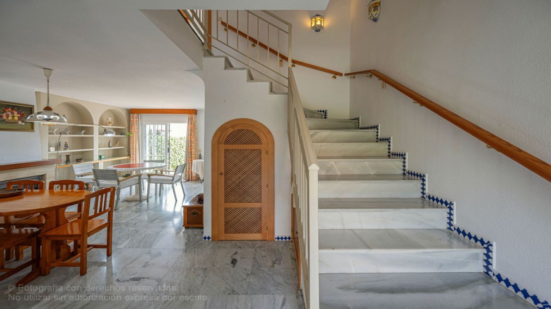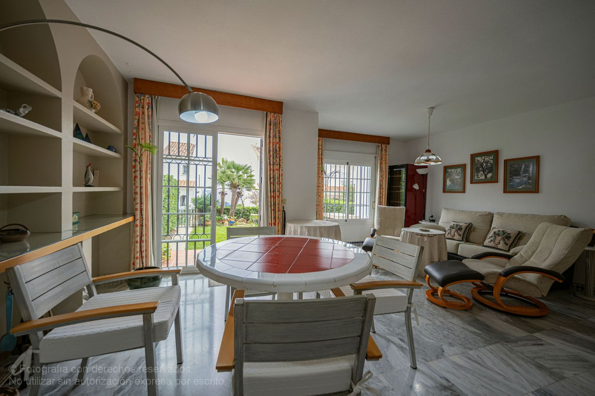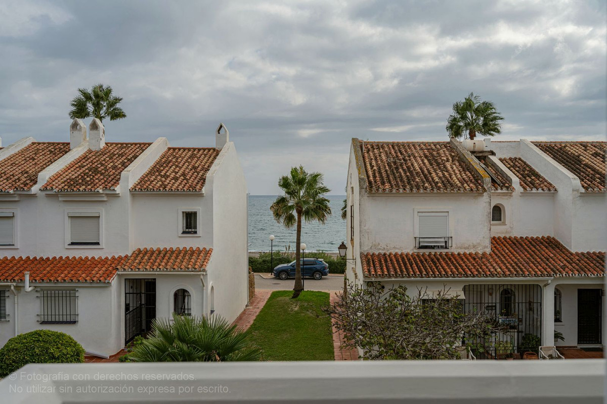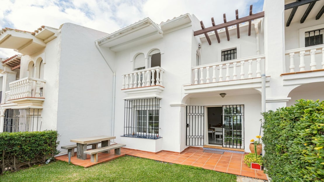 Charming townhouse in Chullera, Manilva Costa, with sea views and direct access to the beach. This bright property has three bedrooms and three bathrooms, a spacious living room perfect for family relaxation, and a fully fitted kitchen. With a south orientation, this property offers sea views from both floors, allowing you to enjoy the coastal scenery at any time of the day. In addition, it has a comfortable private garden and exclusive parking space at the door. The urbanization in which it is located has magnificent gardens, two swimming pools (one of them for children) and direct access to the beach, which makes it an ideal choice for both permanent residence and vacation home.