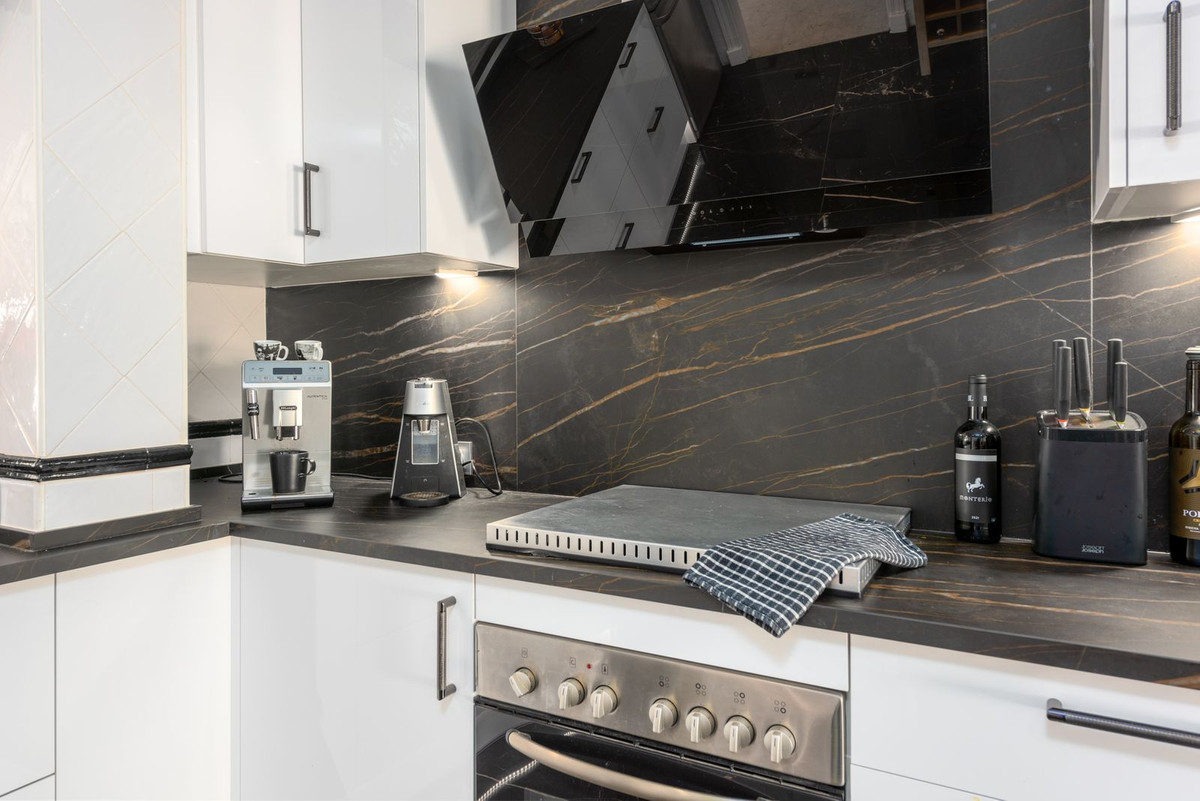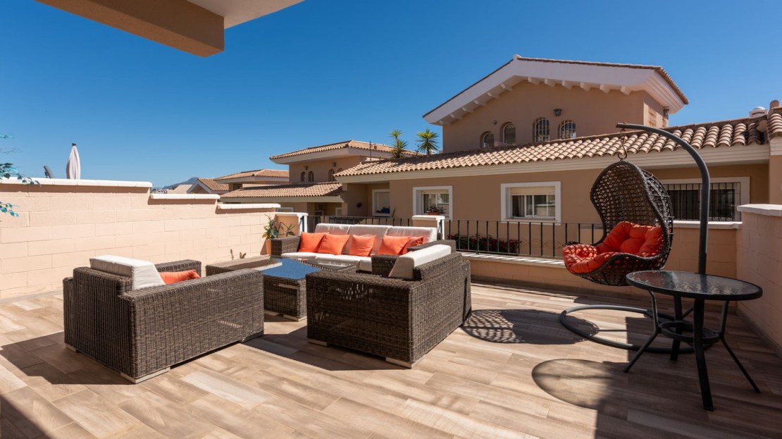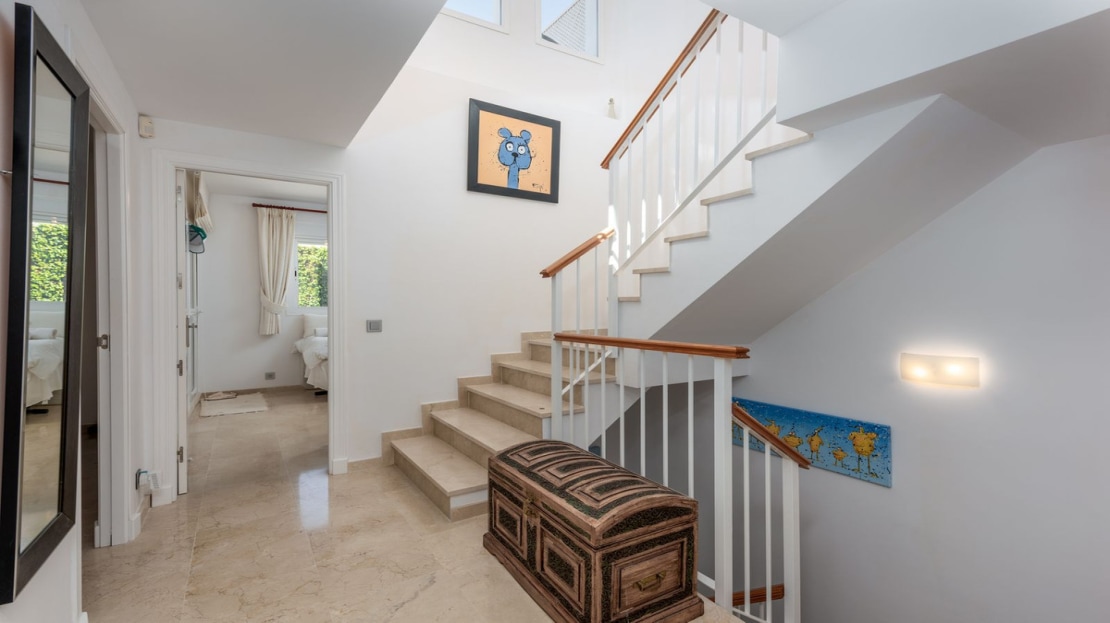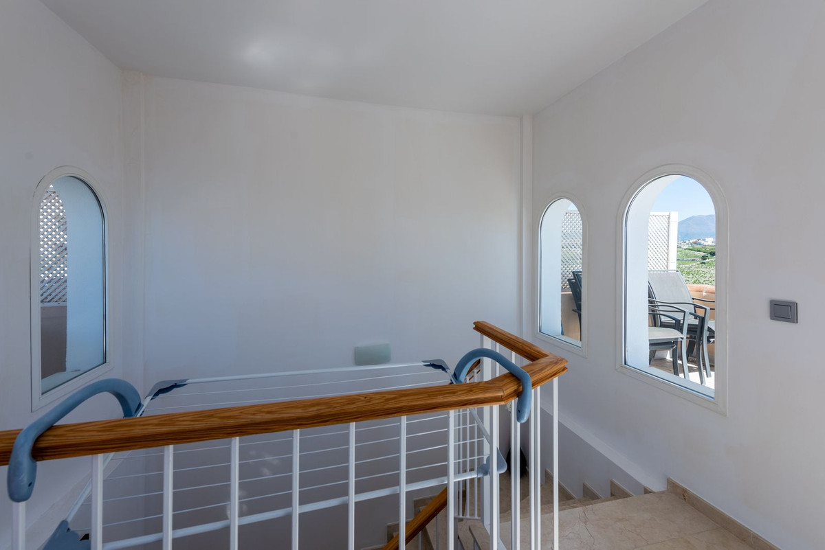 The main living room has a cosy fireplace, perfect for the colder months of the year. The marble floors add a touch of elegance to the entire property. In addition, the house has a large terrace of 20m², from where you can enjoy sea and mountain views and a solarium with beautiful views.
