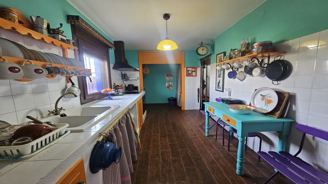 Stunning opportunity to buy a large plot of land with vineyards in the village of Manilva with a three-bedroom house, a detached house with a very large private pool and good maintenance. The house is in very good condition and has a very nice layout. The living room has a fireplace and catches the morning sun. At the main entrance there is now an office and behind the living room there is the hallway where the entrance to the family bathroom and the three bedrooms are. From the main hall you enter the kitchen with pantry and a large extra room of about 30M that has been built new as an annex and from there you go out to the large terrace/garden, pool, barbecue and relaxation area.