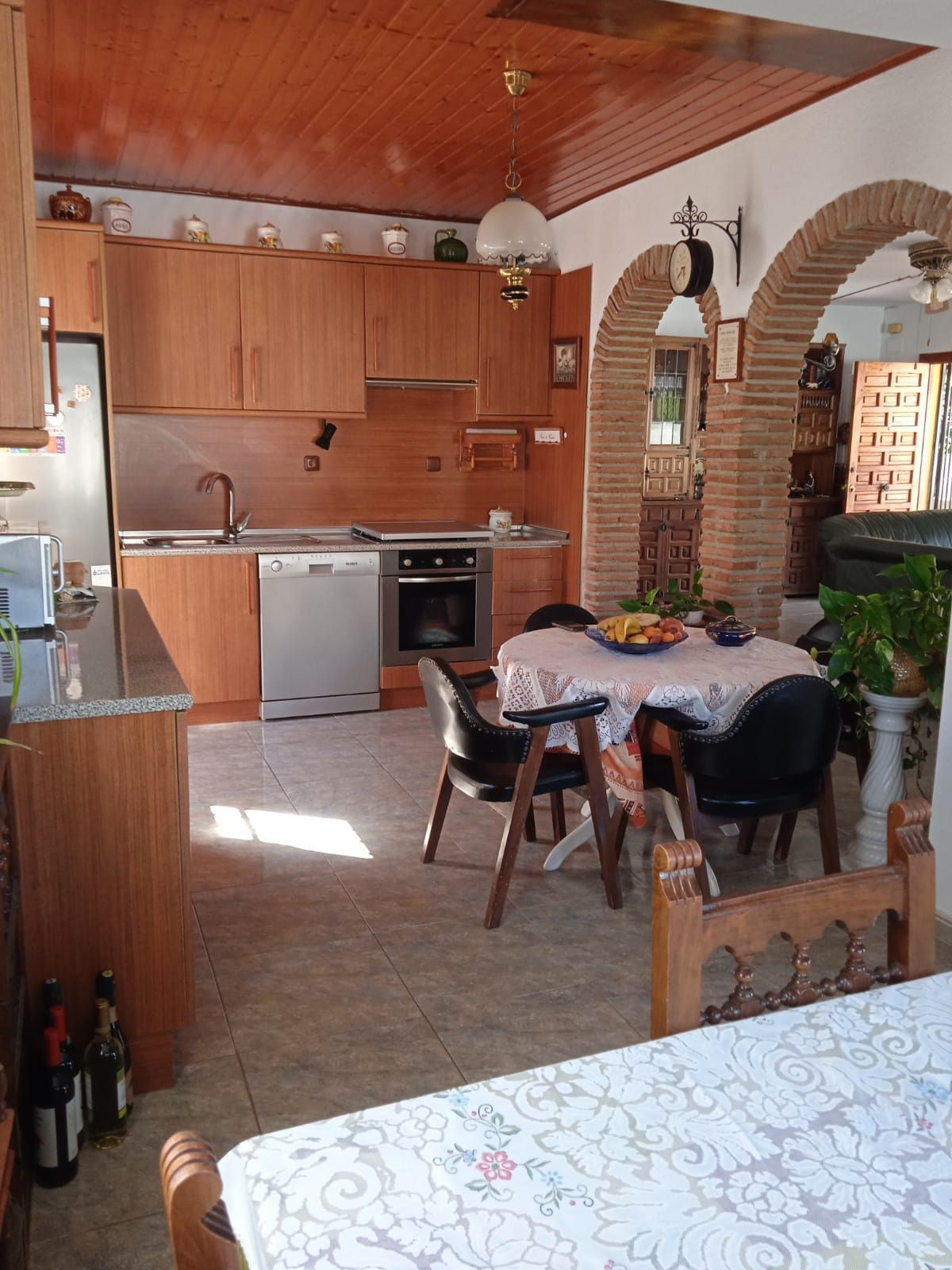 On the upper floor, you will find a spacious living room with an open-plan kitchen and dining area—perfect for unforgettable moments with family and friends. The house features four bedrooms and three bathrooms, making it ideal for accommodating the whole family. Built-in wardrobes and a storage room provide extra storage space, always a plus.
