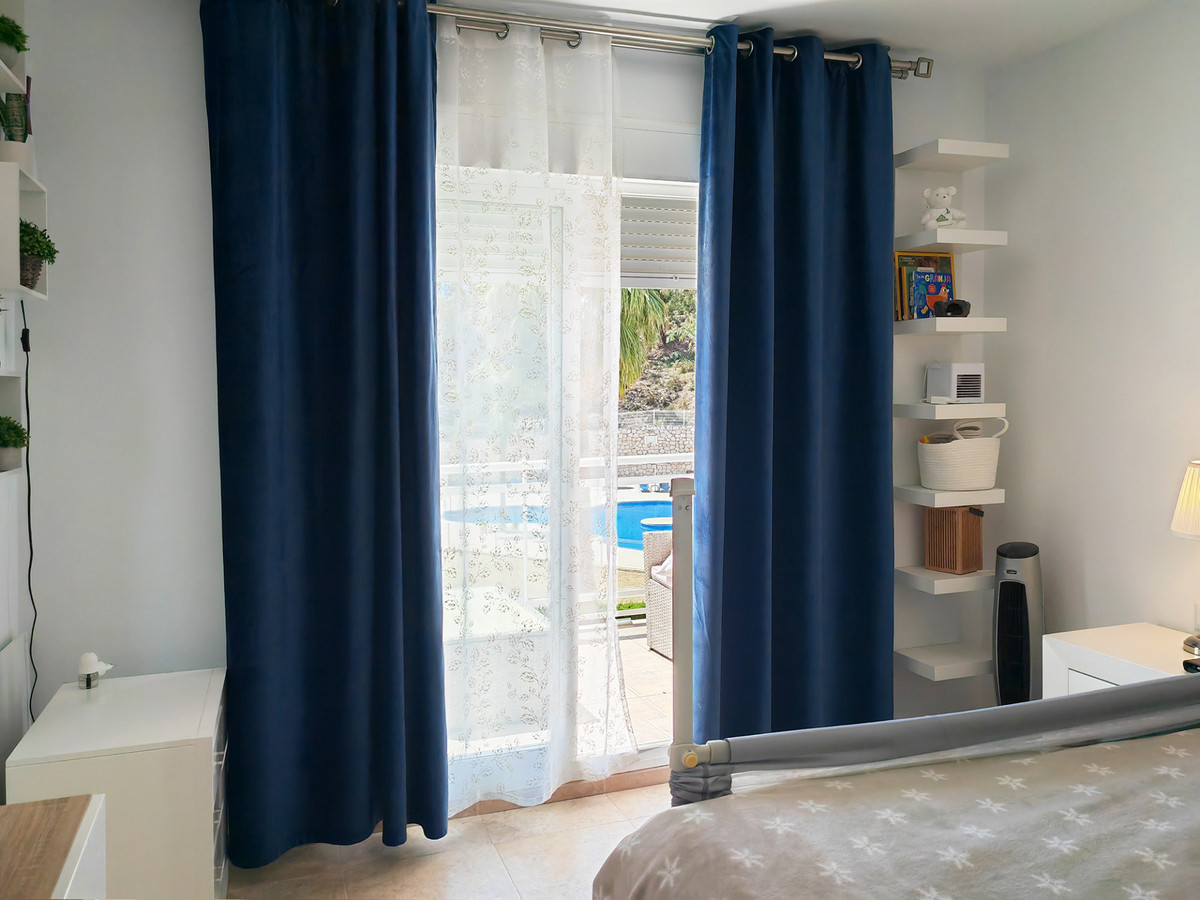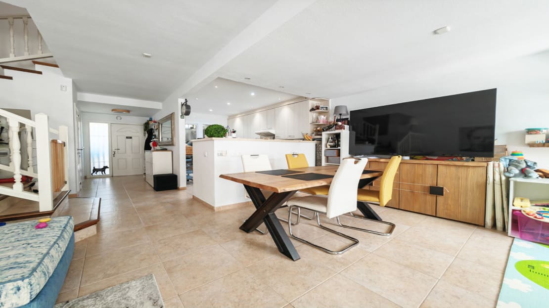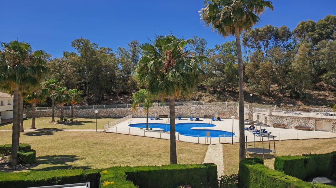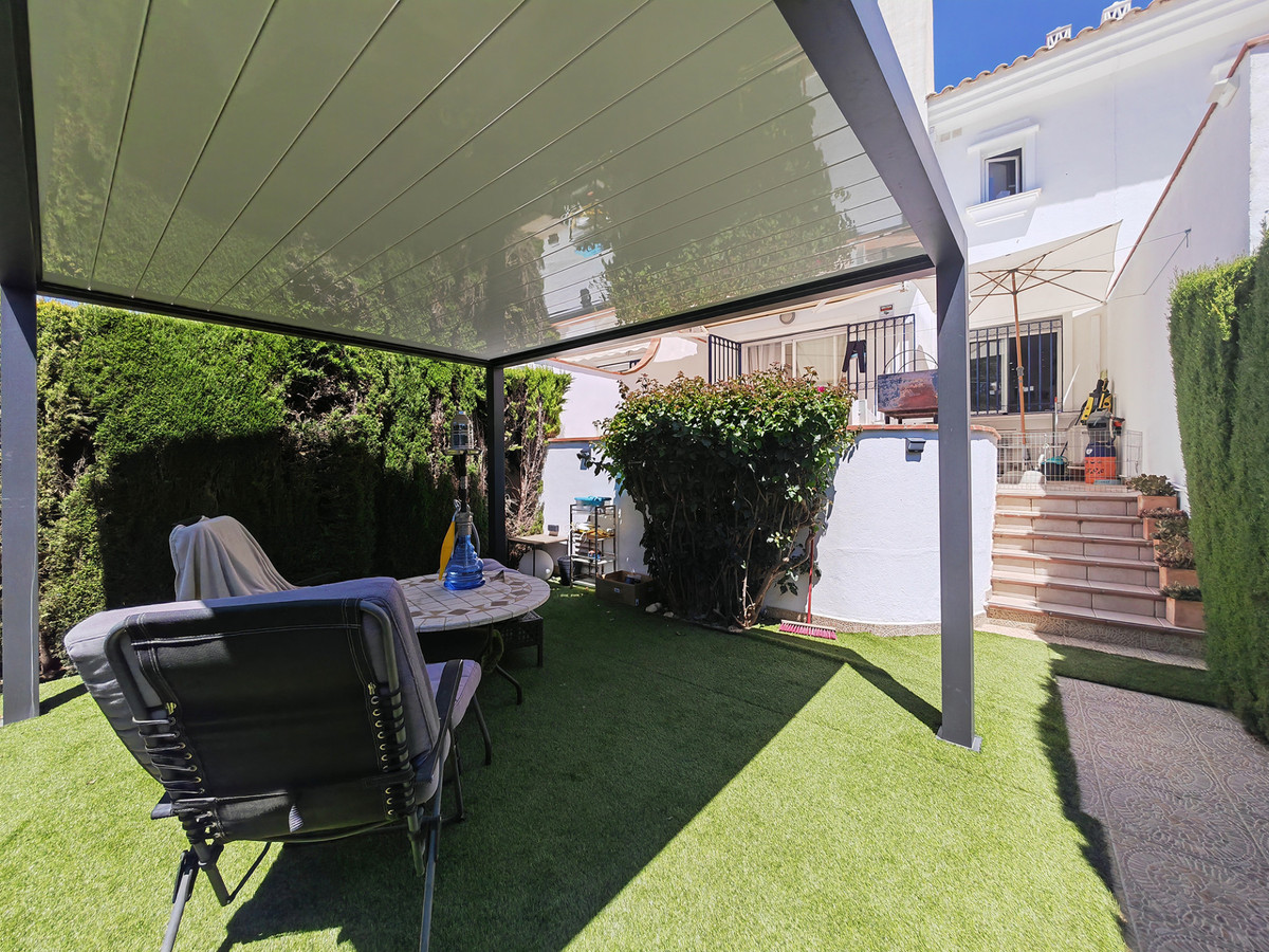 Town House for sale in , Mijas with 3 bedrooms, 2 bathrooms, 1 toilet and with orientation south, with communal swimming pool, private garage (2 parking spaces) and communal garden. Regarding property dimensions, it has 250 m² built and 60 m² plot. Has the following facilities amenities near, air conditioning, central heating, partly furnished, fully fitted kitchen, utility room, fireplace, basement, guest room, barbeque, guest toilet, kitchen equipped, sea view, mountain view, laundry room, internet – wi-fi, covered terrace, fitted wardrobes, gated community, garden view, uncovered terrace, glass doors, balcony, good condition, close to town, close to schools, surveillance cameras and pets allowed.