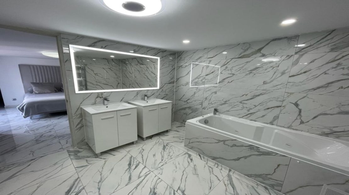 Brand new bathrooms including showers, taps, toilets, Jacuzzi bath, cabinets, & water heaters.
