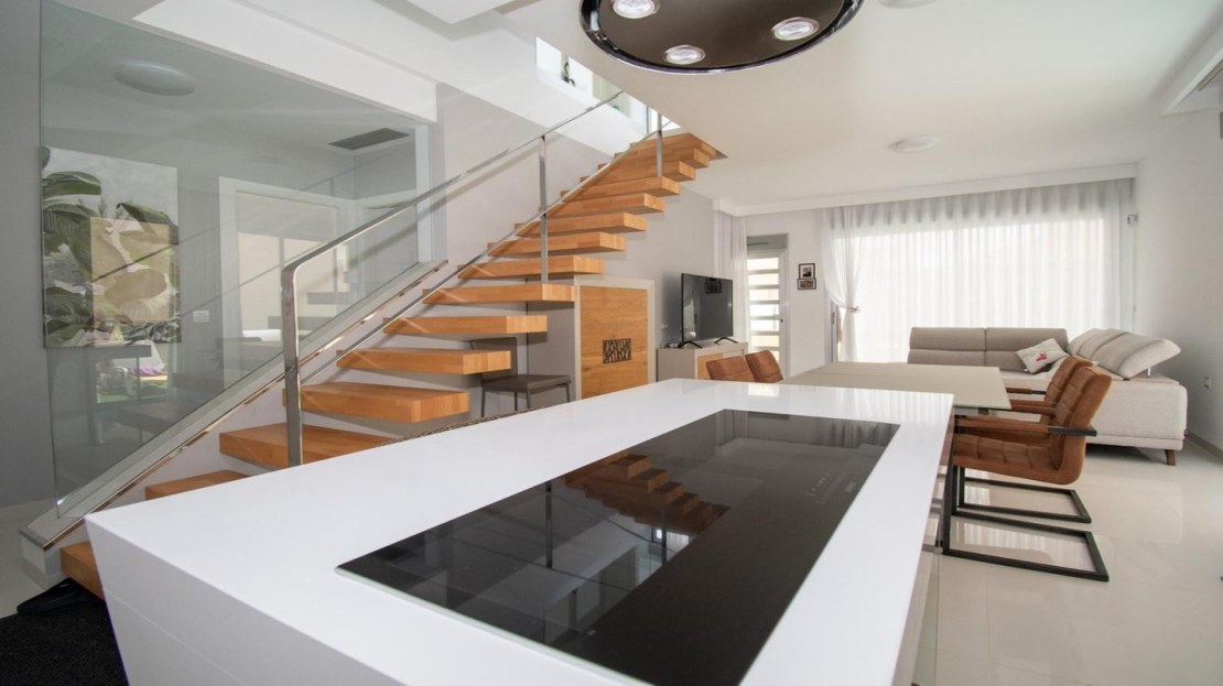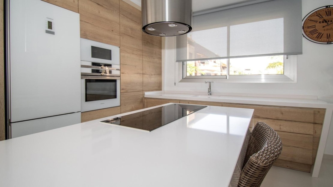 This East Facing, Three Bedroom Detached Villa in Mil Palmeras is located just 150 metres from the stunning sea front and beaches of Mil Palmeras, within walking distance to a range of local amenities and facilities. This modern, high-quality property, built in 2019, boasts 3 bedrooms and 3 shower rooms (2 en suite), all with fitted wardrobes. Air zone air conditioning throughout ensures comfort, while the open plan kitchen with a feature island and Siemens white goods adds a luxurious touch. The villa also includes a utility room, off-road parking, and an artificial grassed garden, complemented by a covered terrace off the living room. The double-level solarium offers spectacular sea views, and the property features a separate private garage. A heated private swimming pool with a pool cover enhances the outdoor living space, while the villa is sold fully furnished with a security door for added peace of mind. With a build size of 120m² on a 320m² plot, this property offers many extras and is located just a five-minute drive from Orihuela Costa in Costa Blanca South.