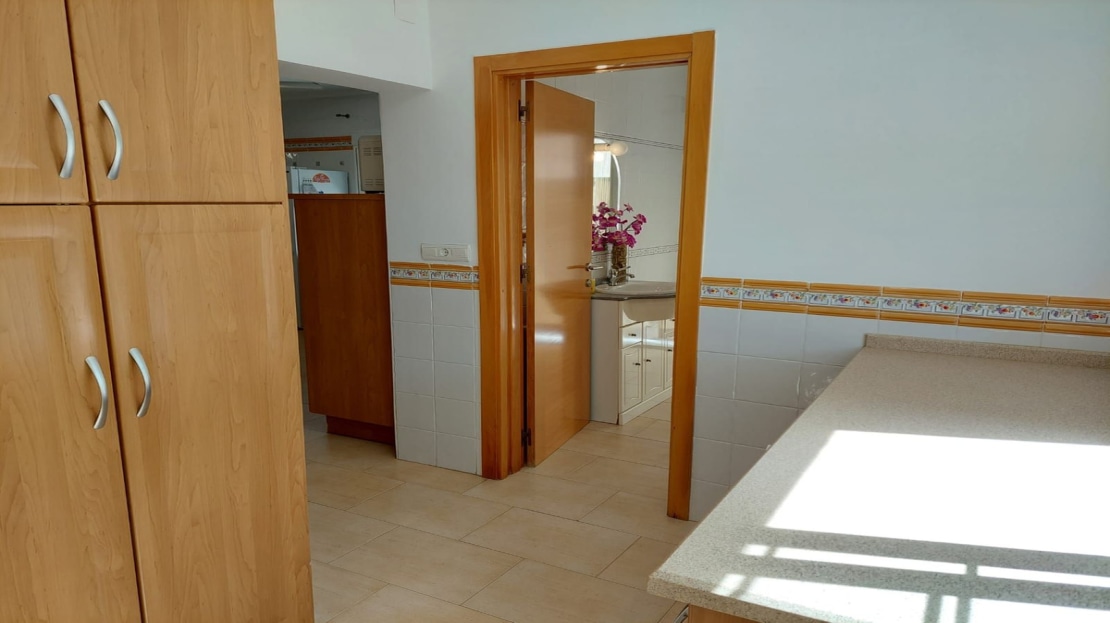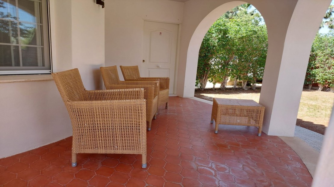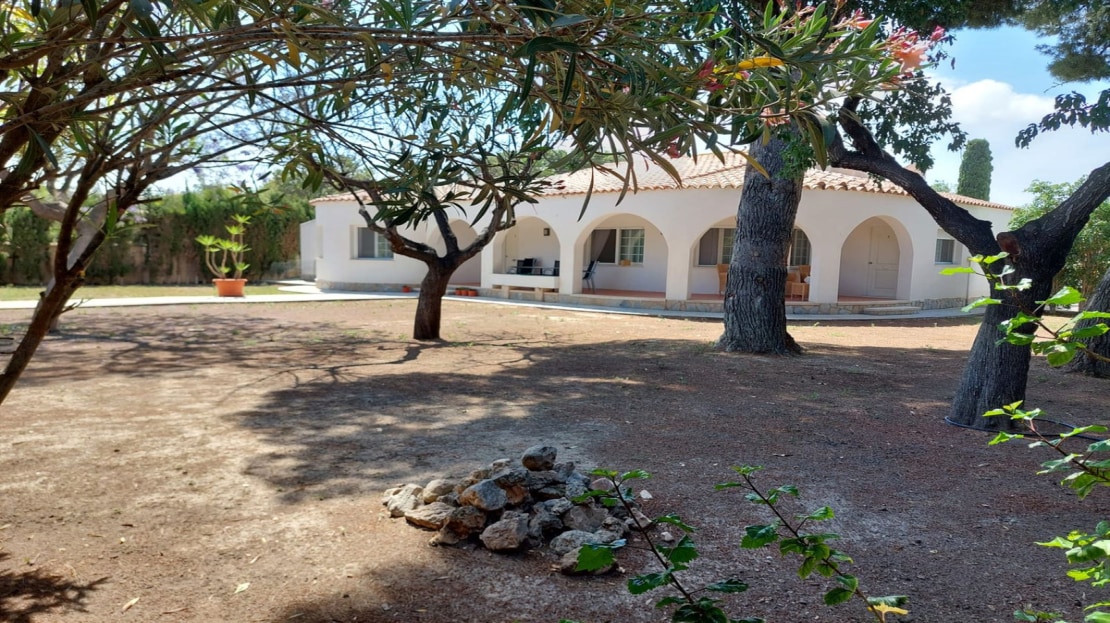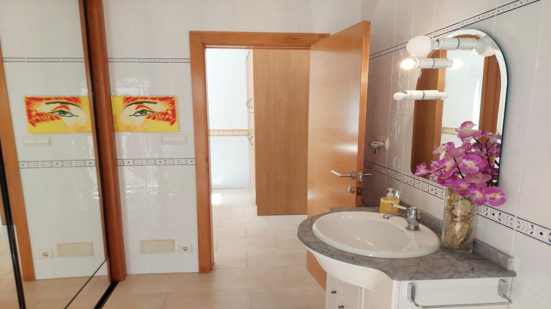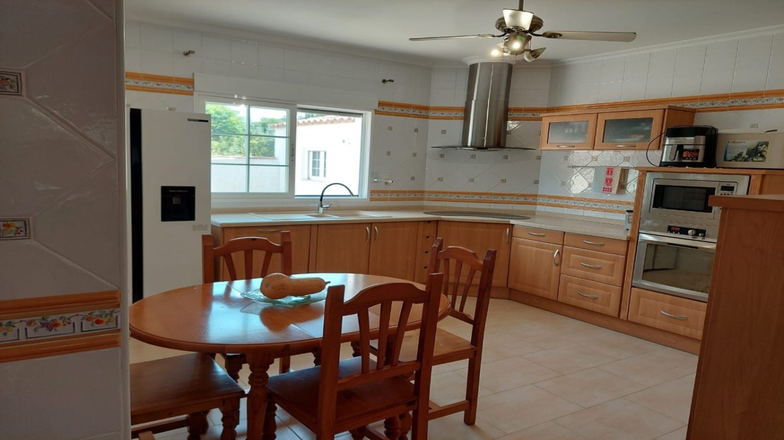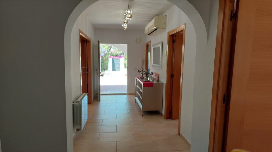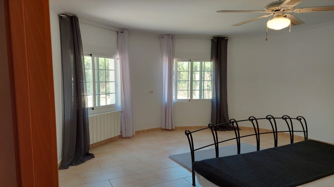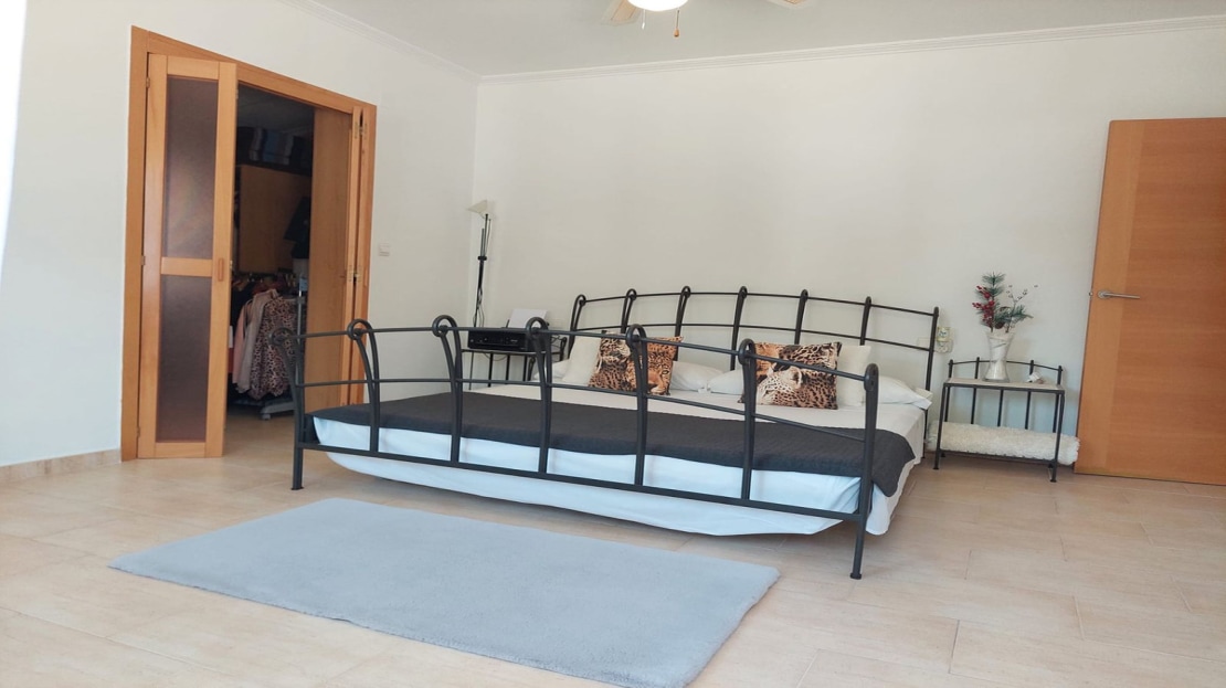 It has 3 double bedrooms (the main one with a large dressing room and the other 2 with formidable built-in wardrobes), two comfortable bathrooms (one of them with Jacuzzi and shower), a cozy 40 m2 living room, a large fully equipped kitchen with a laundry area and a beautiful porch. It has space to build a large pool.