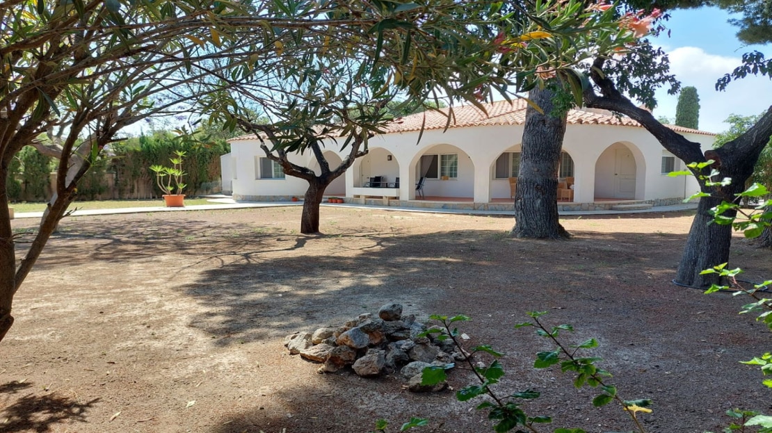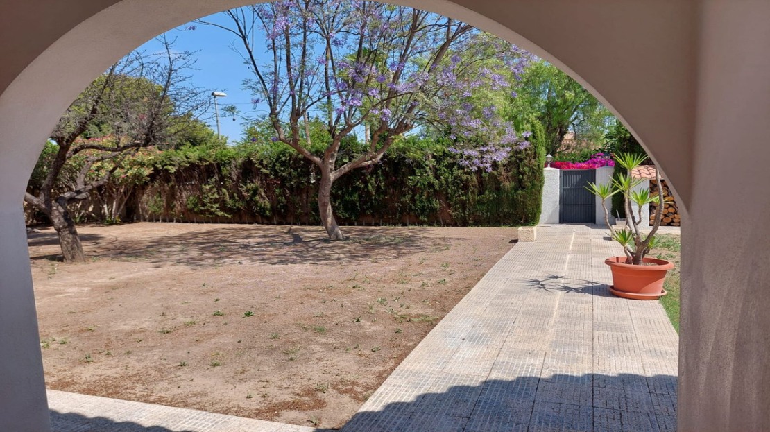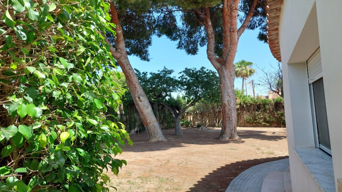 It is located on a beautiful 1,000 m2 plot, with a large garden, century-old pine trees, almond trees, cypresses, sprinkler irrigation, barbecue area, descaling machine, automatic doors, video intercom, large covered parking and a closed garage. (capacity for 4 cars).