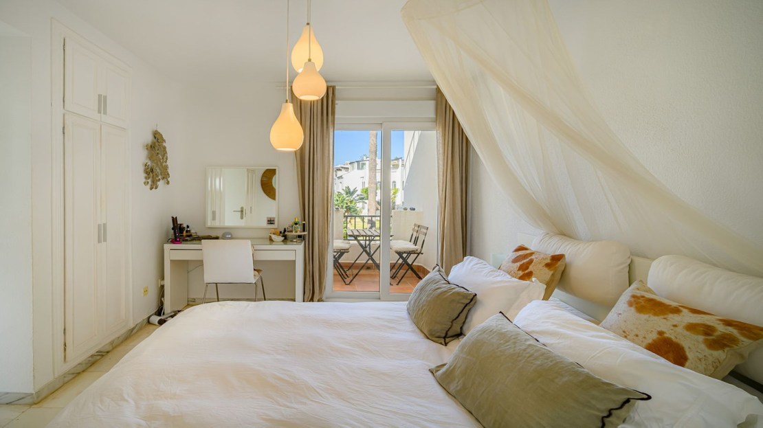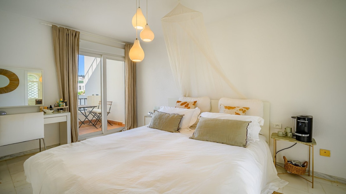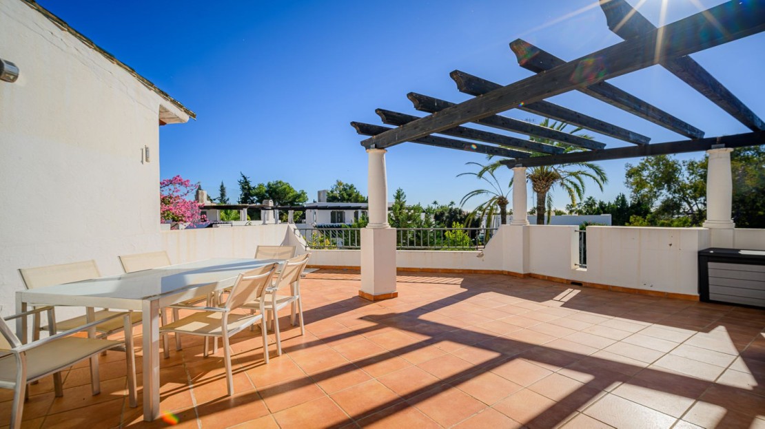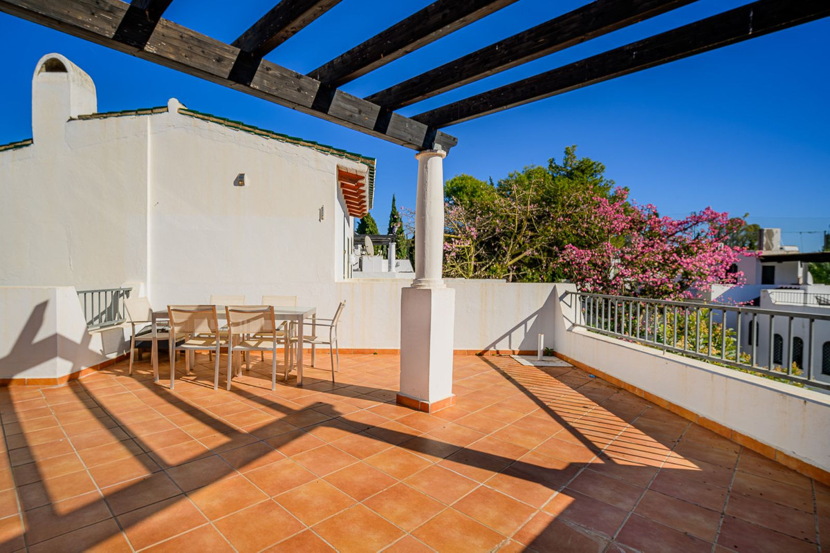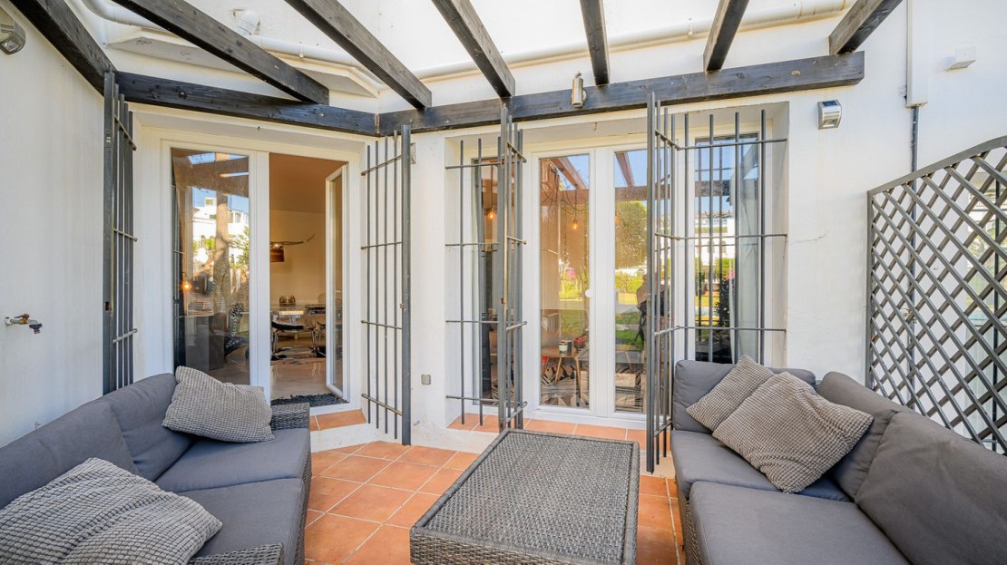 This townhouse is located in SolEuropa Golf, gated community adjacent to Los Naranjos golf course, in Nueva Andalucia. With a convenient five-minute drive to both Puerto Banus and San Pedro, it offers an excellent location. The house features 3 bedrooms, 3 bathrooms, and a spacious roof terrace.