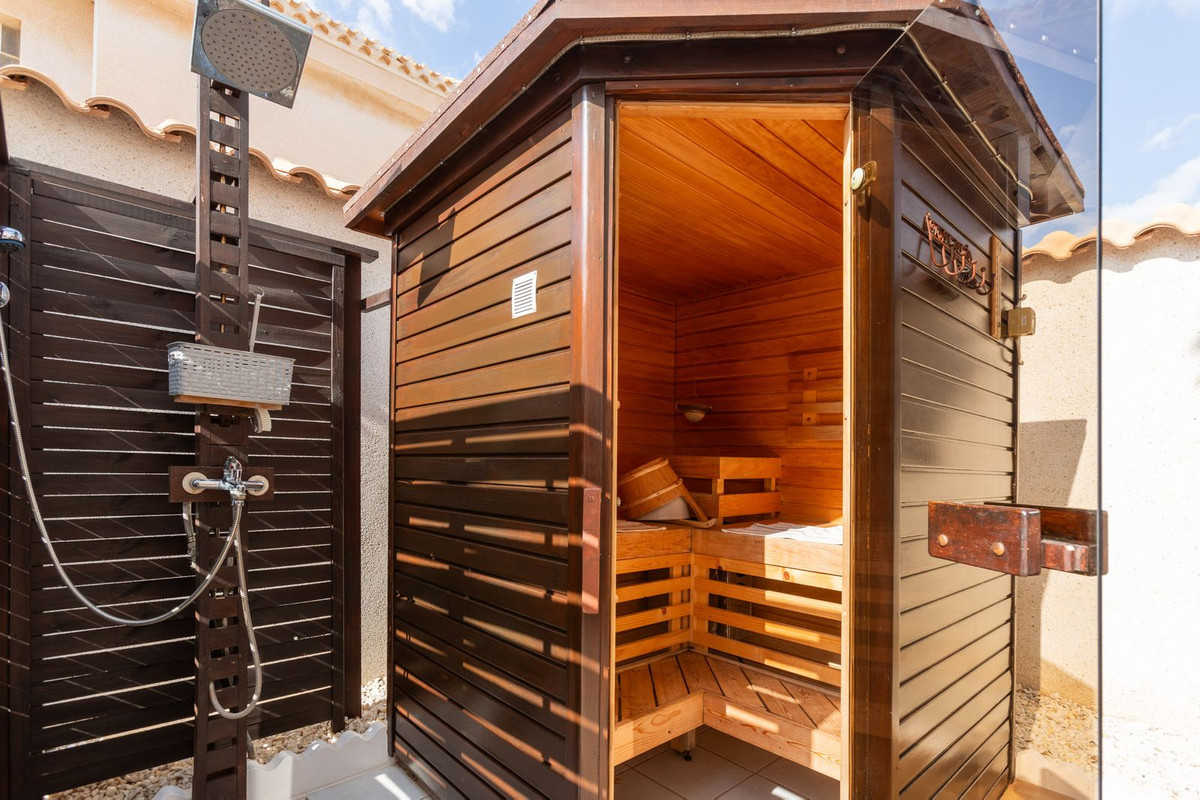 This villa blends a holiday paradise with a functional everyday home in an exceptional way. It’s a beautiful house that meets all daily needs, with a private fenced garden where you can move from the sauna to cool off without worrying about prying eyes, while still being in the middle of everything!