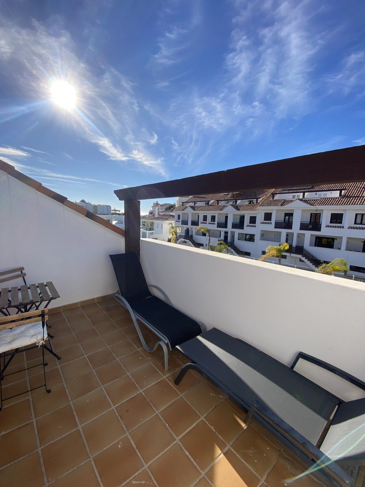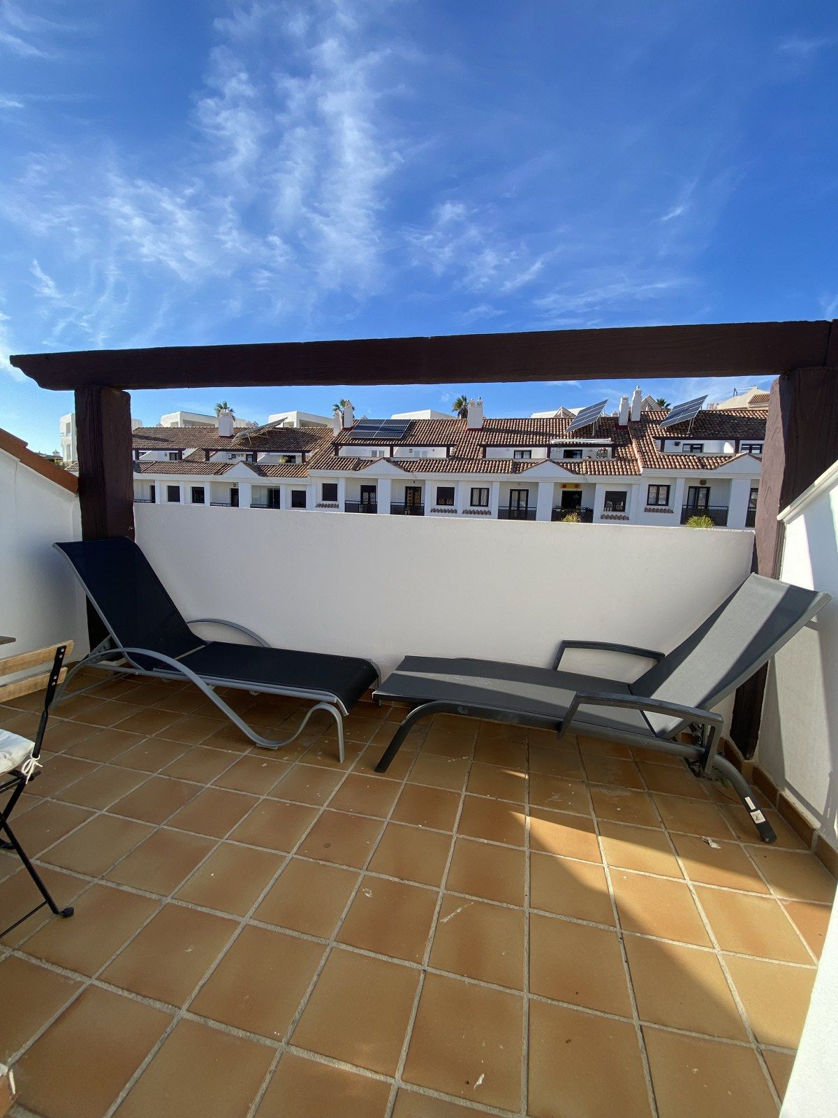 – Private Terraces x3 (Solarium off a bedroom, one off the master bedroom and another off the smaller living space w direct access to communal area).