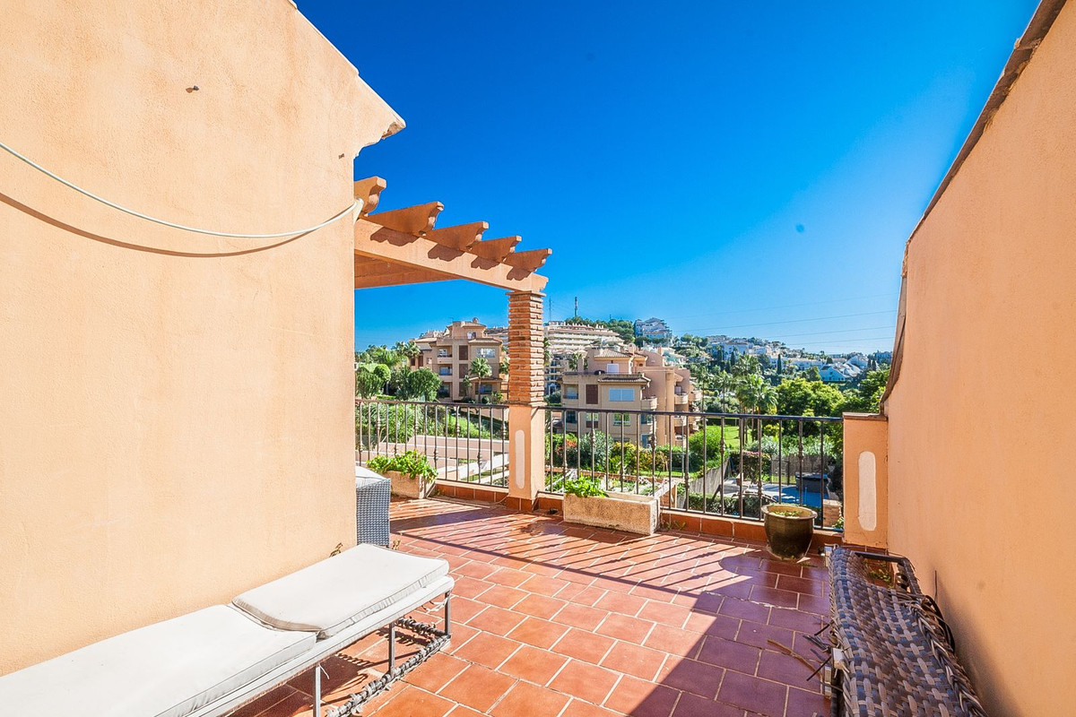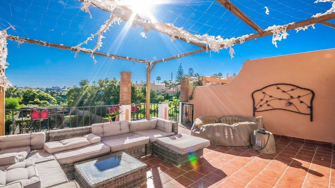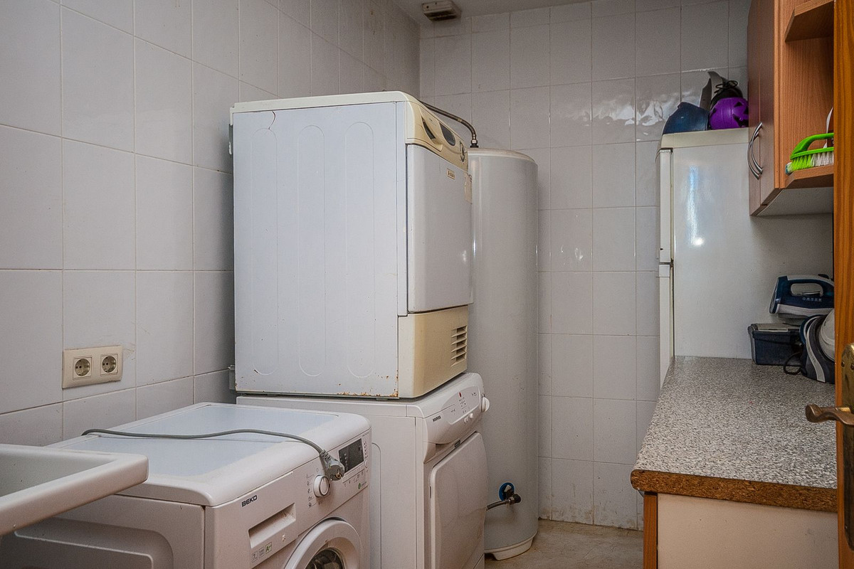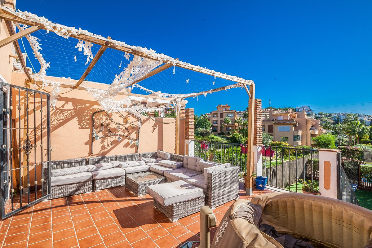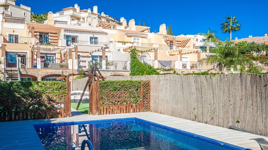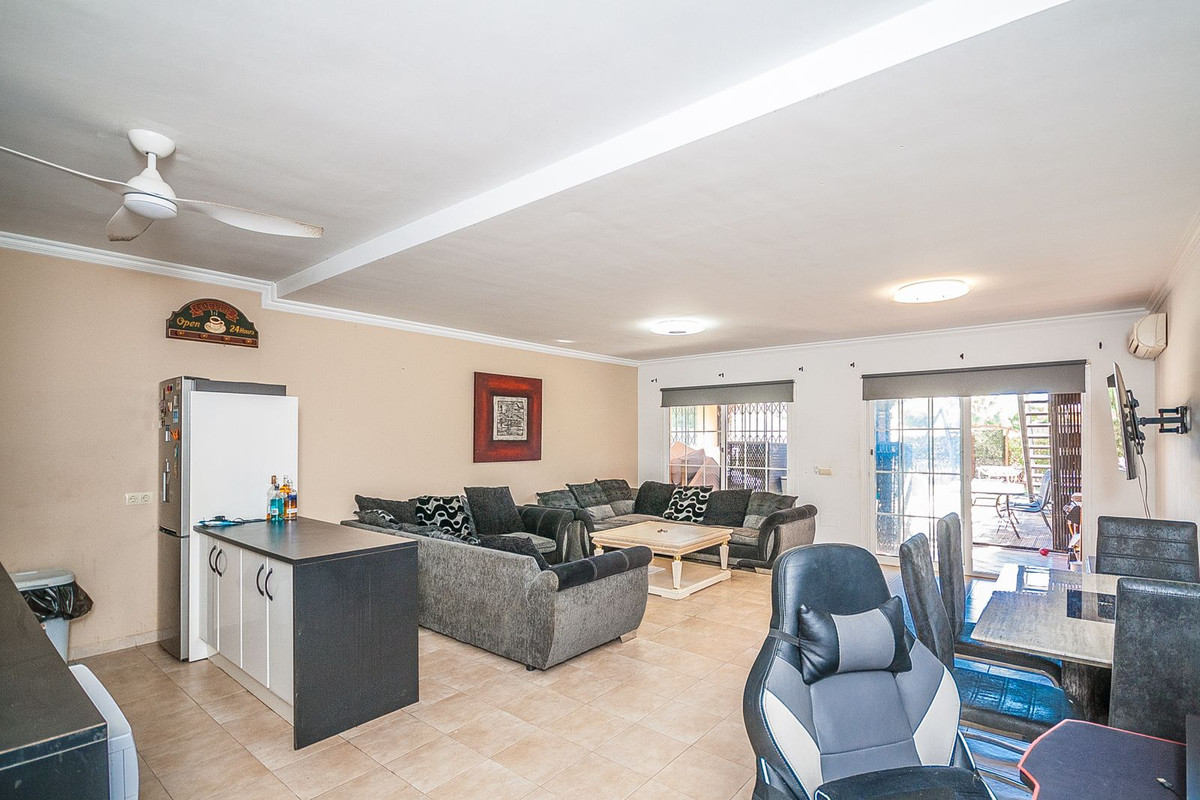 This spacious townhouse, situated in a tranquil residential area, offers an ideal setting for full-time living. Featuring a private pool, the property requires only minor updates, allowing for personalization while maintaining comfort. Conveniently located near schools, shops, and supermarkets, this home provides easy access to essential amenities. Additionally, the renowned Miraflores Golf course is just a short distance away, enhancing the appeal for golf enthusiasts. With low community charges, this townhouse represents an excellent investment opportunity.