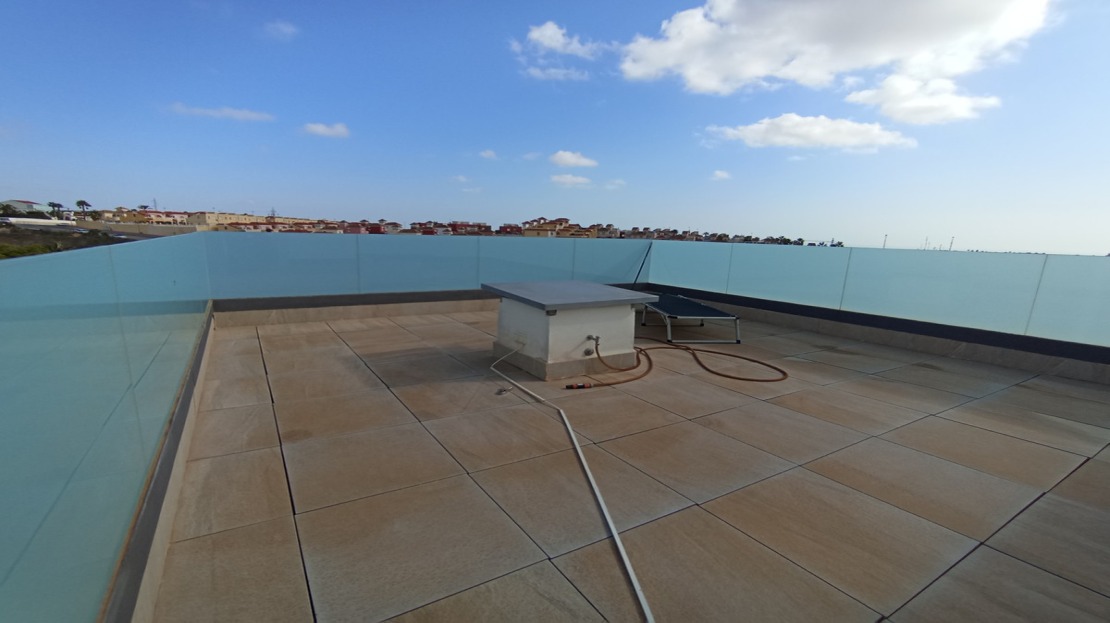 A quality, modern 3 bedroom, 3 bathroom, 1 guest w/c villa with a private, infinity pool, close to amenities in the Las Filipinas area of Villamartin with off street, secure parking and roof top solarium with sea views. One of the bedrooms with an en suite bathroom is on the ground floor and the two bedrooms on the upper level have walk in wardrobes. The property has a modern kitchen with integrated appliances, infra red radiator heating, hot & cold air conditioning, electric entrance gate, an alarm system, electric window shutters, a water softener and filter system and en suite bathrooms with underfloor heating. Sold mainly furnished.
