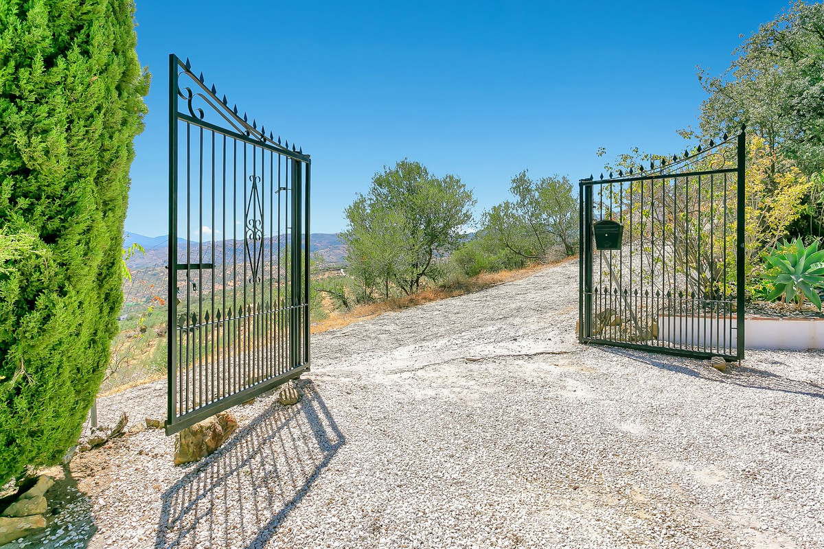 Access to the finca is down a well-maintained 2km track, mostly concreted and free from passing traffic, ensuring a private and serene environment. Upon arrival, you'll find secure iron gates that open onto a driveway with ample parking space for up to four cars. The property is thoughtfully integrated into the hillside, maximizing its breathtaking, uninterrupted views.