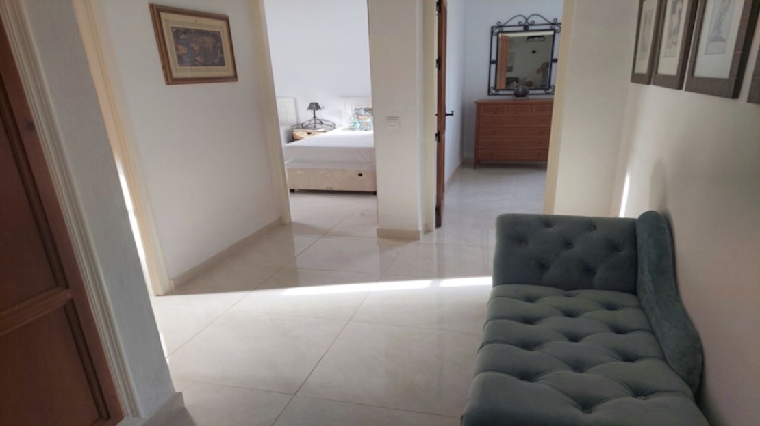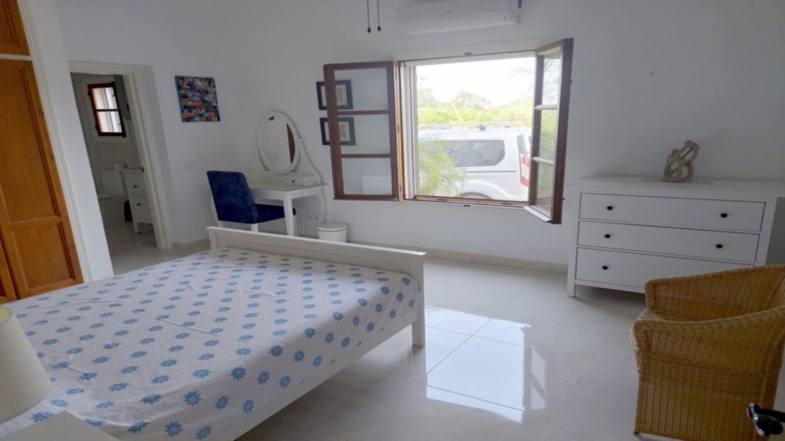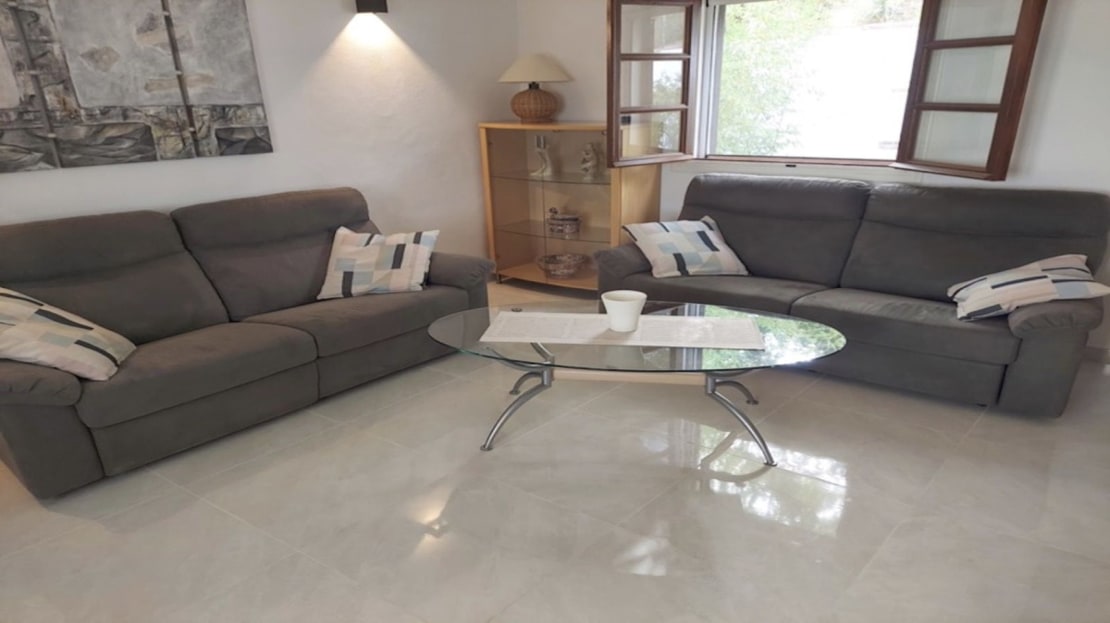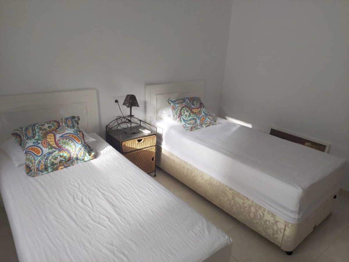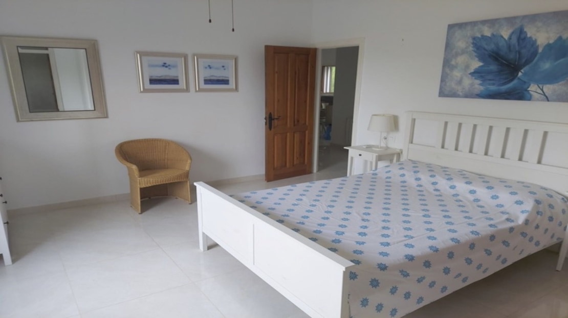 The attractive, wide hallway leads to the family bathroom and the 3 double bedrooms. There is more than sufficient built-in wardrobe space and the master bedroom has a full ensuite shower- room. Both the bathrooms are newly-fitted throughout with new wall tiling. The whole floor of the house is also newly tiled in “Travertine” porcelain.
